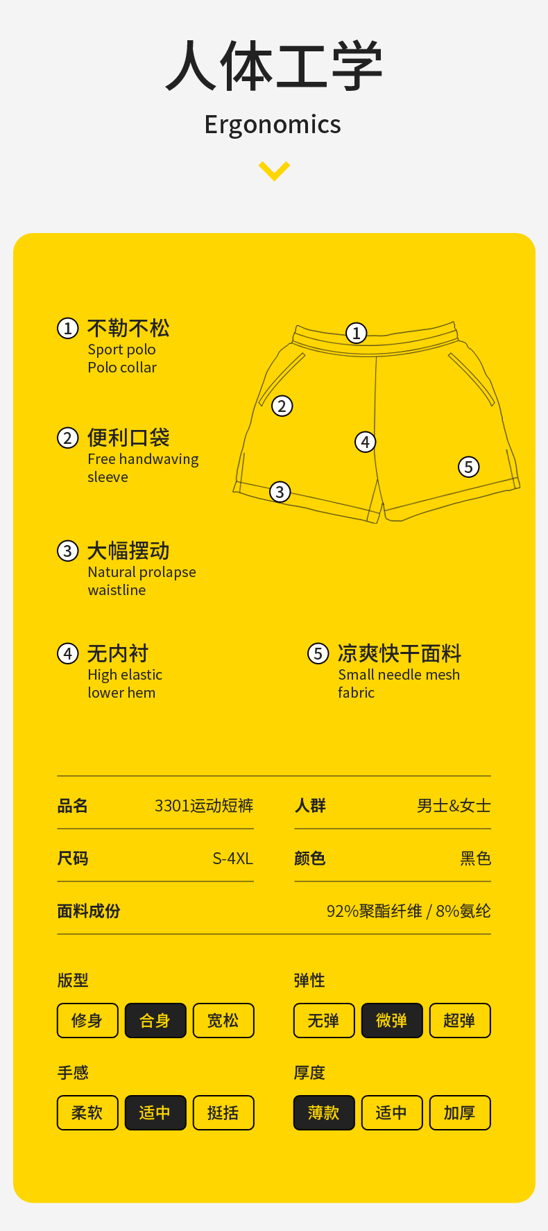 JOOLA优拉尤拉乒乓球短裤男女弹力速干排汗训练比赛运动短裤3301