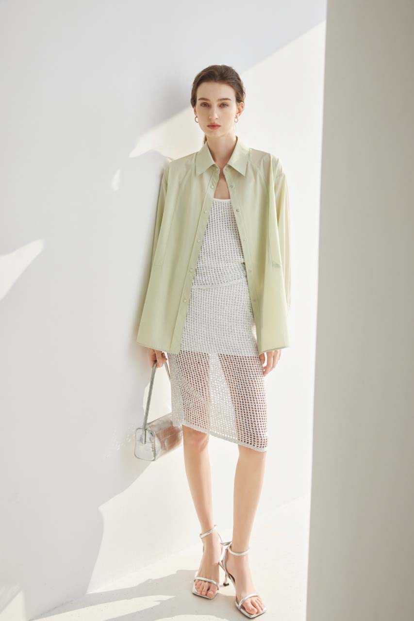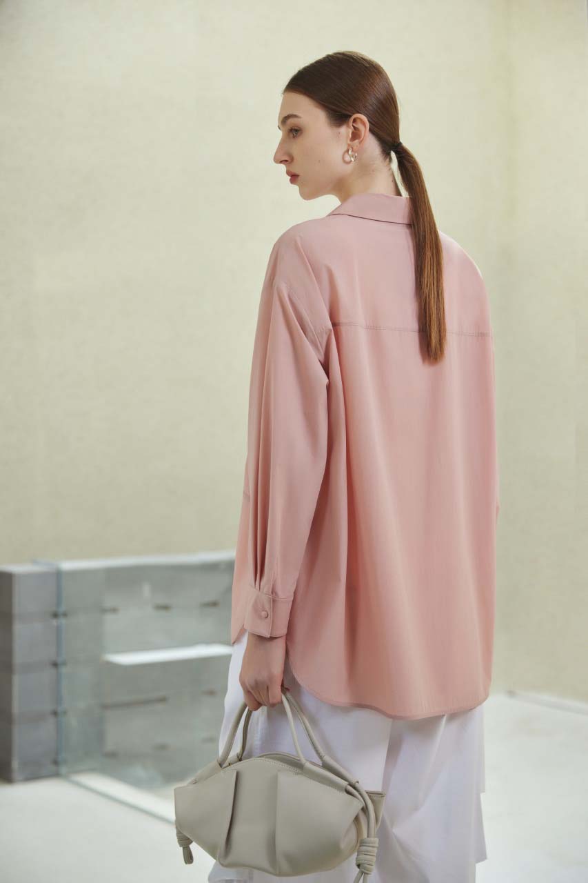 「K」洛诗琳11518胶原蛋白亲肤马卡龙色一手长翻领衬衫女382