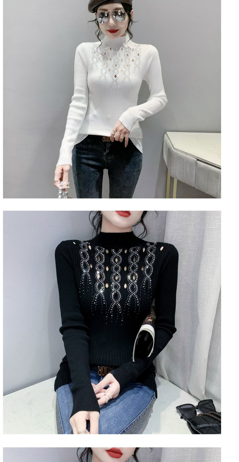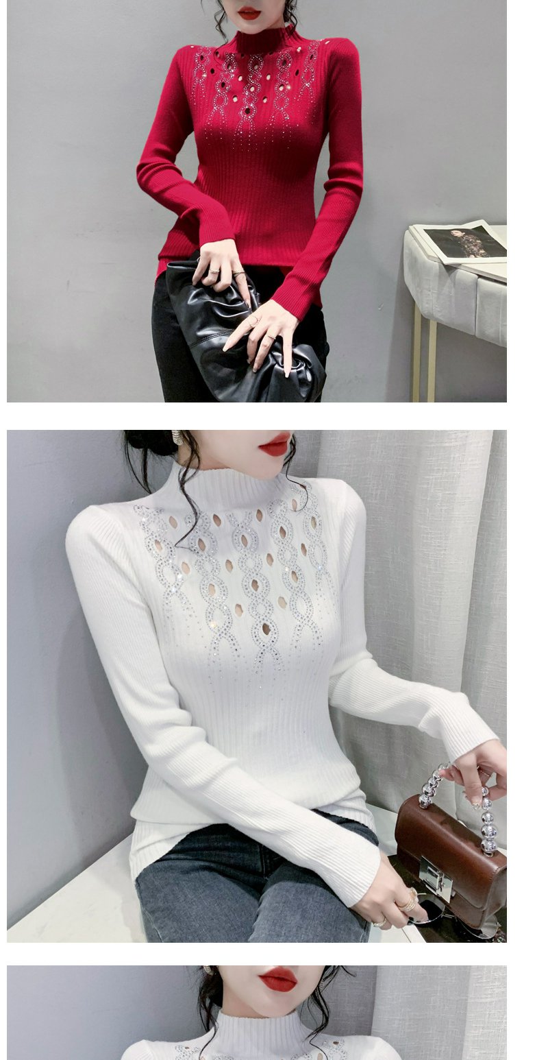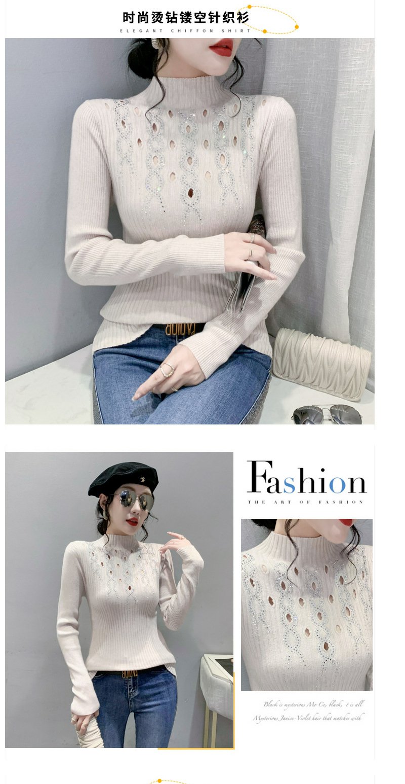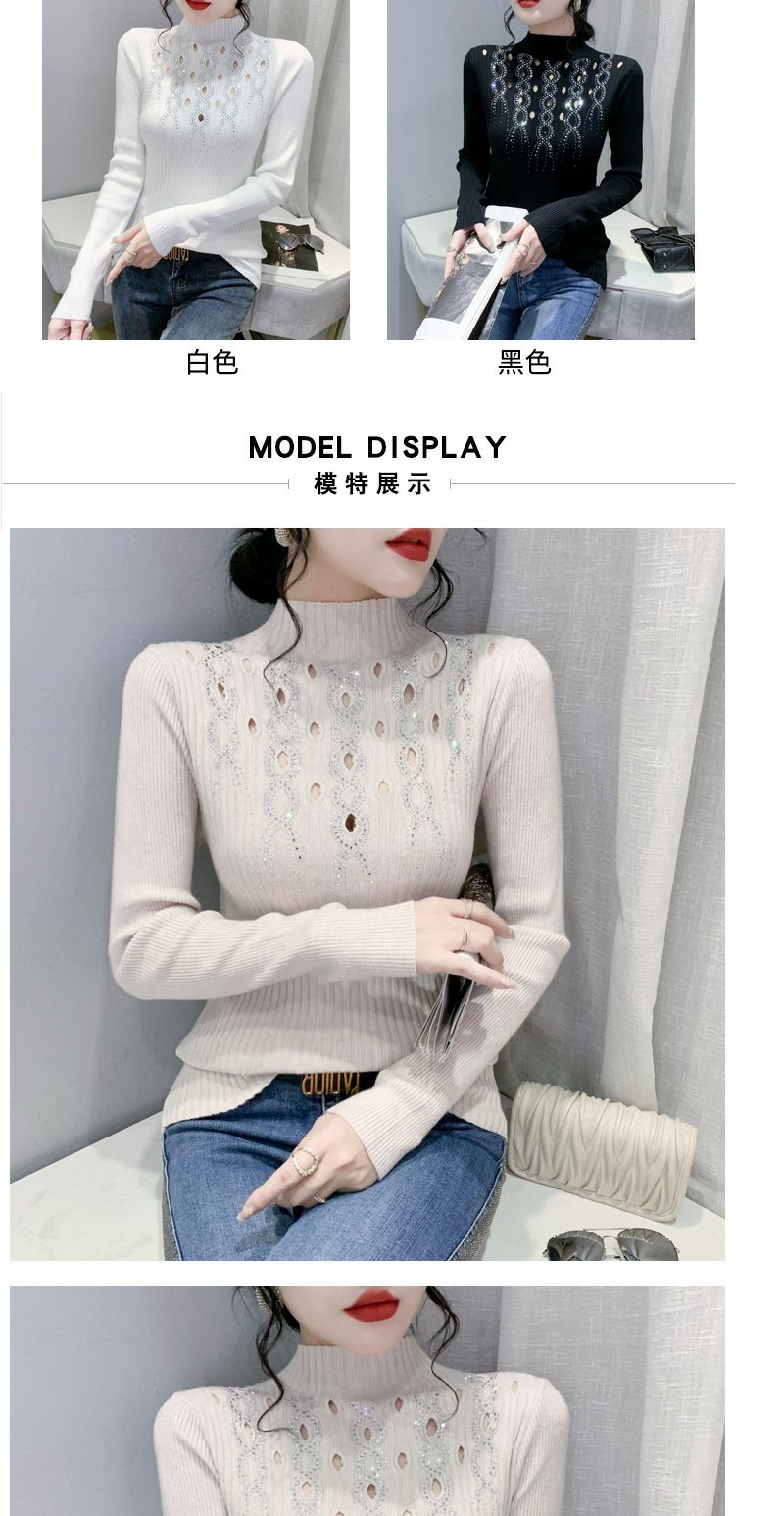 SMZ12244镂空毛衣女内搭冬季欧货重工烫钻上衣半高领紧身针织打底衫女长袖