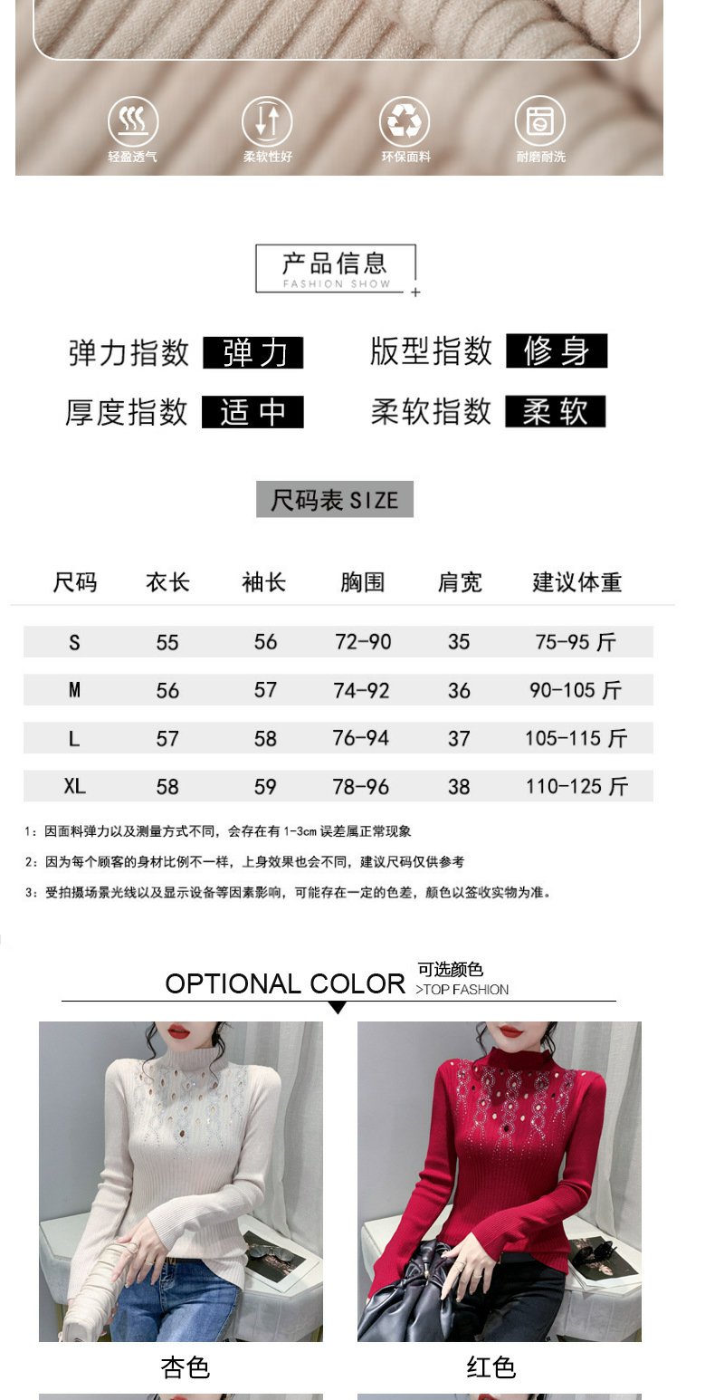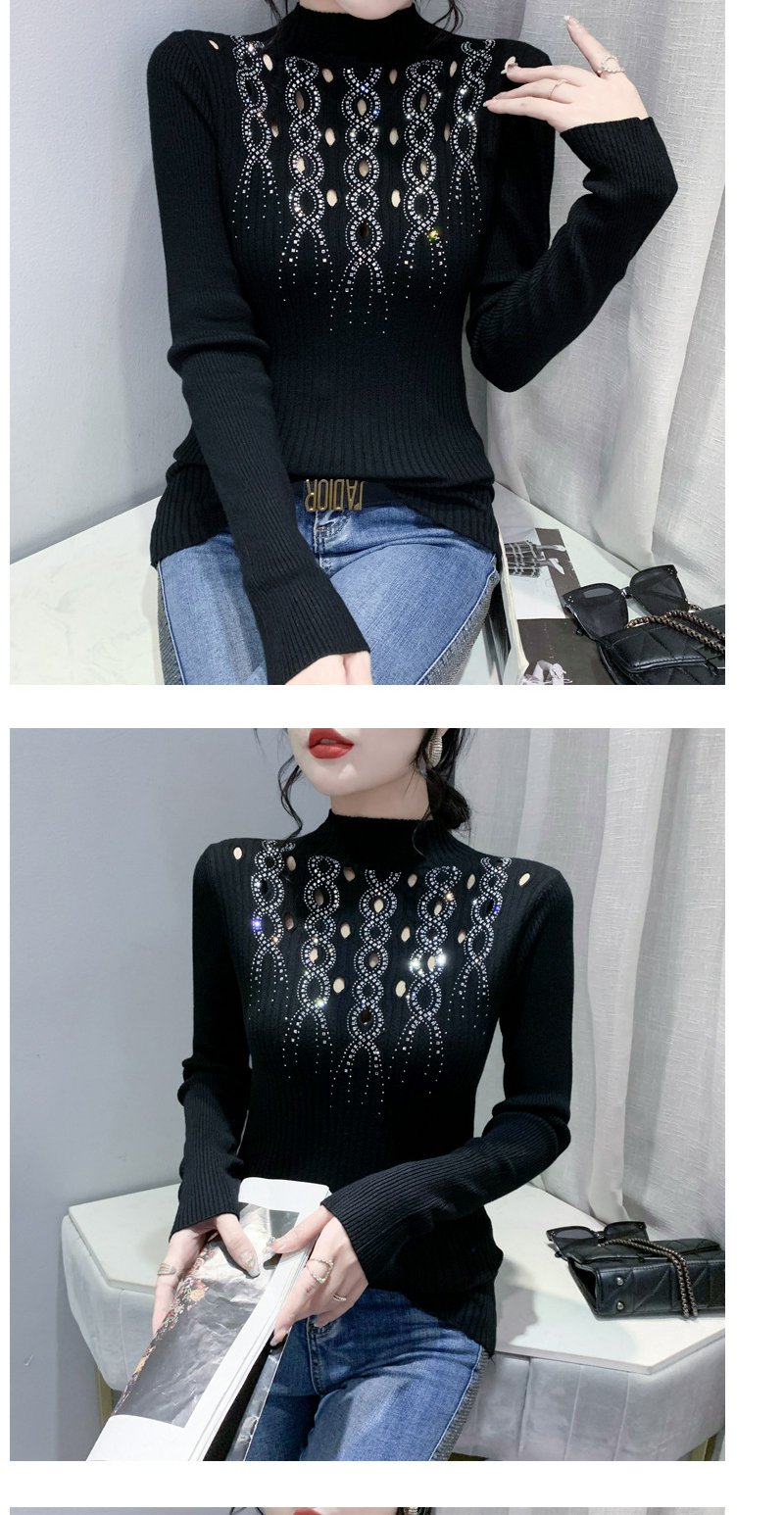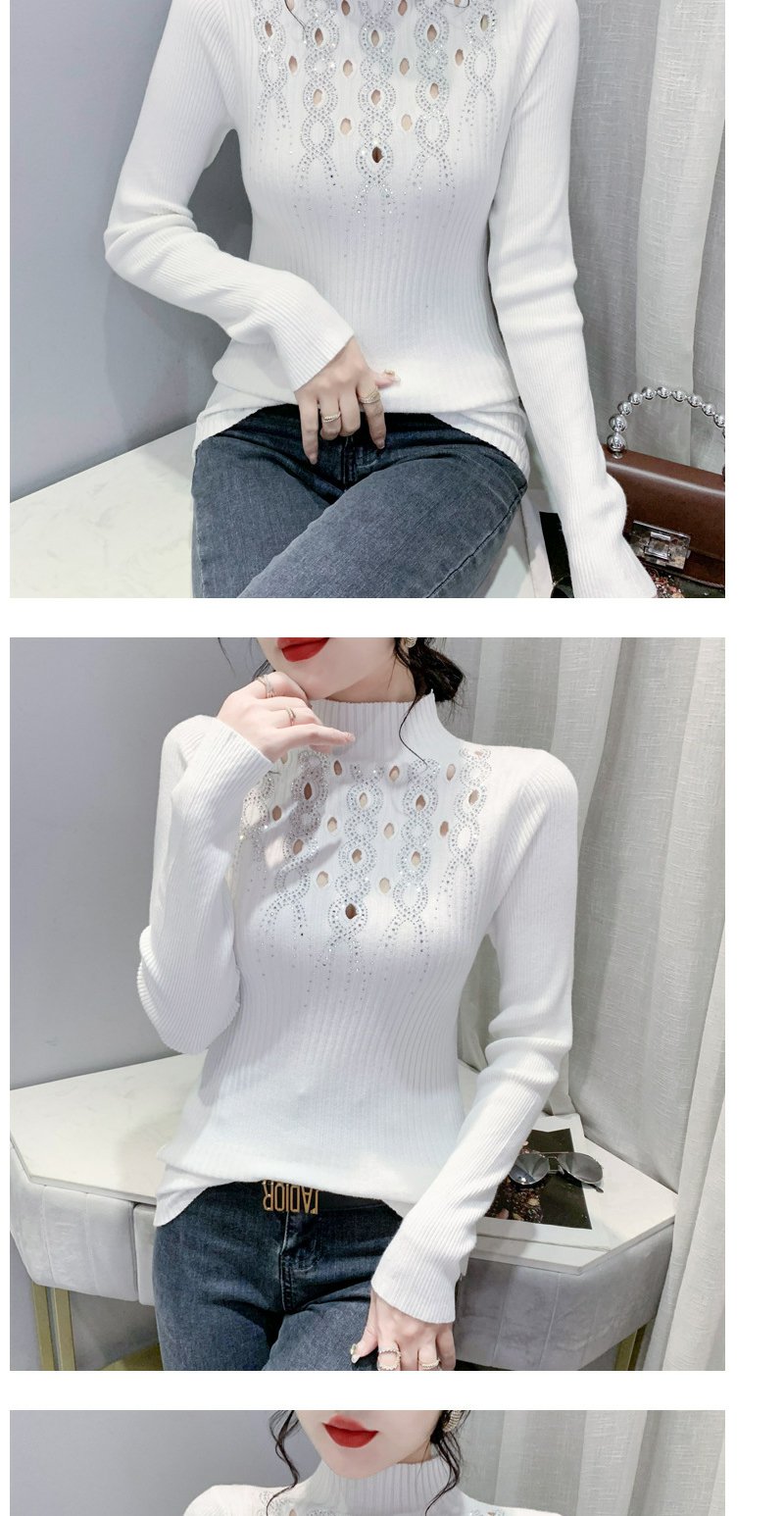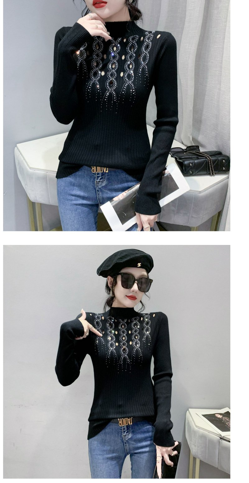 SMZ12244镂空毛衣女内搭冬季欧货重工烫钻上衣半高领紧身针织打底衫女长袖