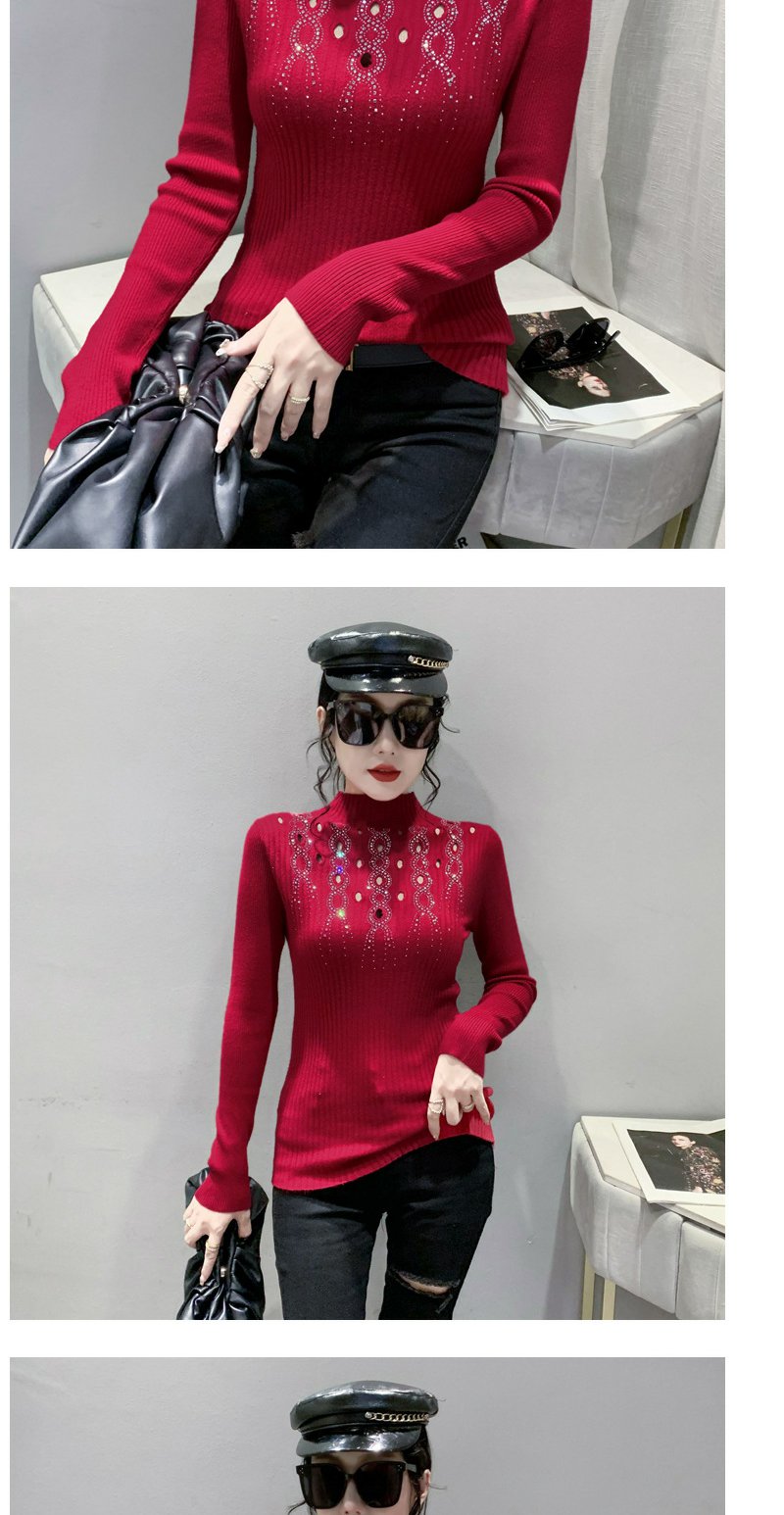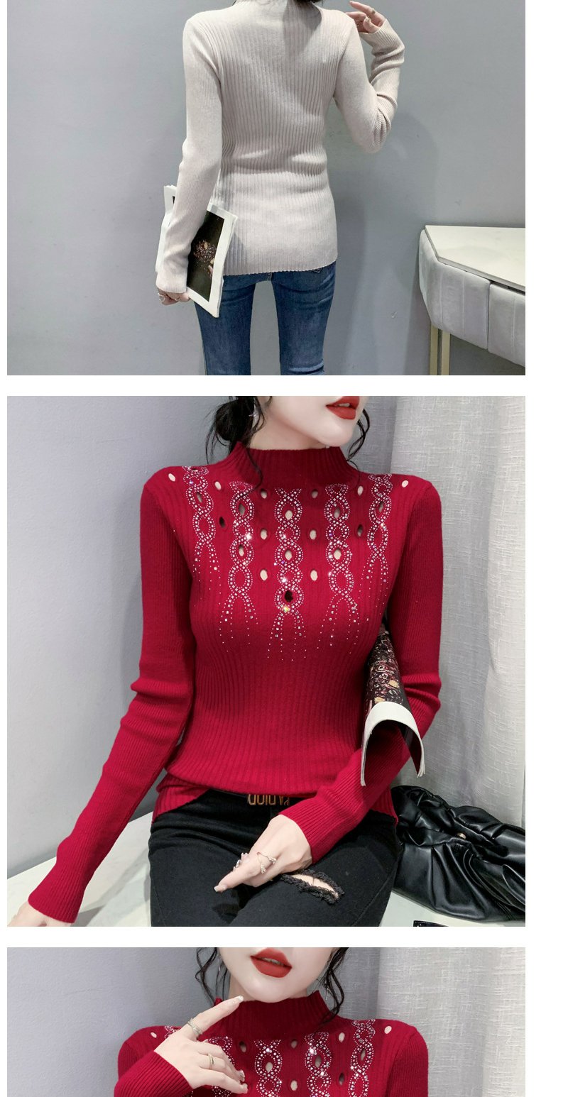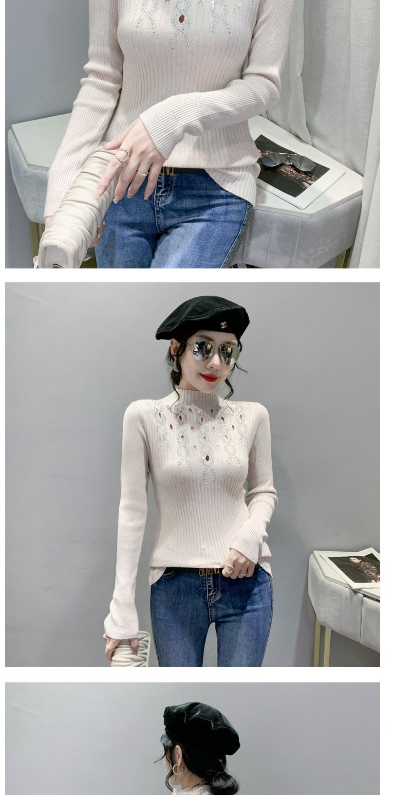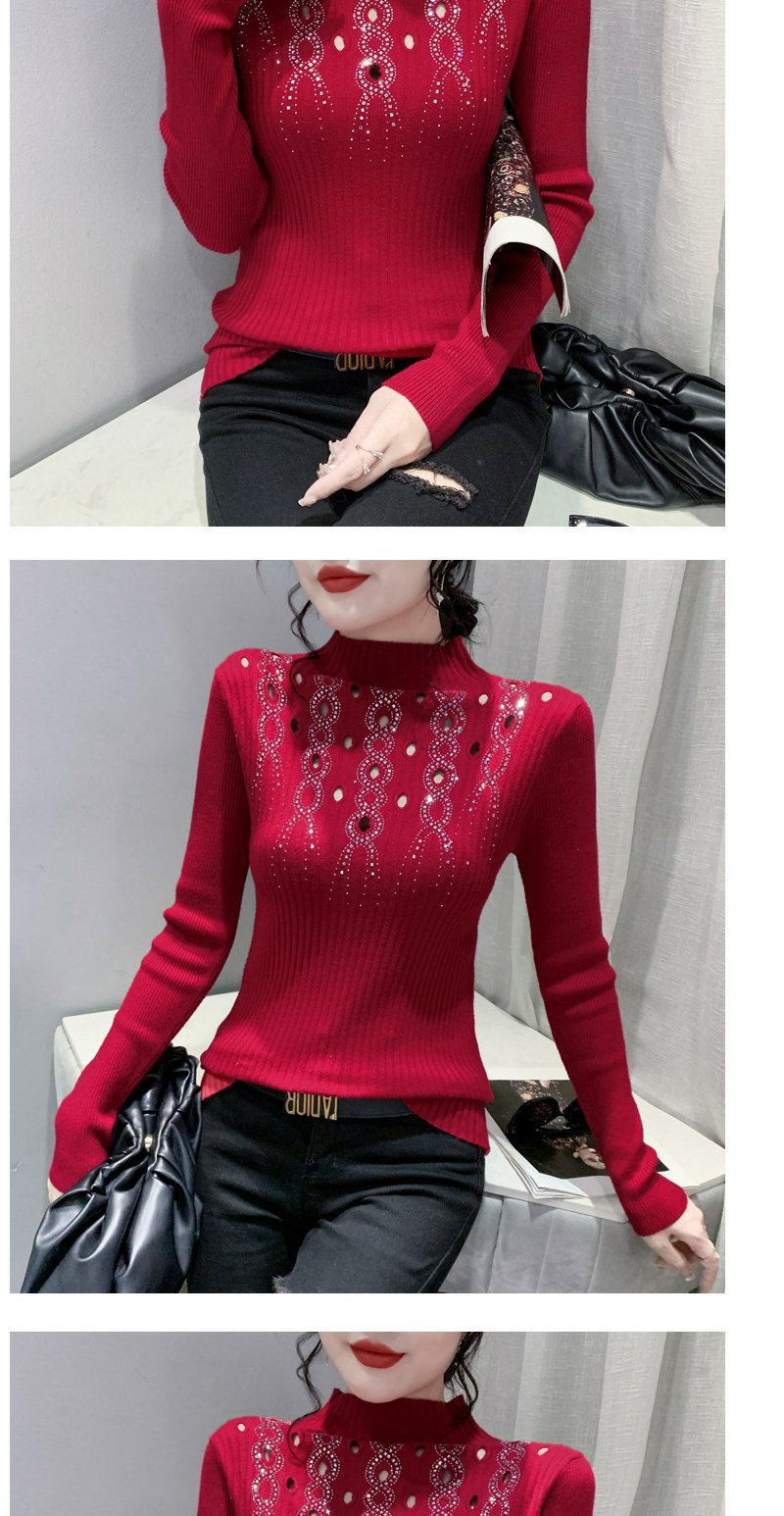 SMZ12244镂空毛衣女内搭冬季欧货重工烫钻上衣半高领紧身针织打底衫女长袖