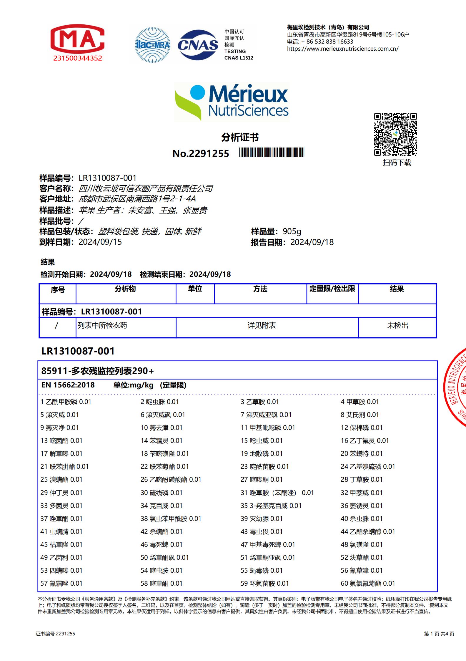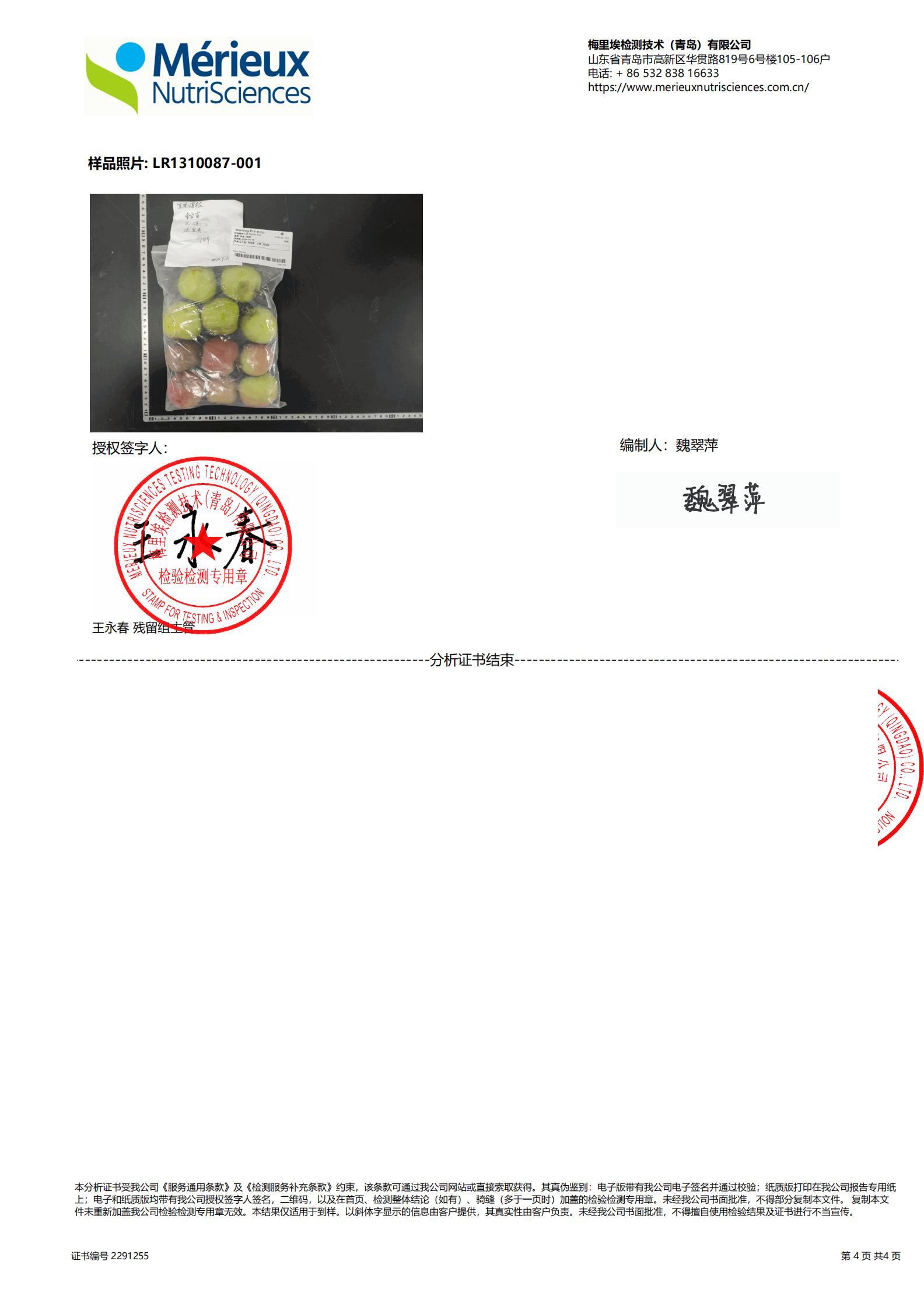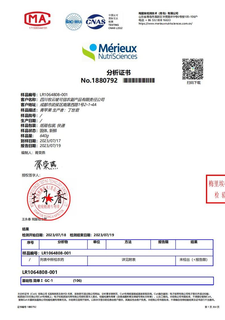 在上架之前,苹果都会做检测,260+农残无检出。