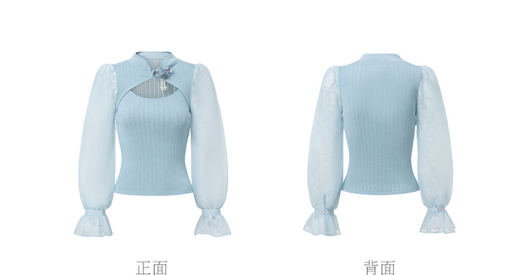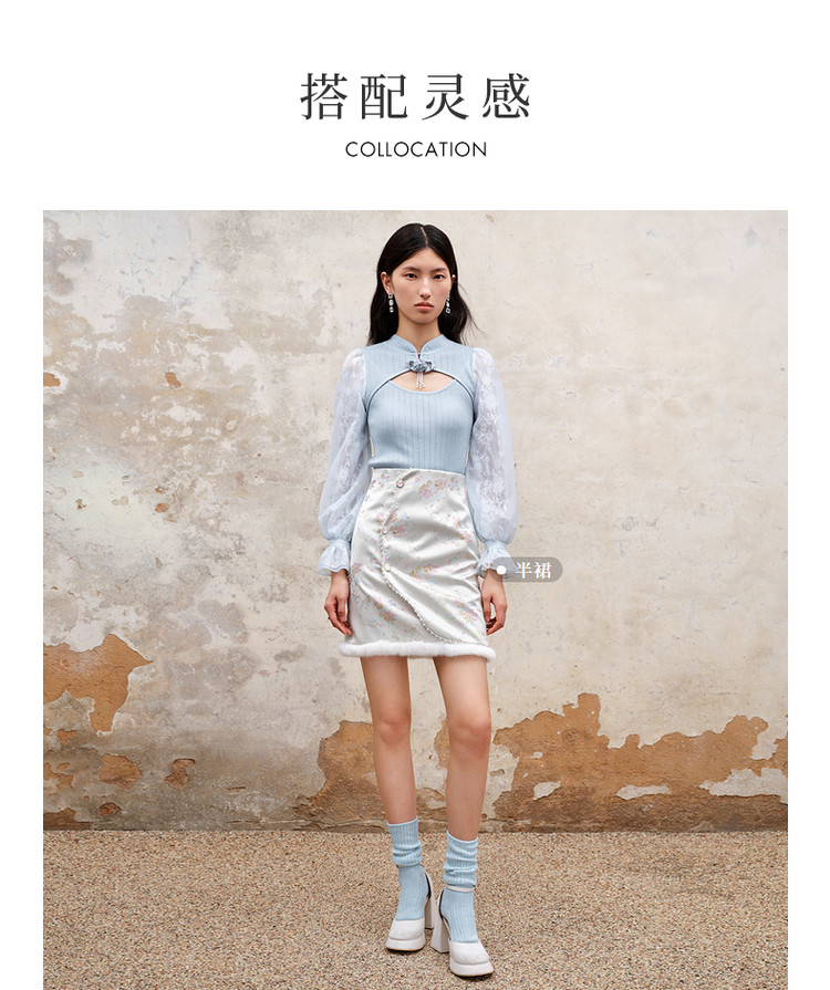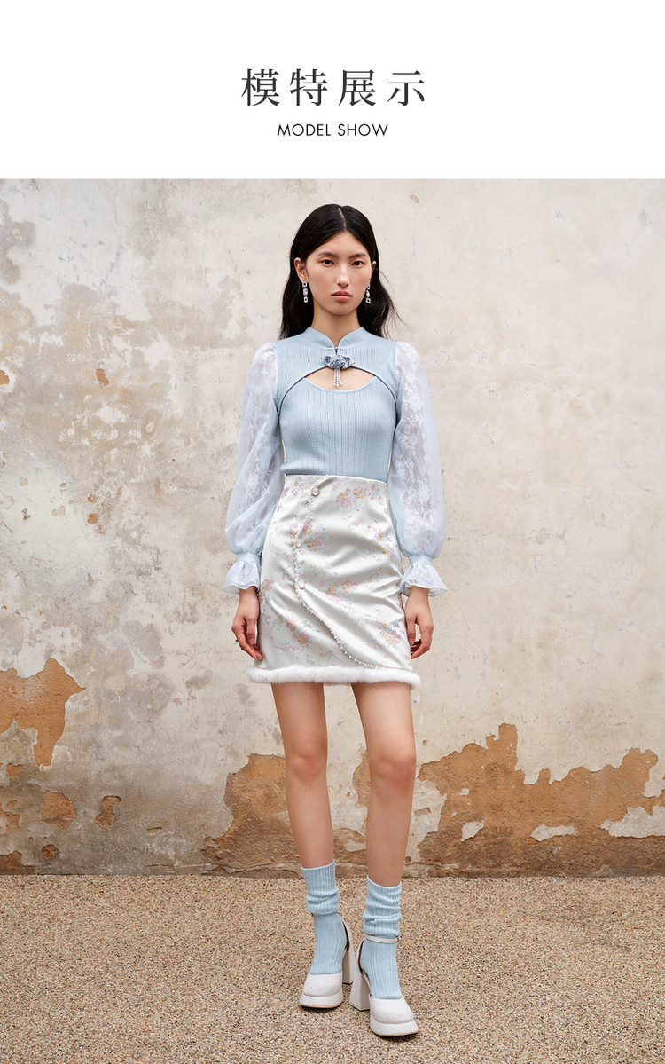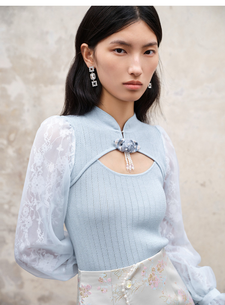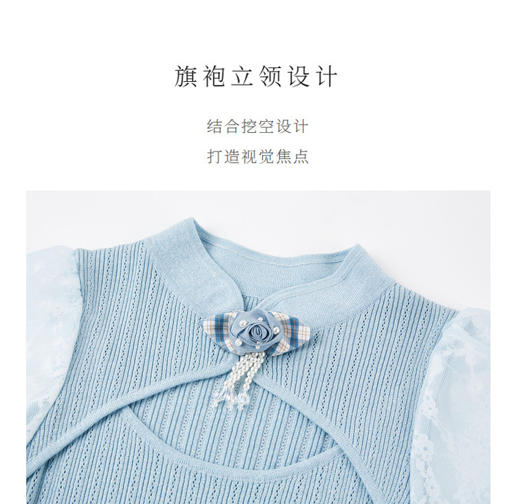 新中式结领镂空套头针织秋季修身上衣女(货号:MS88SW507B0001)