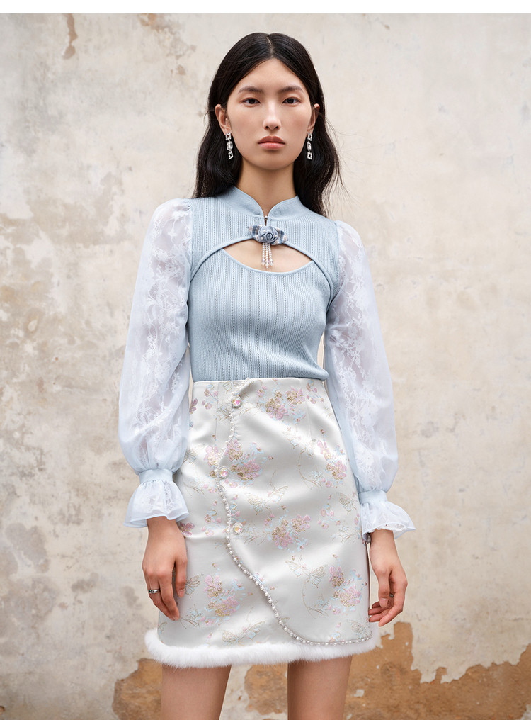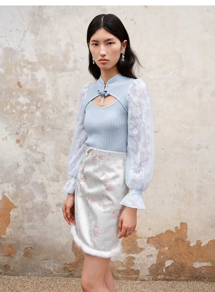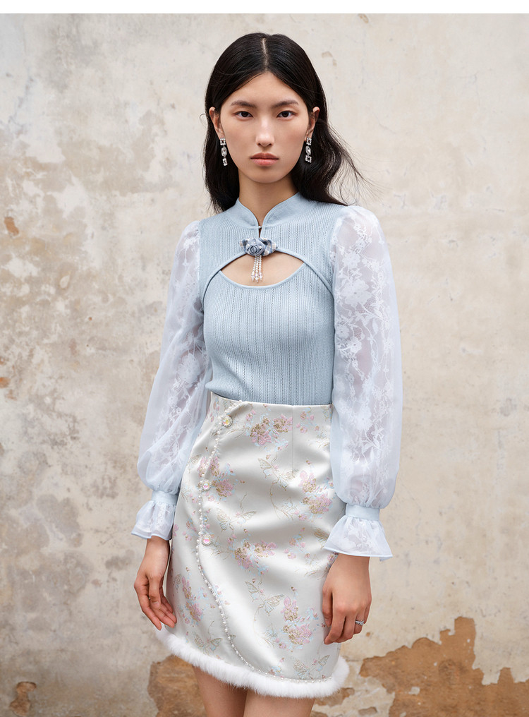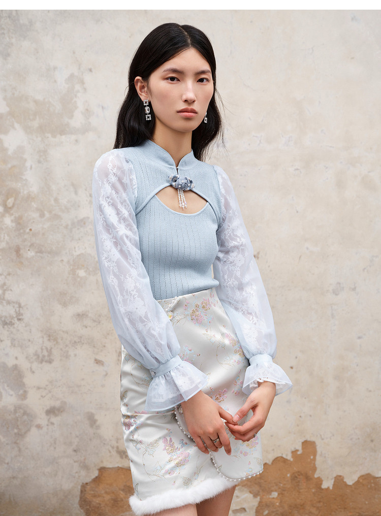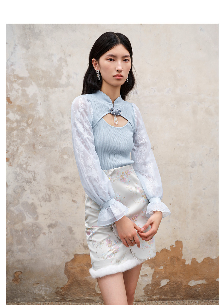 新中式结领镂空套头针织秋季修身上衣女(货号:MS88SW507B0001)