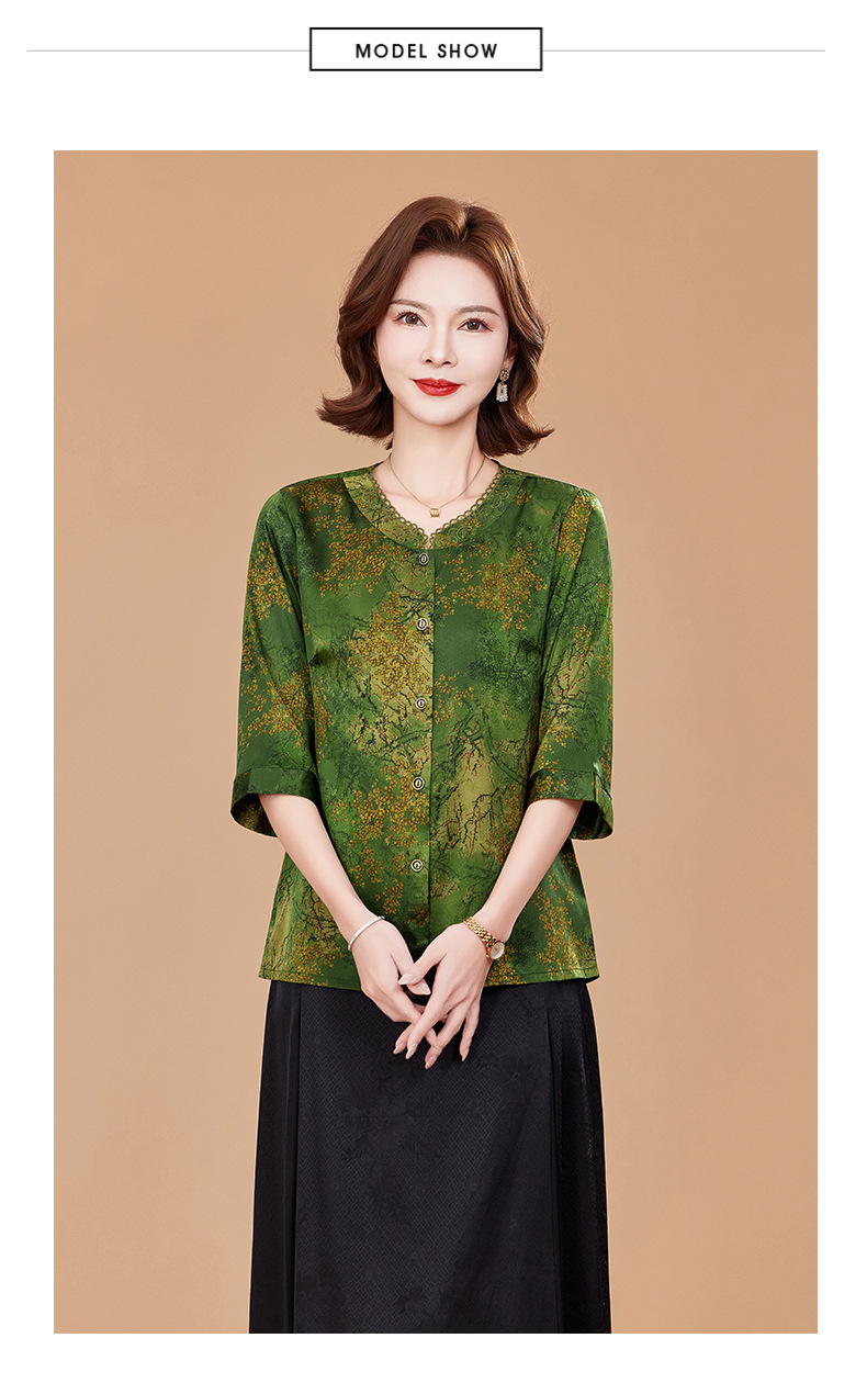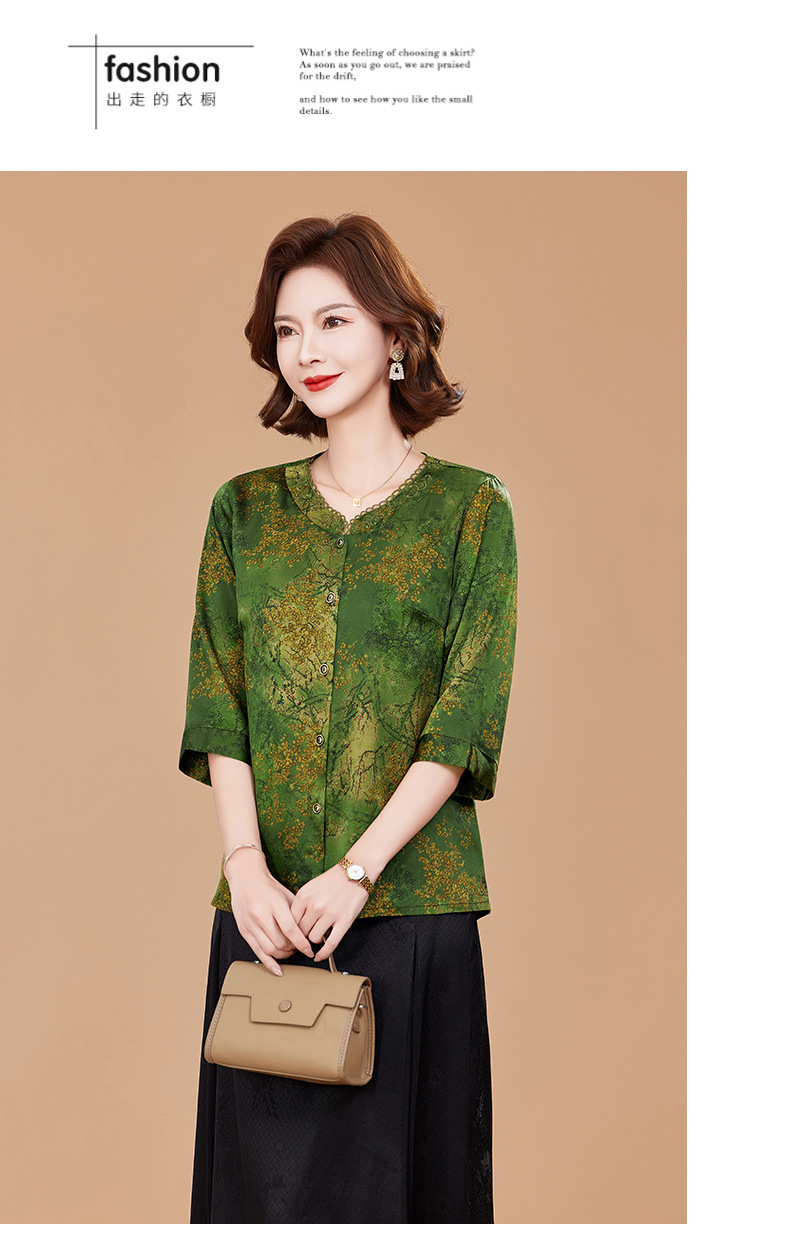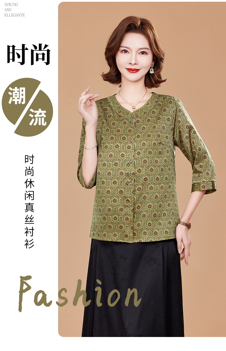 KQ夏装真丝五分袖小衫2025新款大码女装衬衫宽松休闲上衣