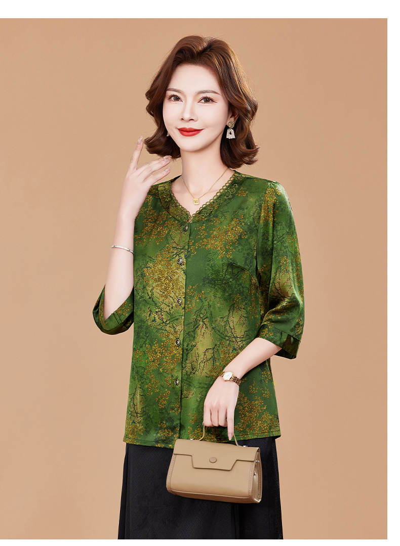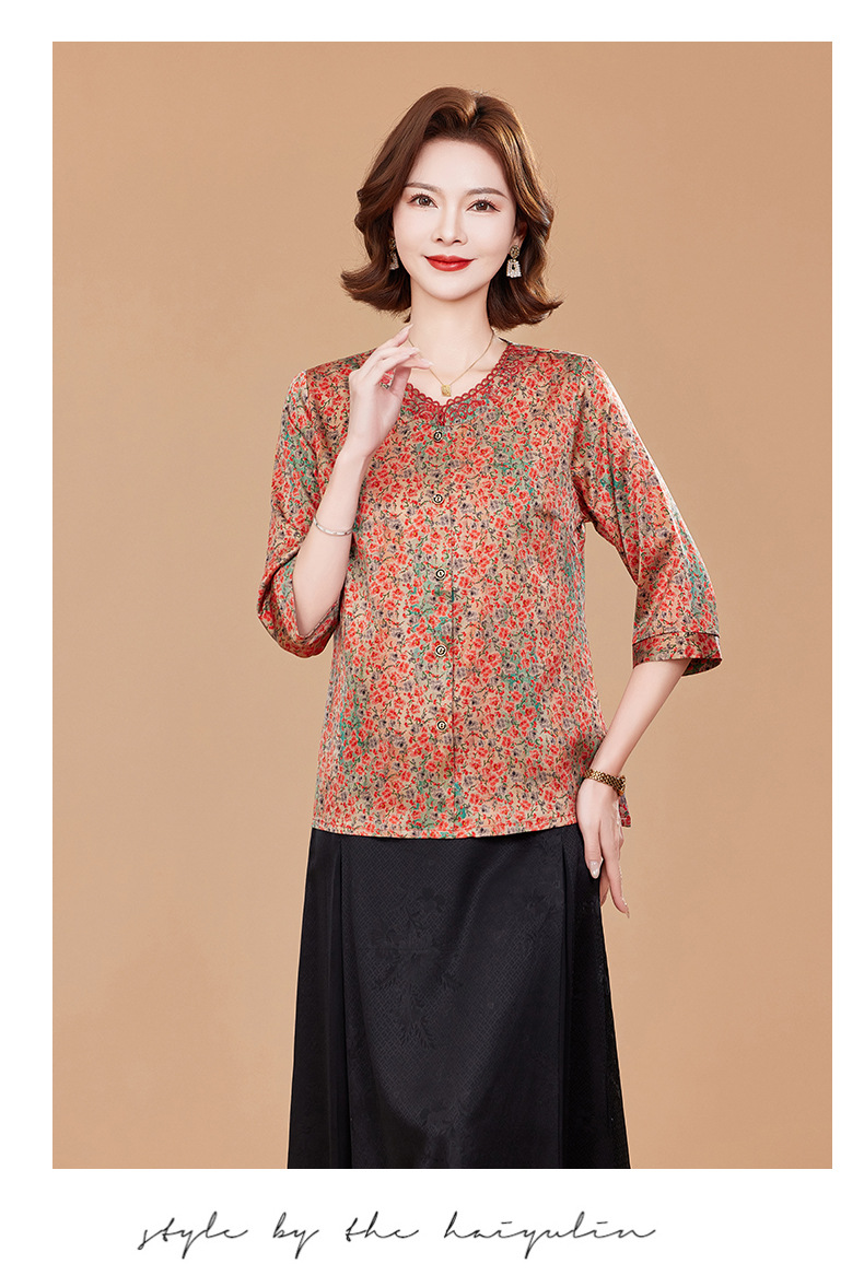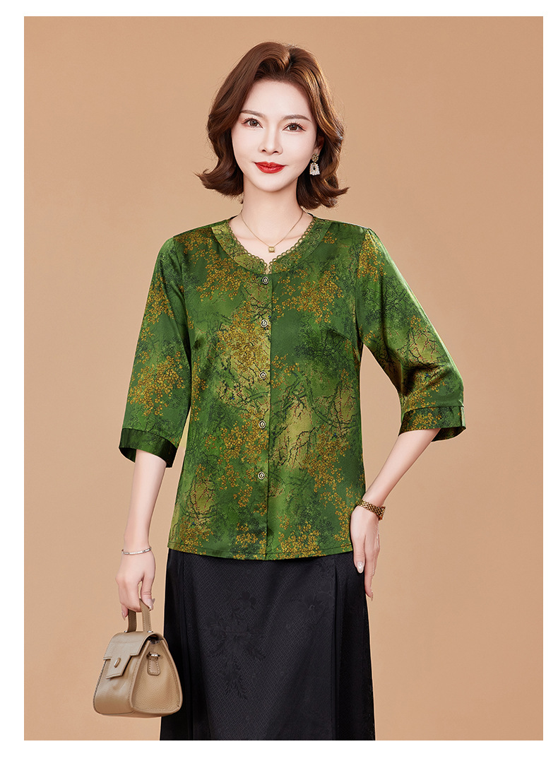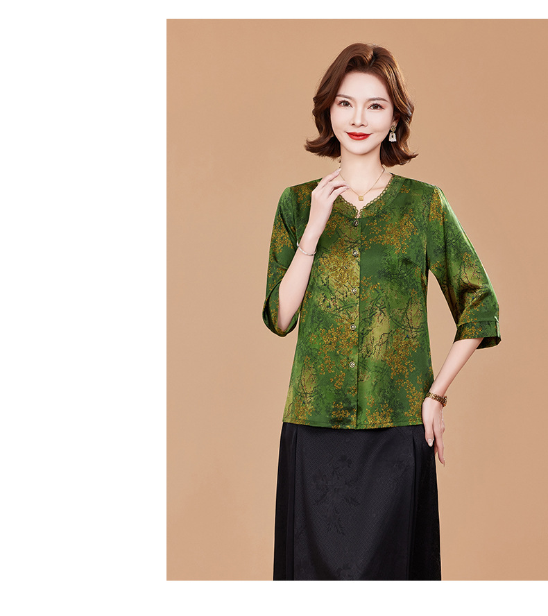 KQ夏装真丝五分袖小衫2025新款大码女装衬衫宽松休闲上衣