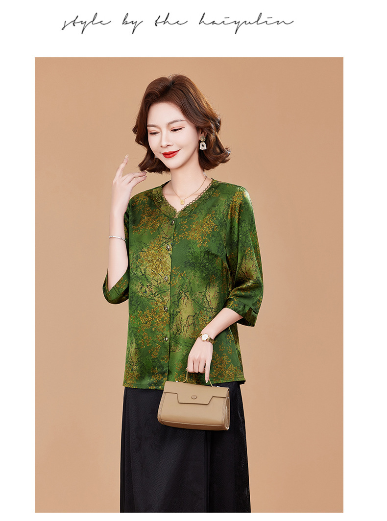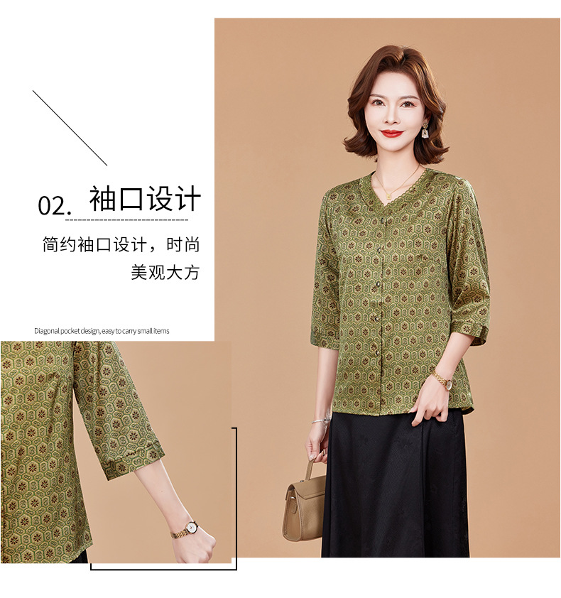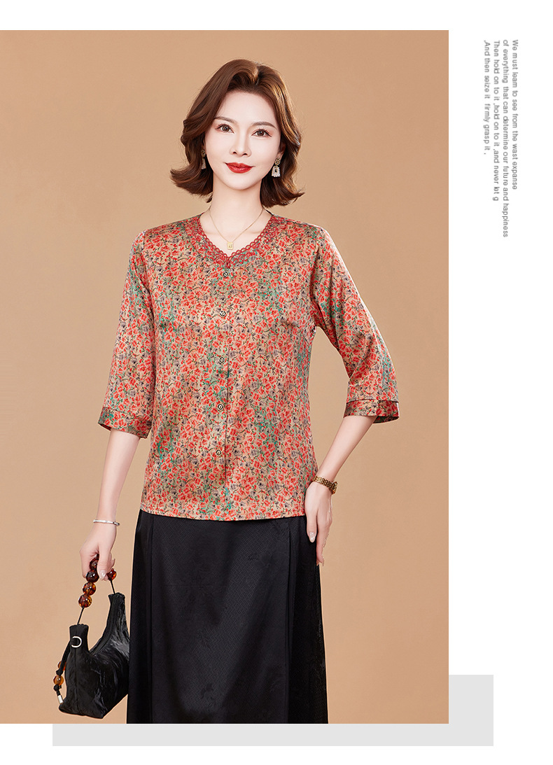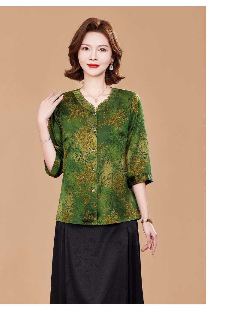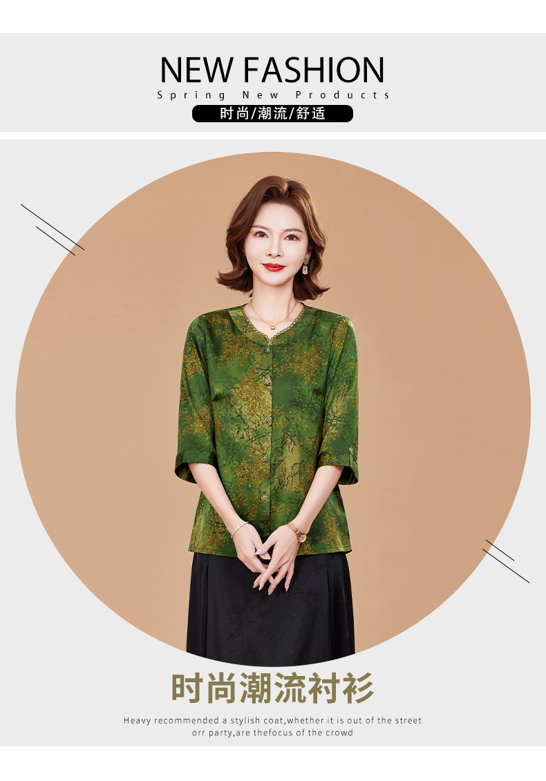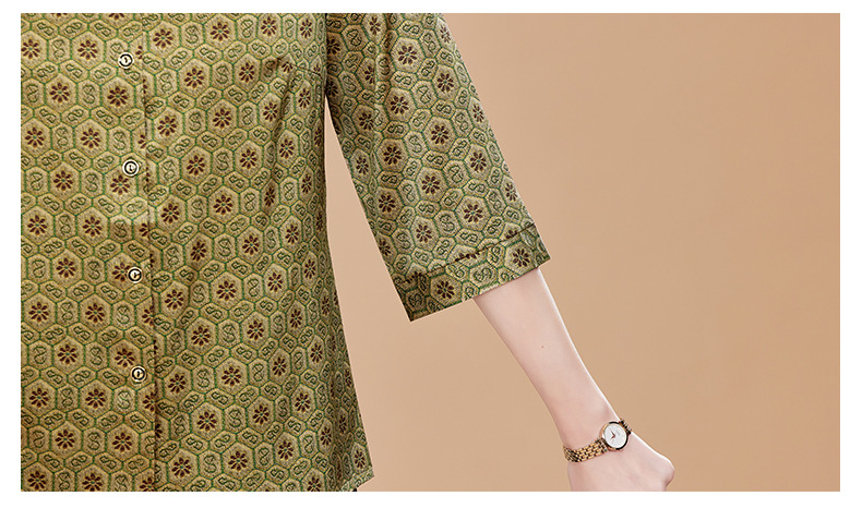 KQ-2026年春季欧美大码时尚日常通勤休闲夏季V领五分袖印花百搭衬衫