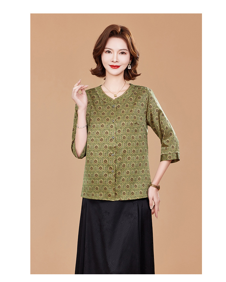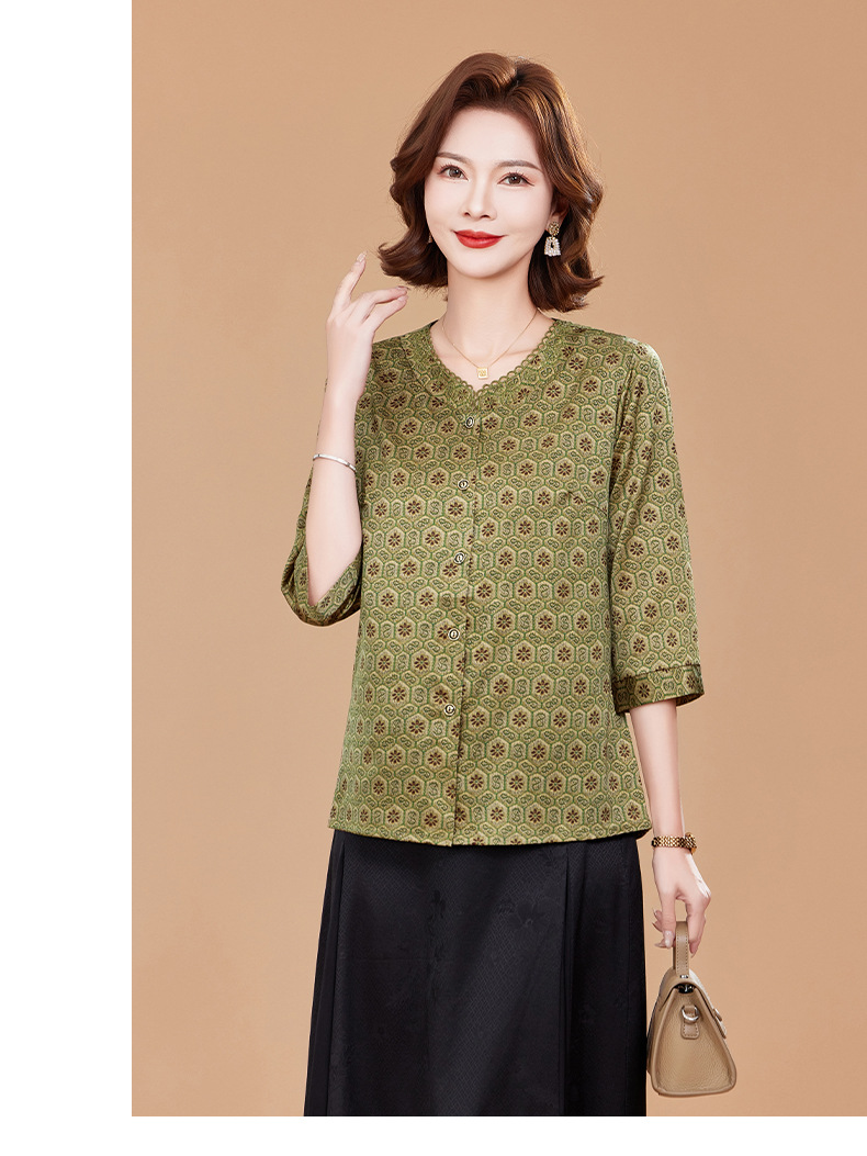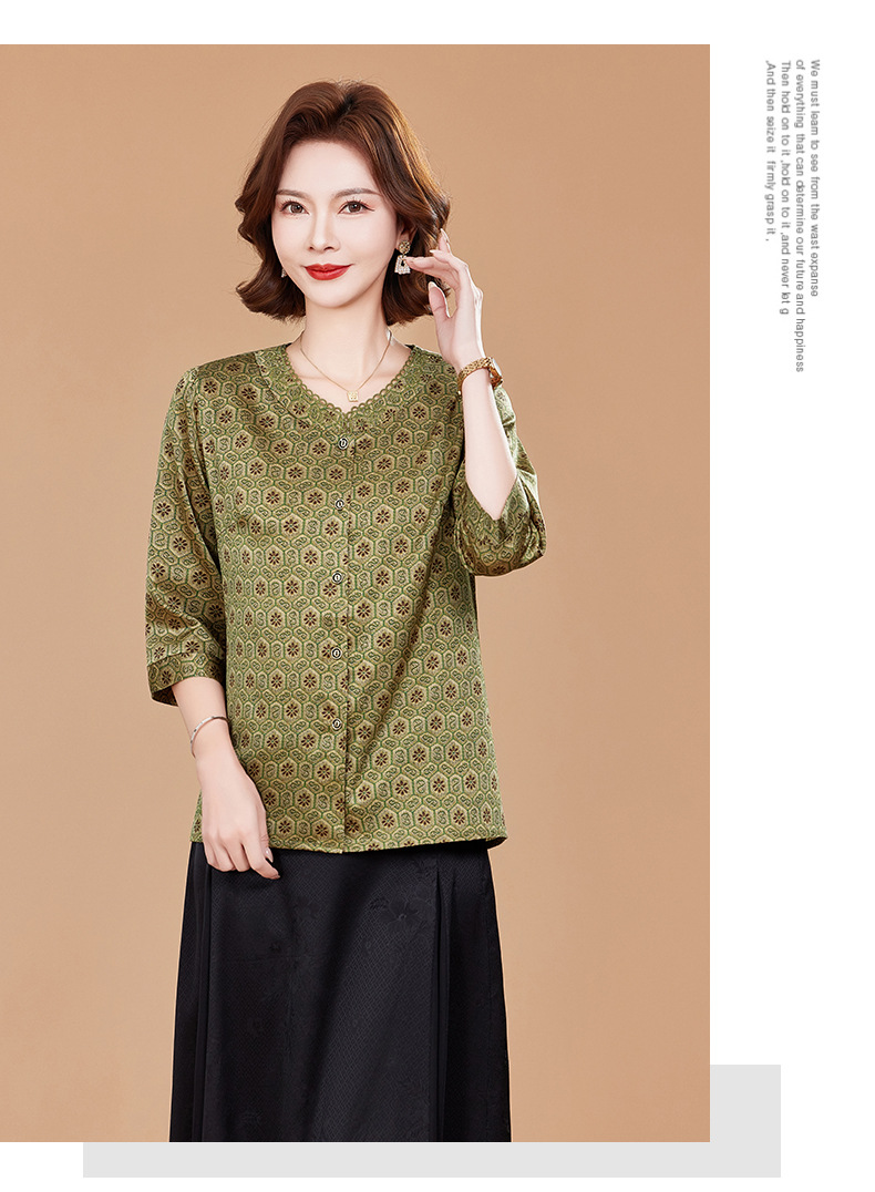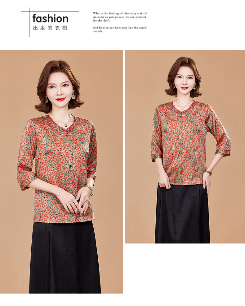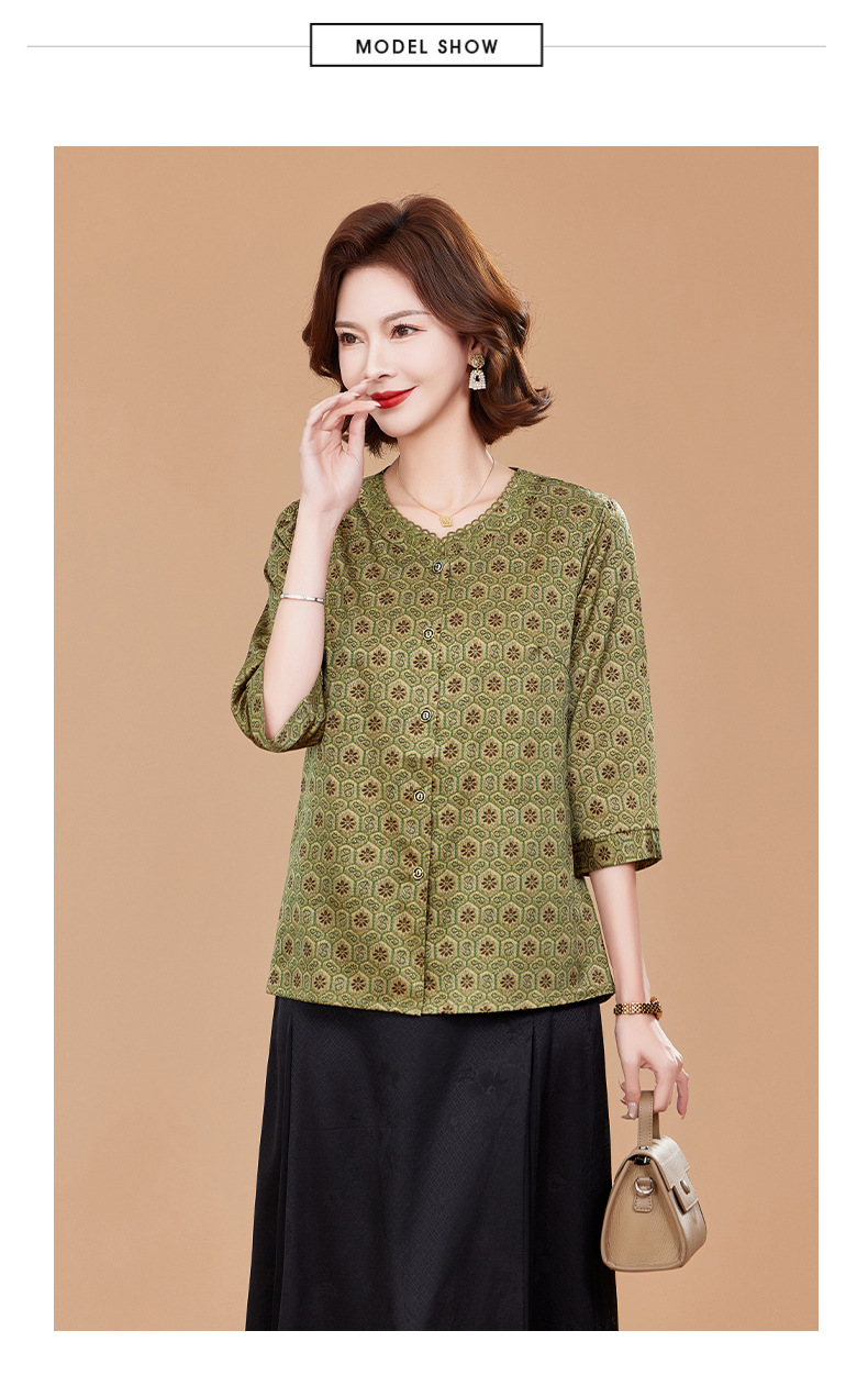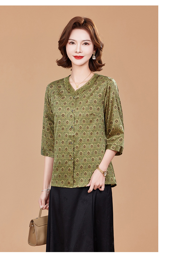 KQ-2026年春季欧美大码时尚日常通勤休闲夏季V领五分袖印花百搭衬衫
