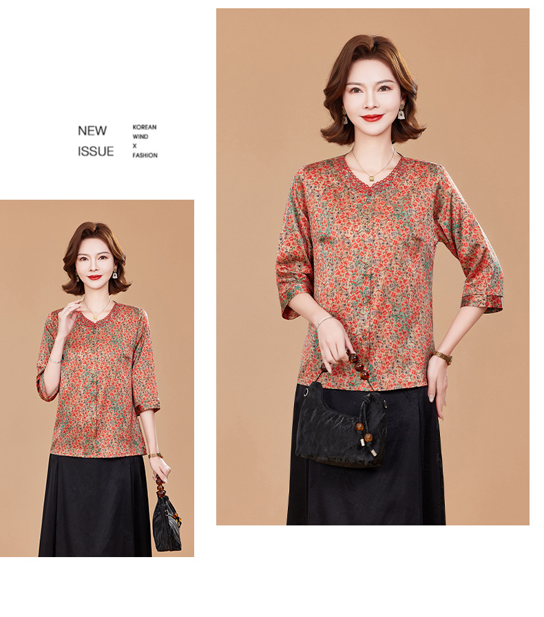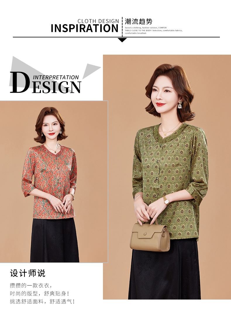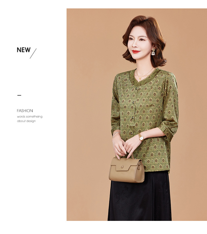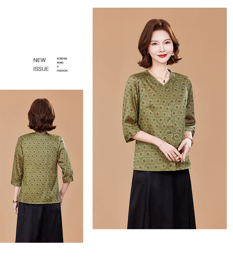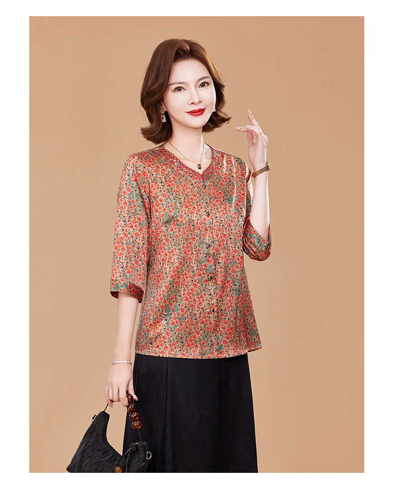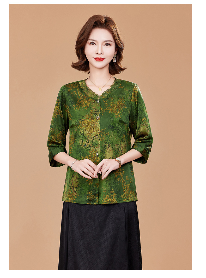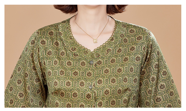 KQ-2026年春季欧美大码时尚日常通勤休闲夏季V领五分袖印花百搭衬衫