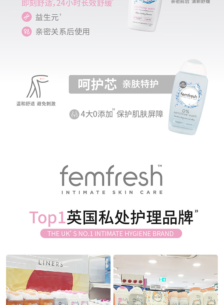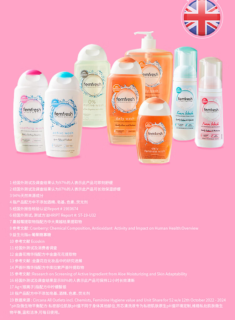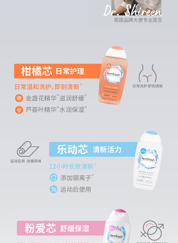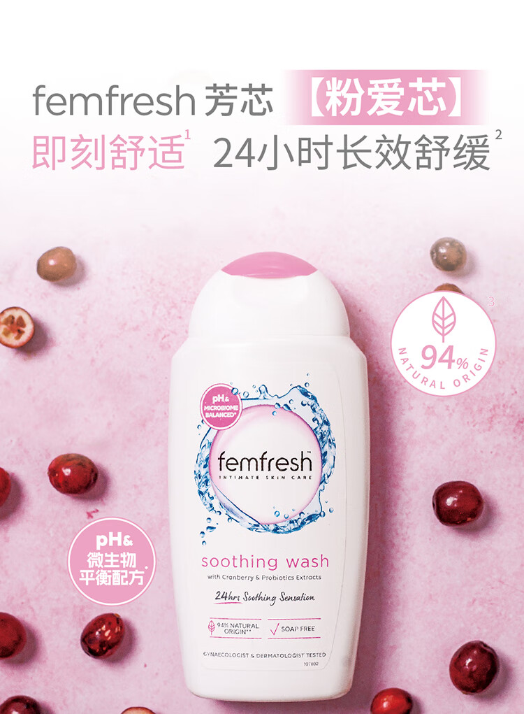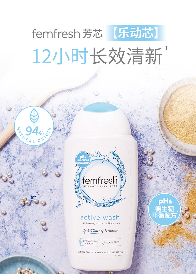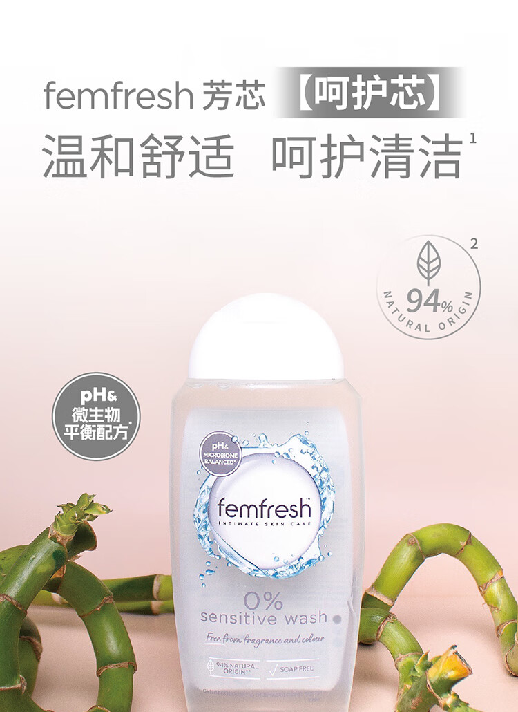 芳芯(femfresh)女性私密处护理清洁洗液 日常清洁/亲密生活/经期呵护/运动健身 250mL