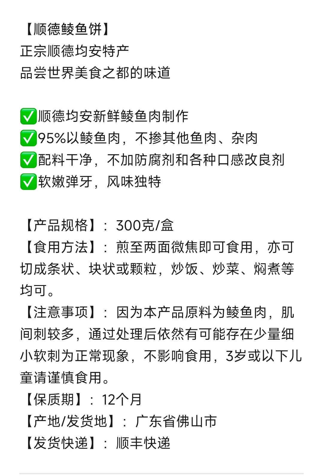 【顺丰发货】顺德鲮鱼饼 正宗顺德均安特产 纯正鲮鱼肉制作 鱼肉占比95% 软嫩弹牙