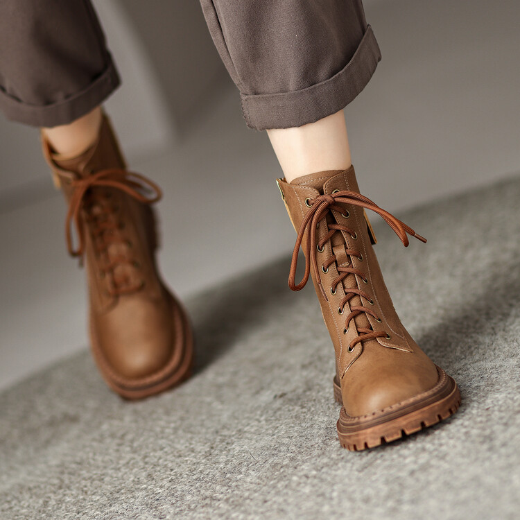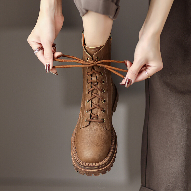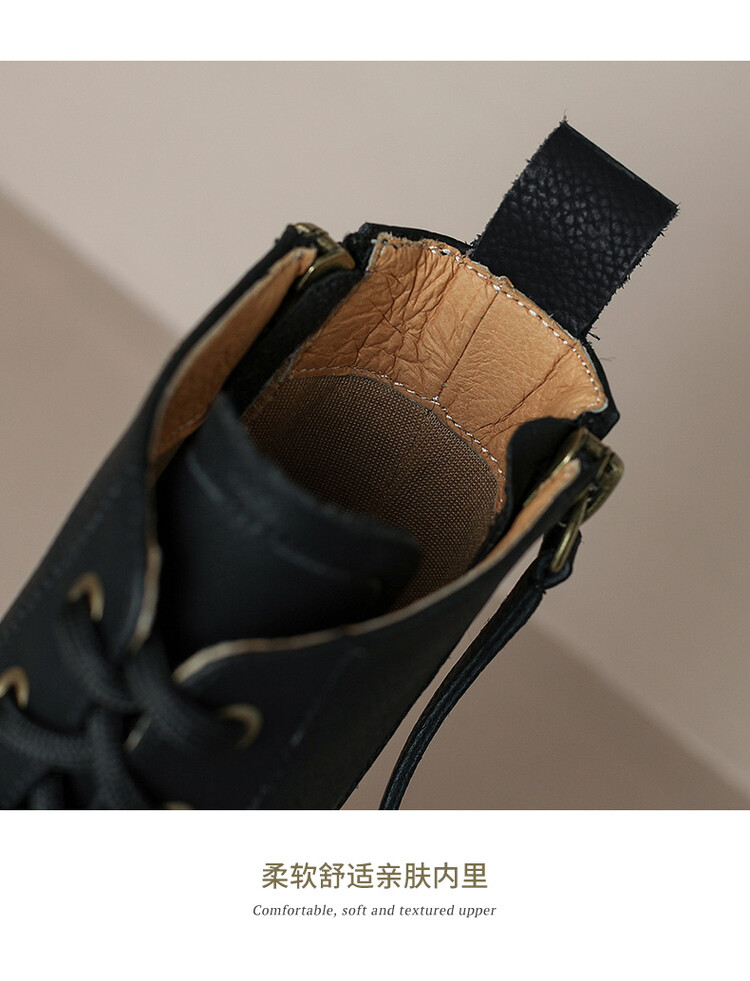 复古马丁靴秋冬季粗跟短靴,民族风压花圆头妈妈靴子MLD-89618