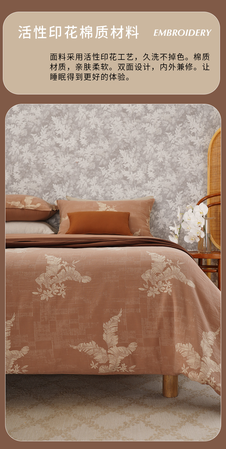 叶蔓秀影系列四件套复古床上全棉纯棉床单被罩枕罩床品结婚轻奢高级感