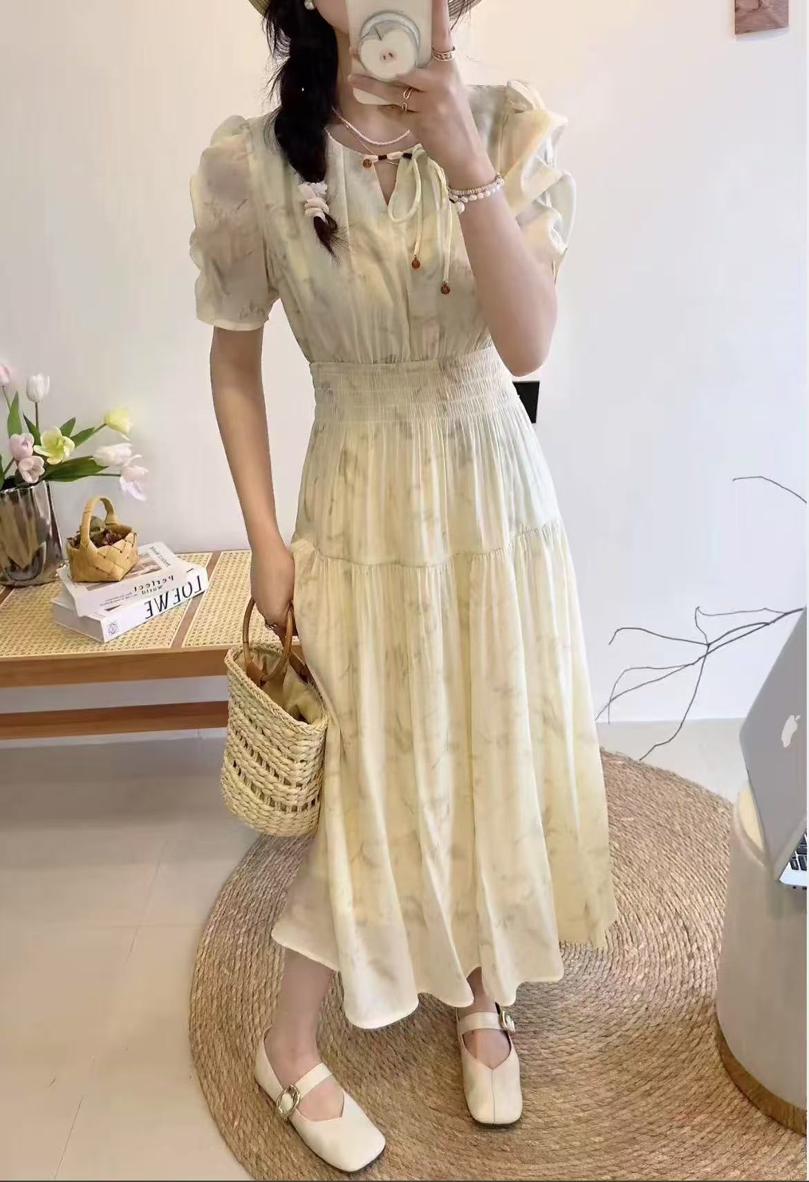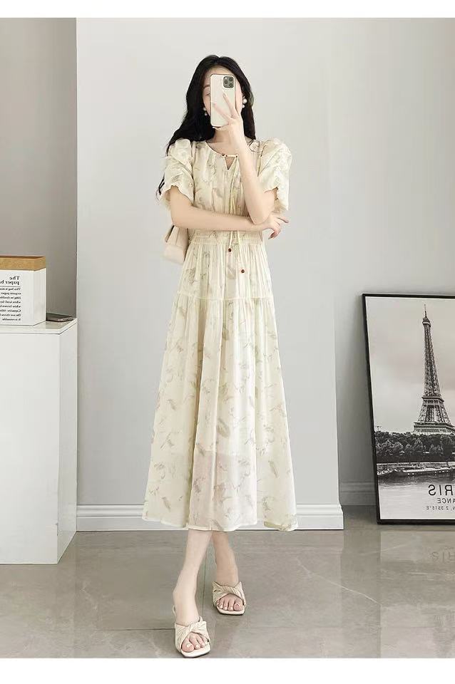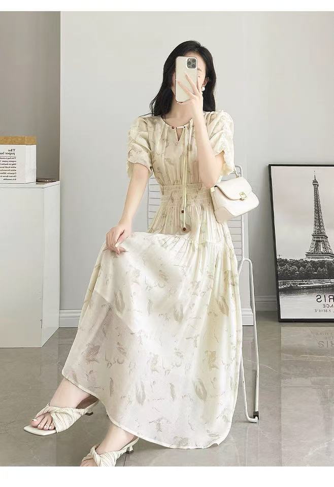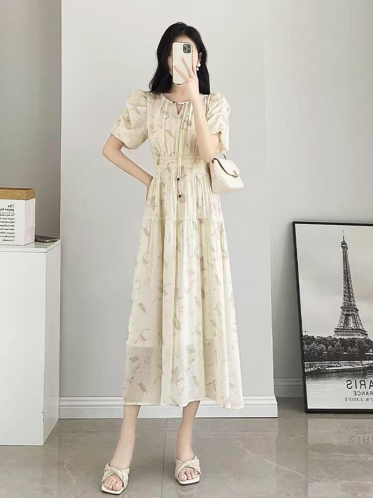 中秋大力度清仓~(不支持退)-NO退【MYBL】88L66新中式显瘦茶歇碎花长款连衣裙-喜出