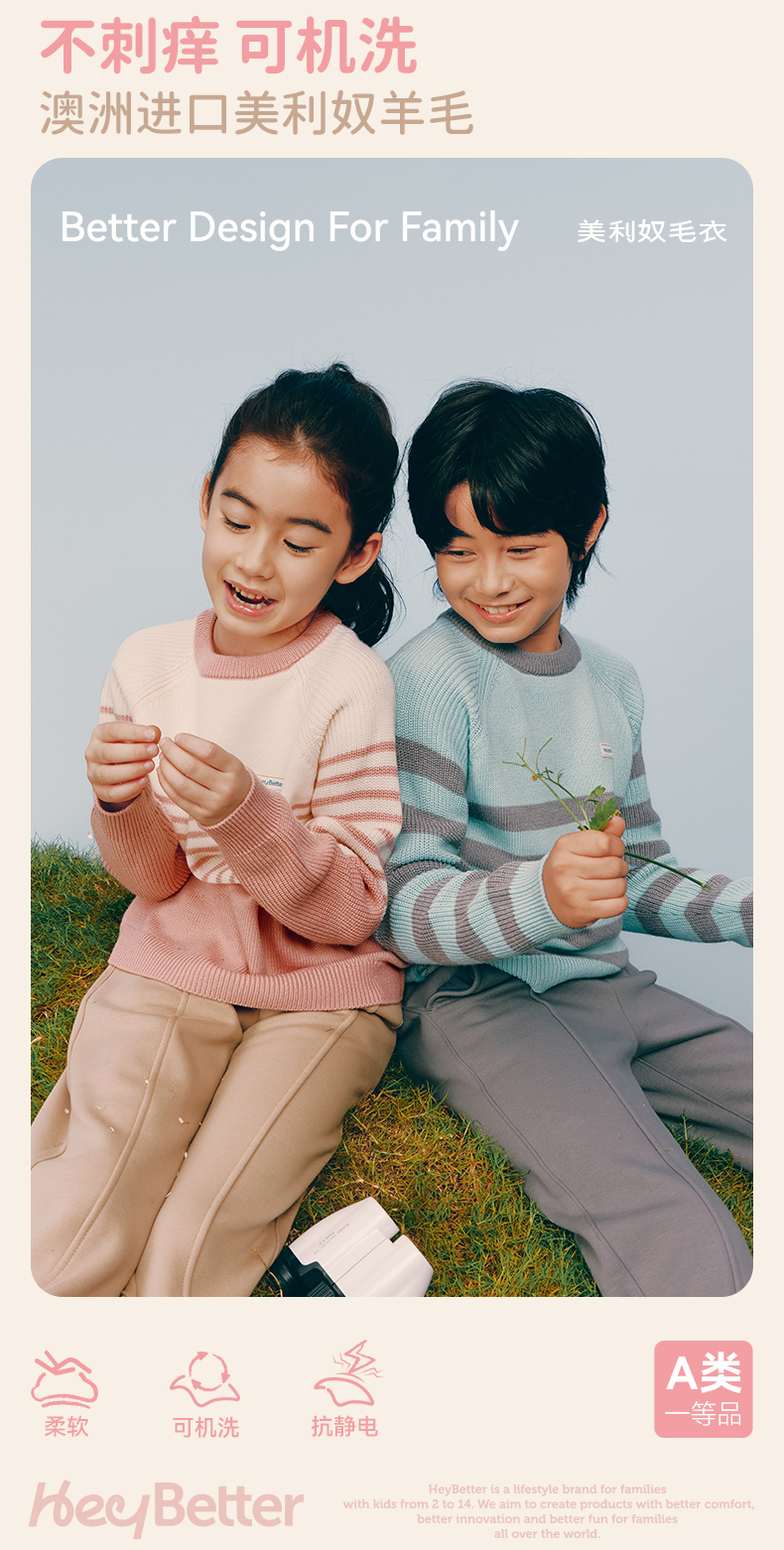 【HeyBetter】美利奴羊毛毛衣 采用澳洲进口超细纤维,柔软亲肤不扎人,轻盈中锁住温暖空气层,持久保暖又抗静电。