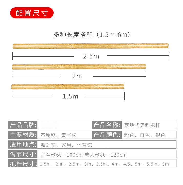 【邮费单独收取】【格物系列】落地式舞蹈把杆墙壁固定压腿杆落地固定舞蹈室把杆家用舞蹈压腿杆【可先看样,样品7天无理由退货。大货不退】