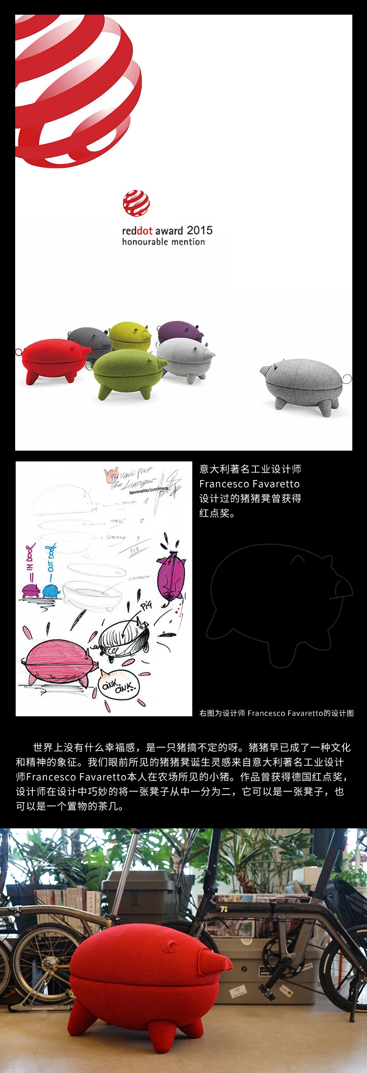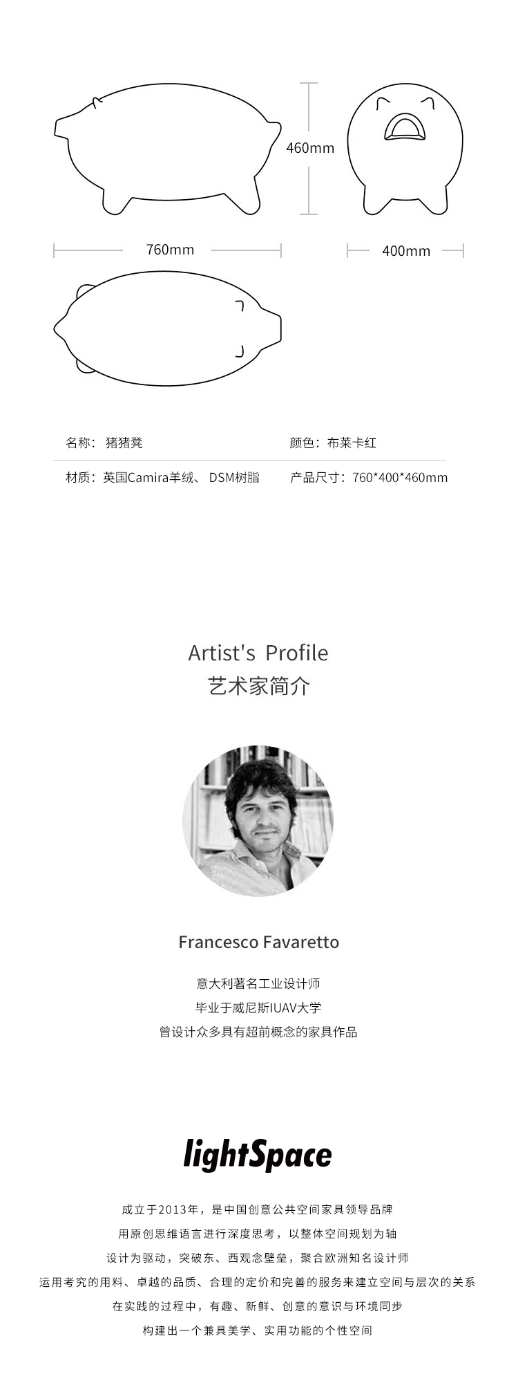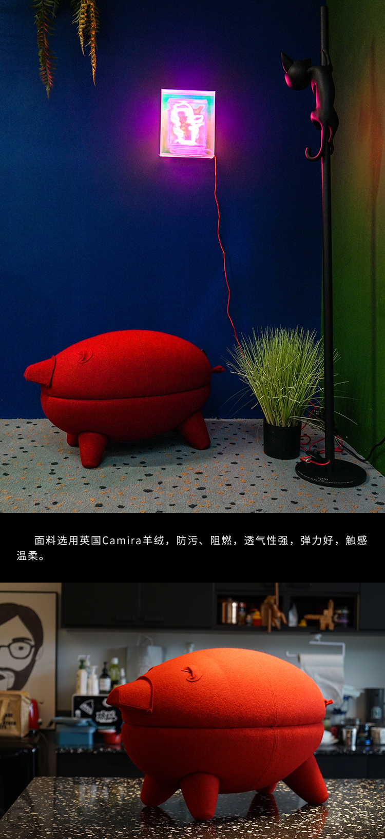 与光共舞 光头仔的游乐园 猪猪凳/茶几 布莱卡红羊绒款