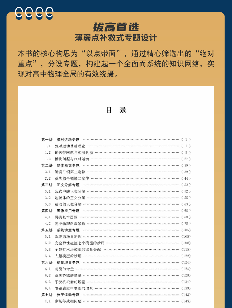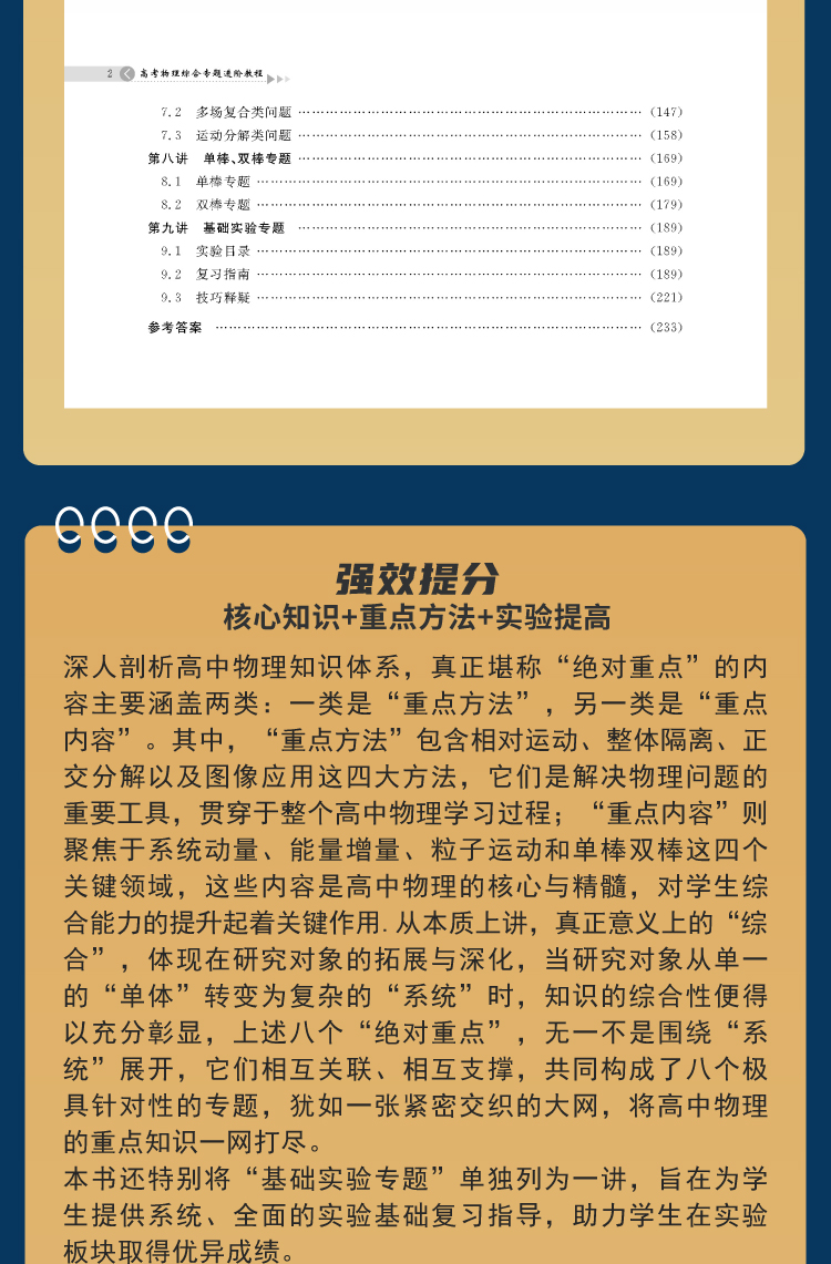 本书将高考物理常考的综合专题做了细致的归纳,不论物理高考的趋势如何变化,对学生来说,拥有解决问题的综合能力是最重要的,而在学生解决物理综合问题时总是会有所卡顿,本书将高考常考的重点综合专题进行归纳总结,让学生在高考复习时,能够针对自己薄弱的综合专题进行强化巩固,故本书围绕每个综合专题,设置专题深耕、典型例题、总结感悟三个栏目,将9大高考物理综合专题讲深讲透,帮助学生更好地应对高考中的综合难题,取得突破性的高分。