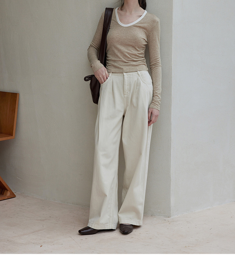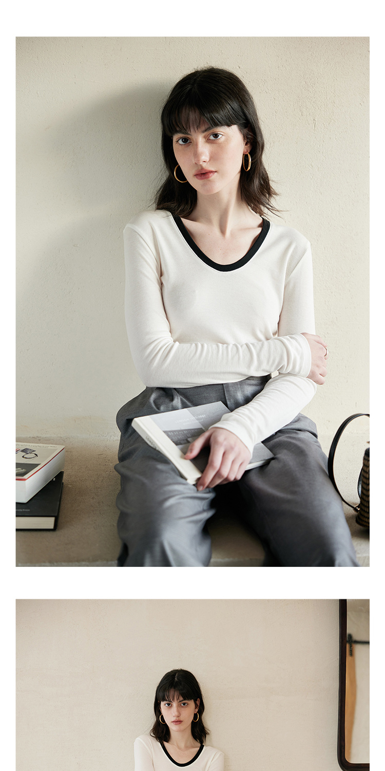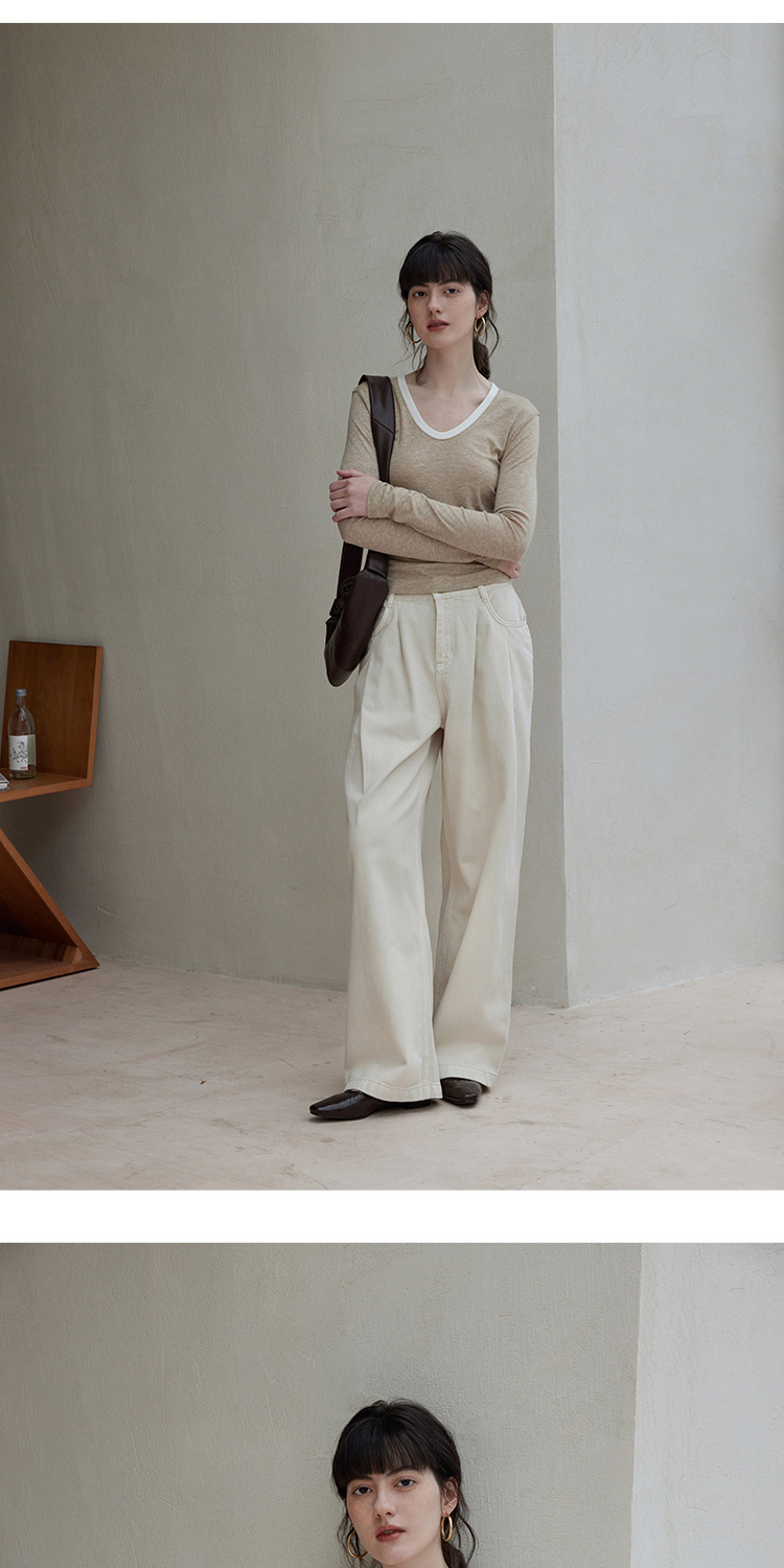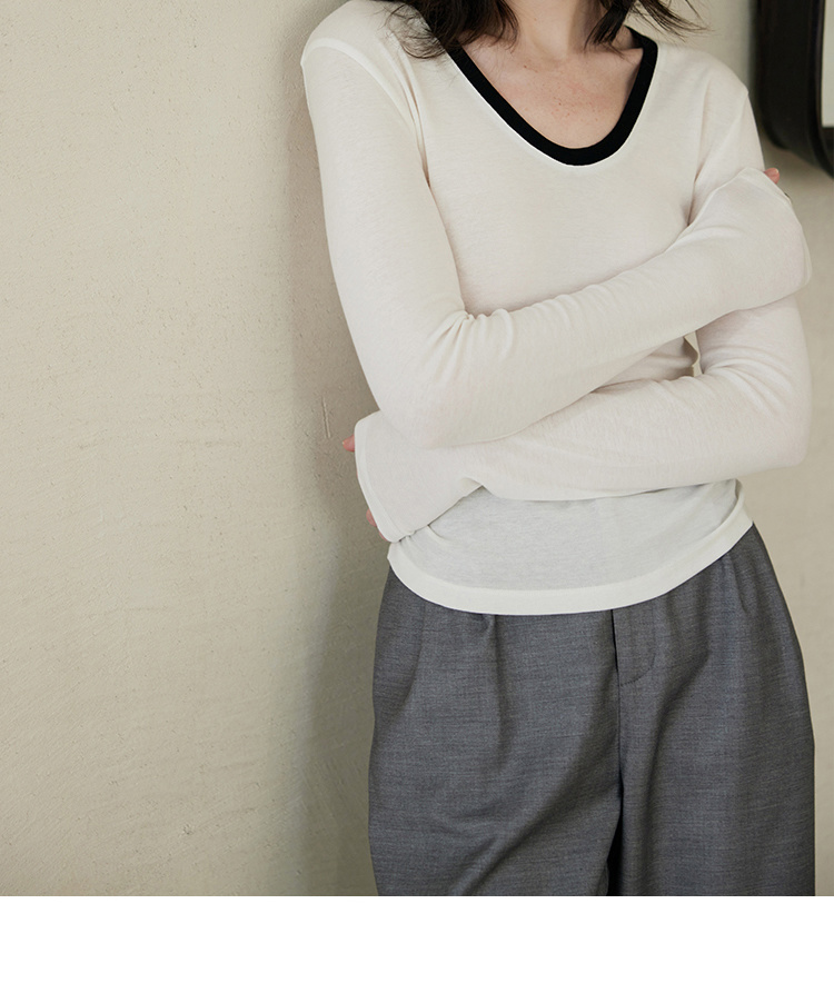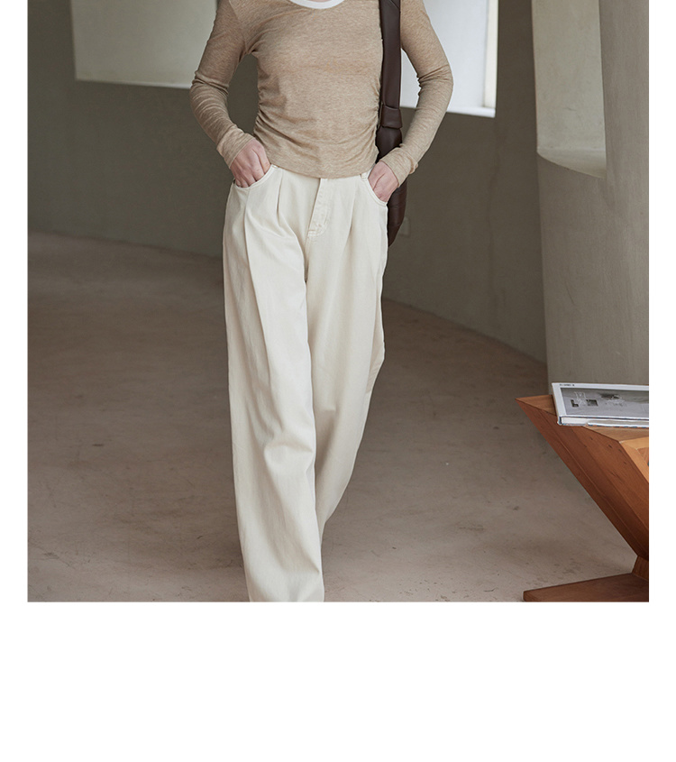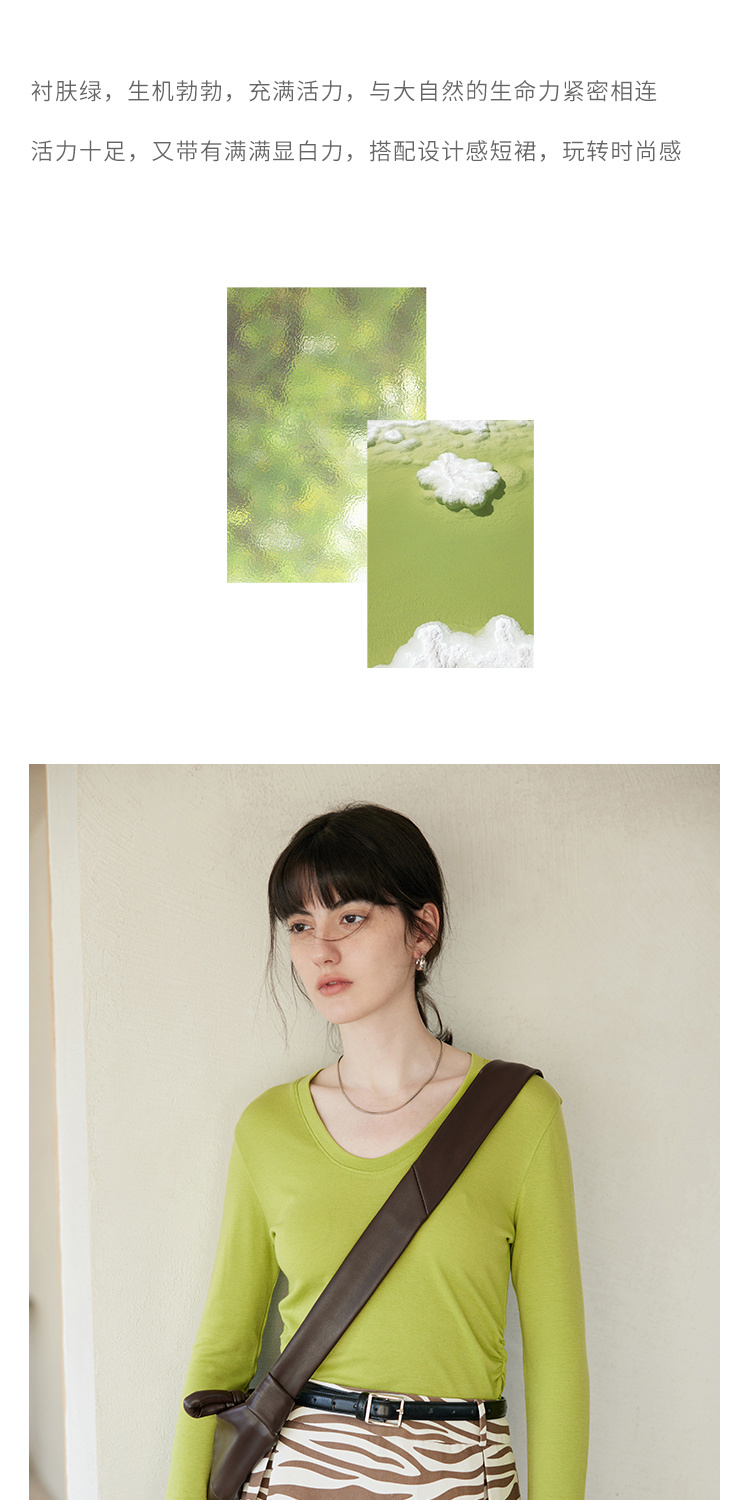 HeyDress天丝羊毛T恤女春季修身长袖内搭打底衫百搭圆领抽褶上衣