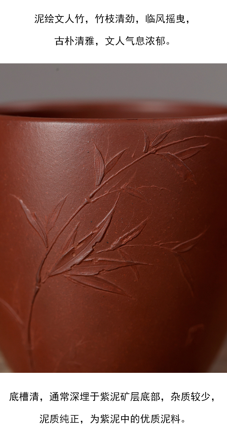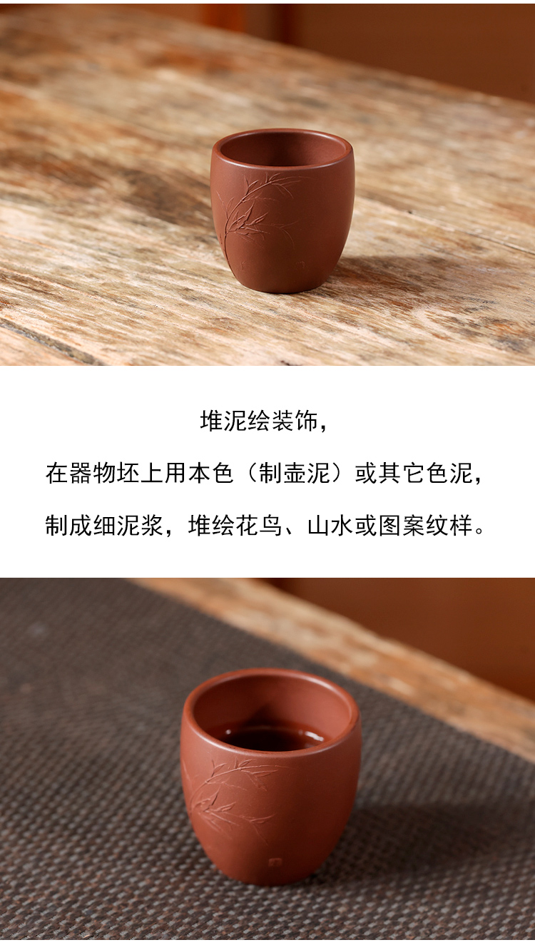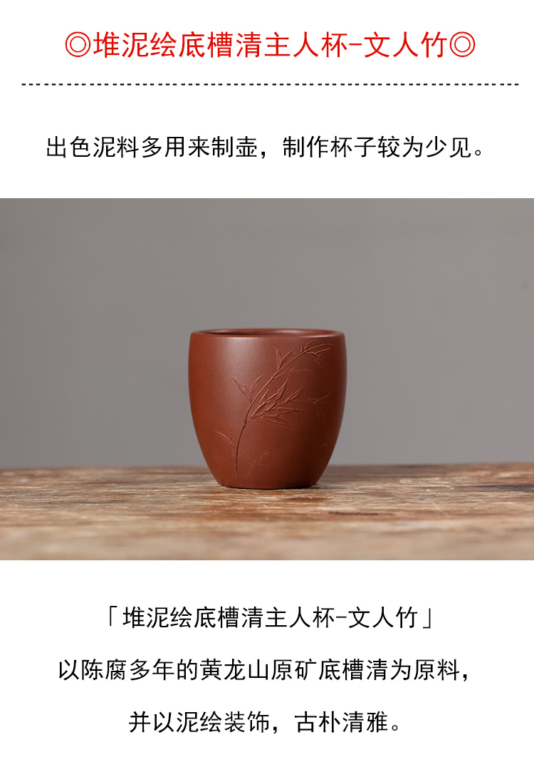 茶香记 150ml润砂堂精品堆泥绘底槽清主人杯文人竹手工紫砂茶杯
