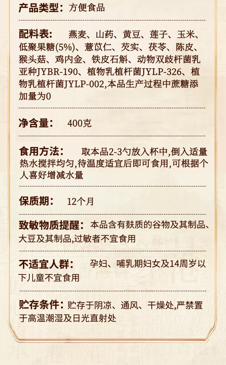 香港宝芝林出品!猴头菇石斛山药粉400g/罐