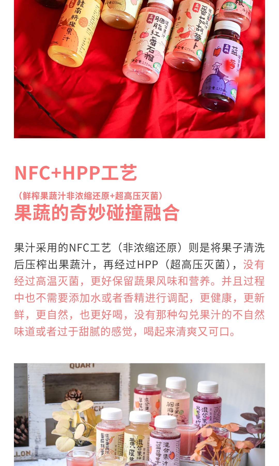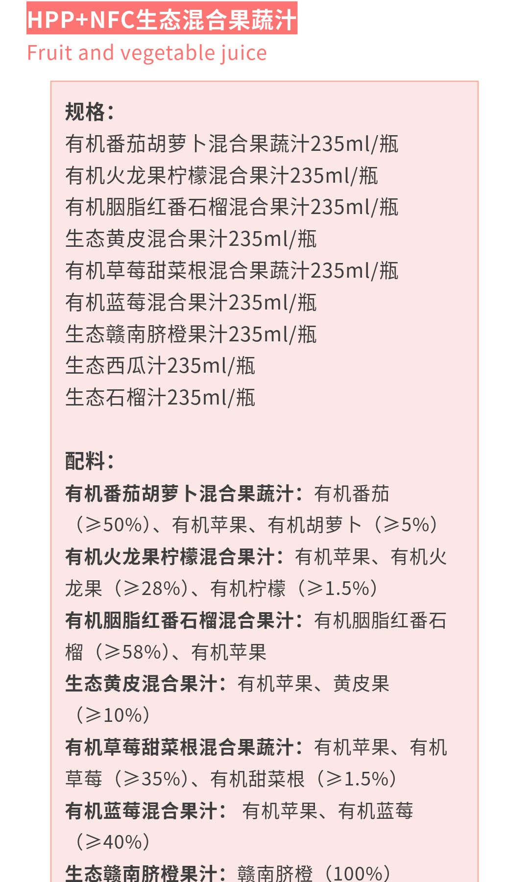 9种口味HPP+NFC果汁,有胭脂红番石榴、黄皮、赣南脐橙、西瓜、软籽石榴汁、蓝莓苹果、草莓甜菜根、火龙果、番茄胡萝卜 | 绿家自产 *Self-production