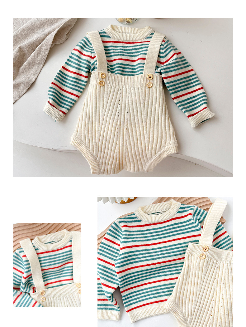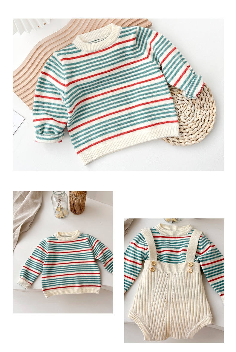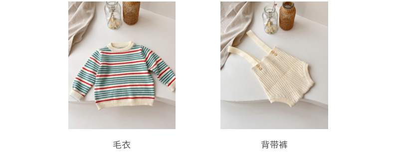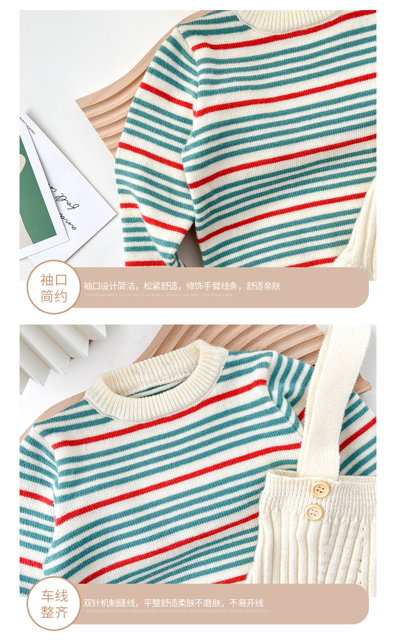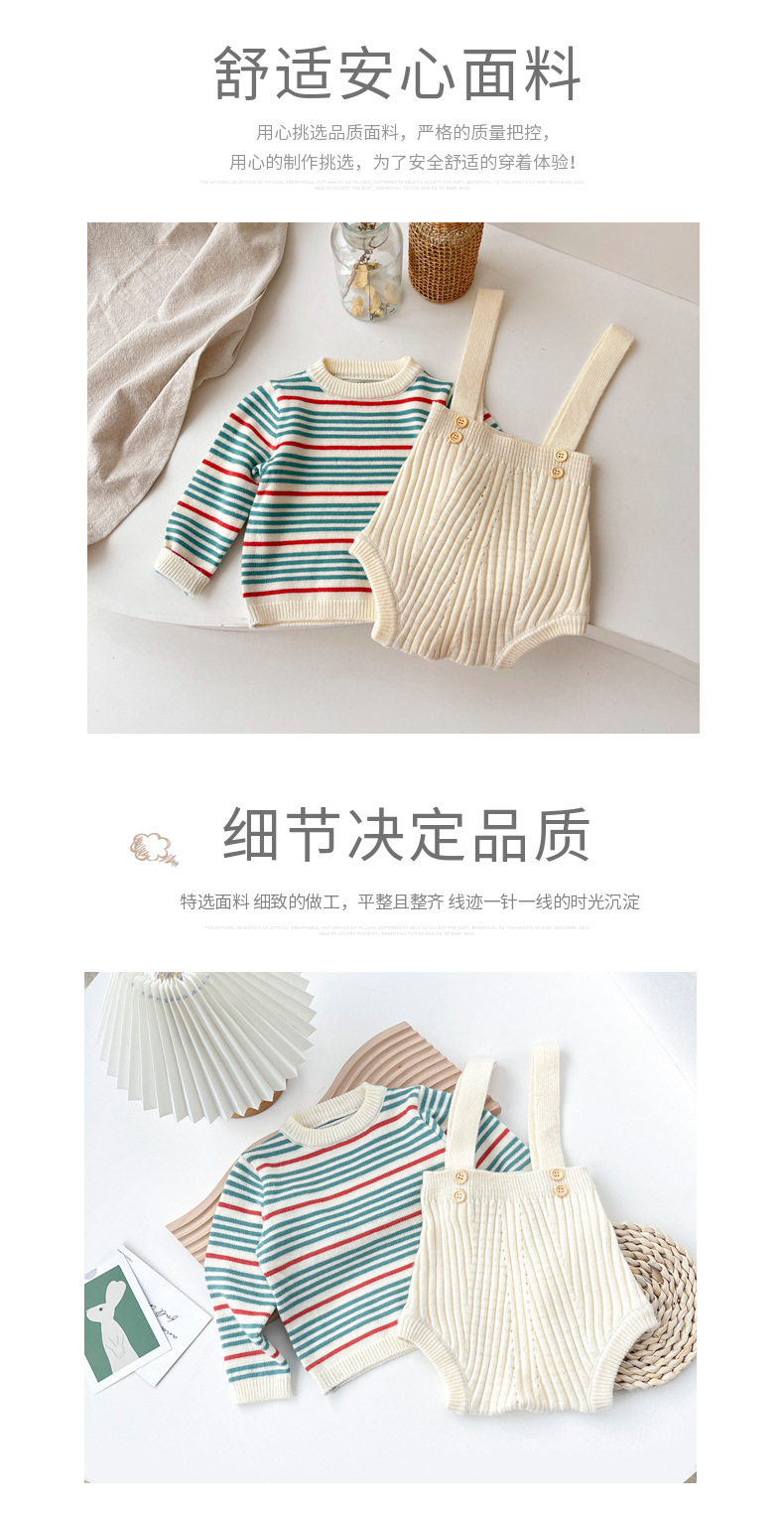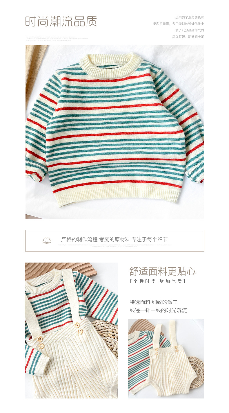 【特选面料,细致做工!】韩版婴儿衣服春秋装男女宝宝条纹针织上衣+裤子套装新生儿毛衣给宝宝增添活力与可爱lm