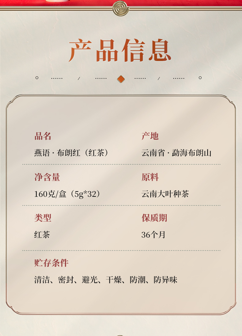 燕语布朗红方形小圆满礼盒160g(红茶)