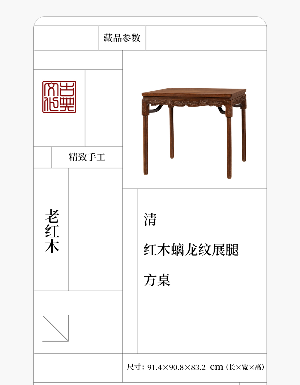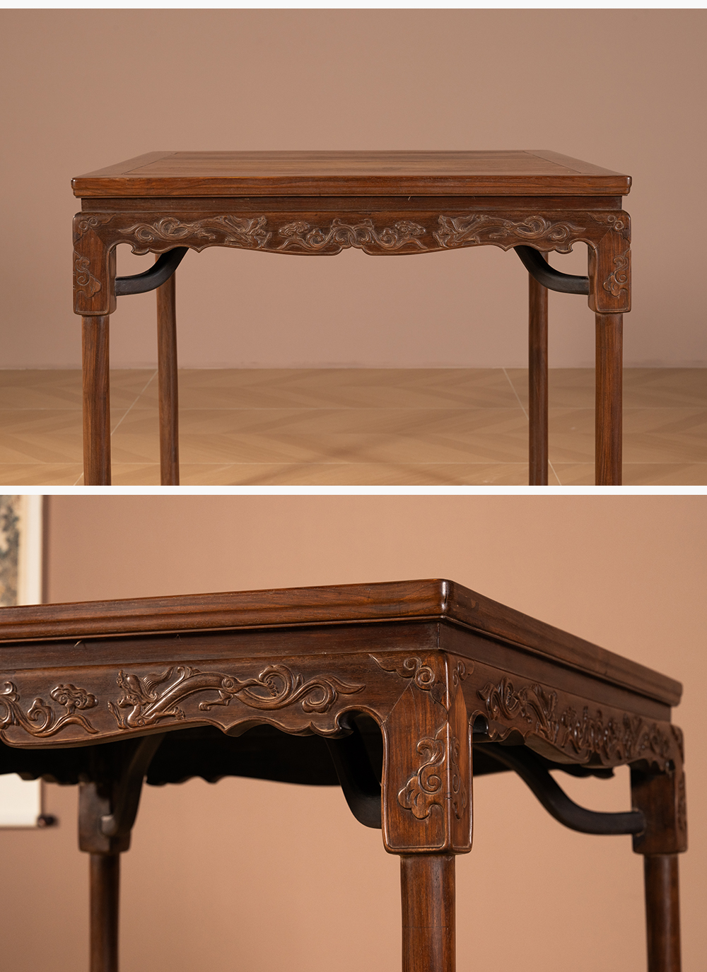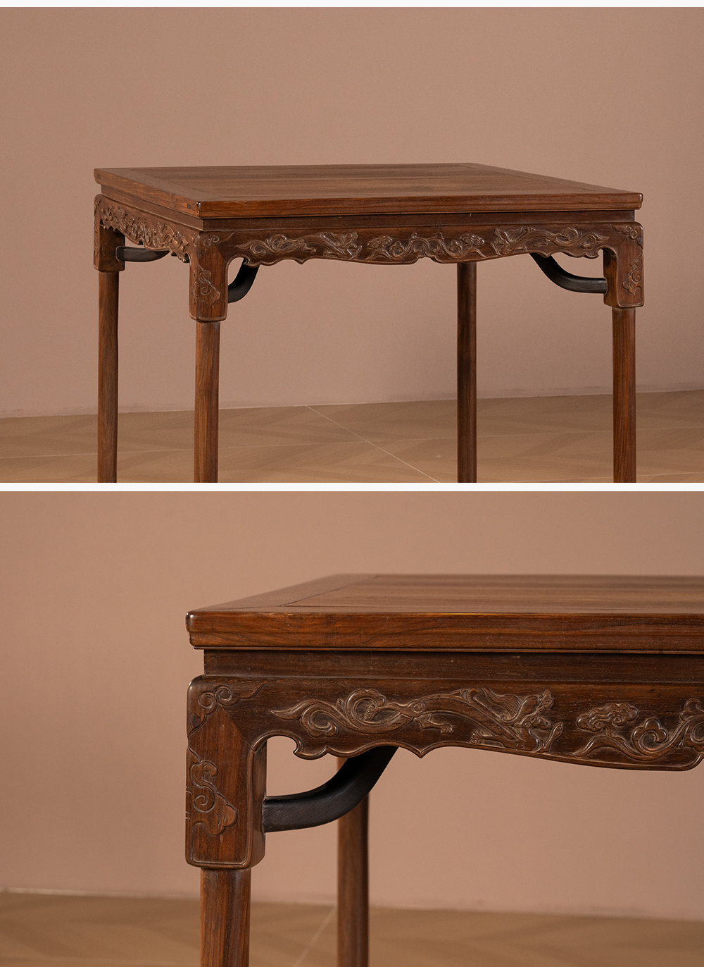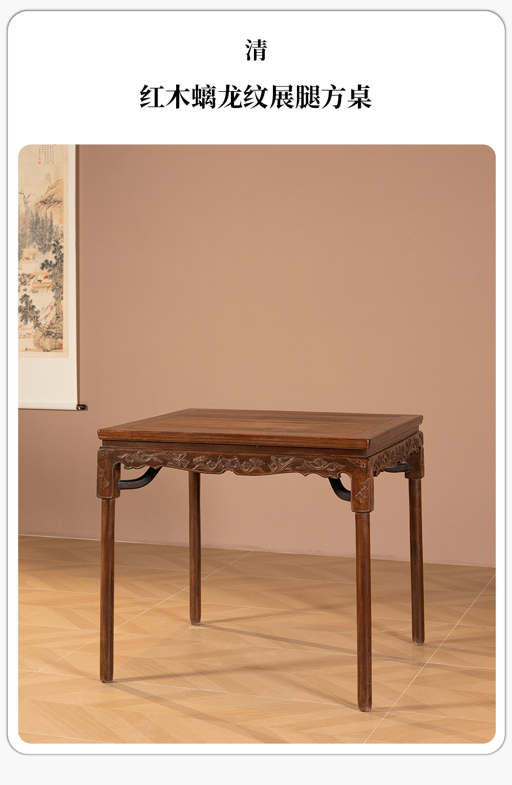 清 红木螭龙纹展腿方桌