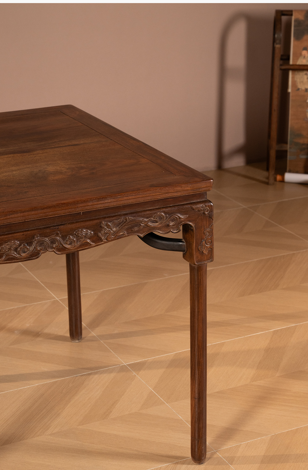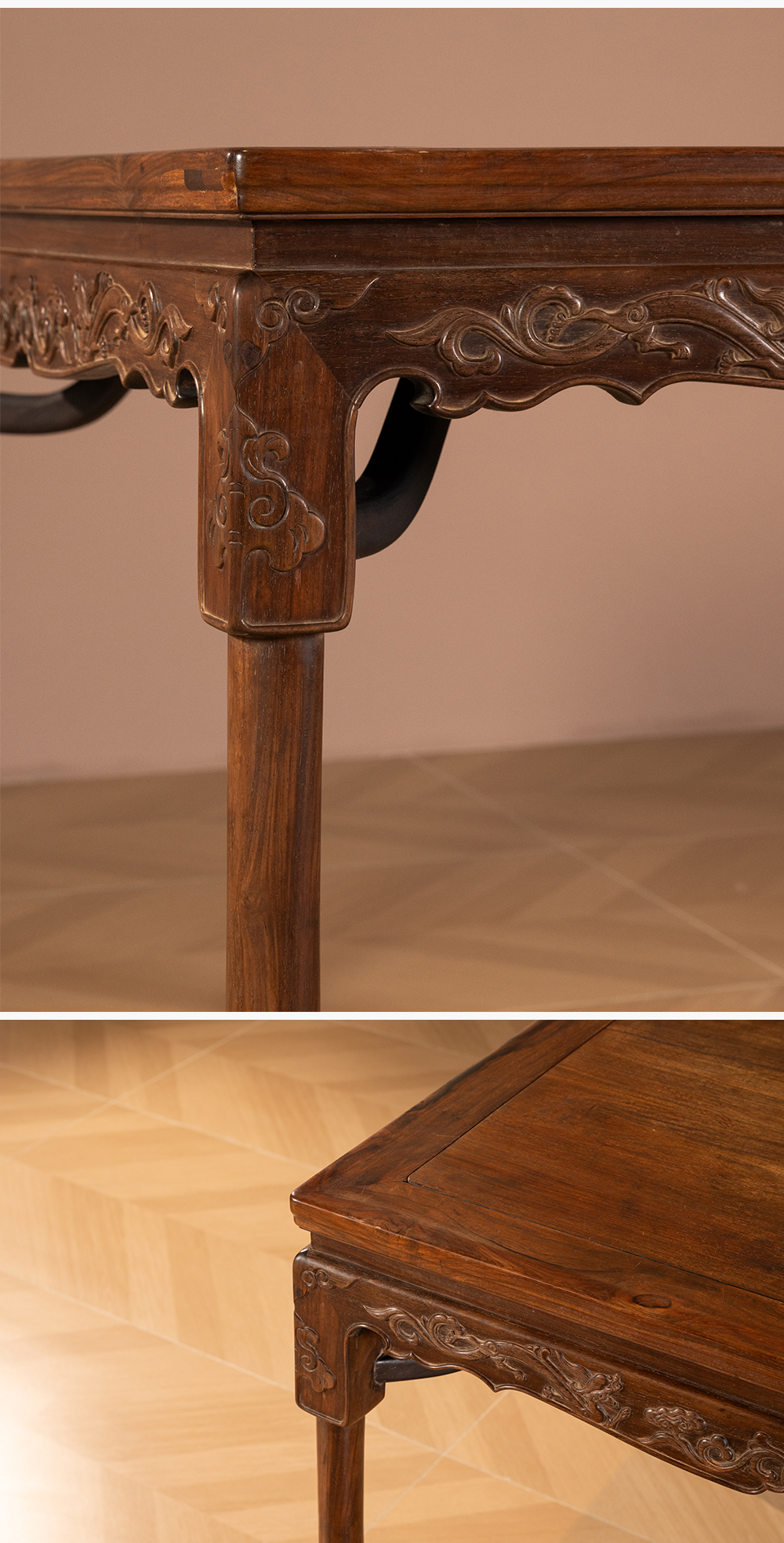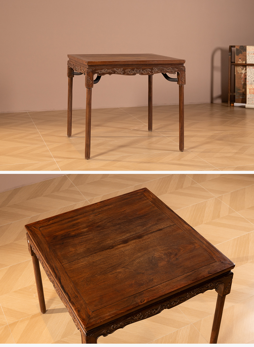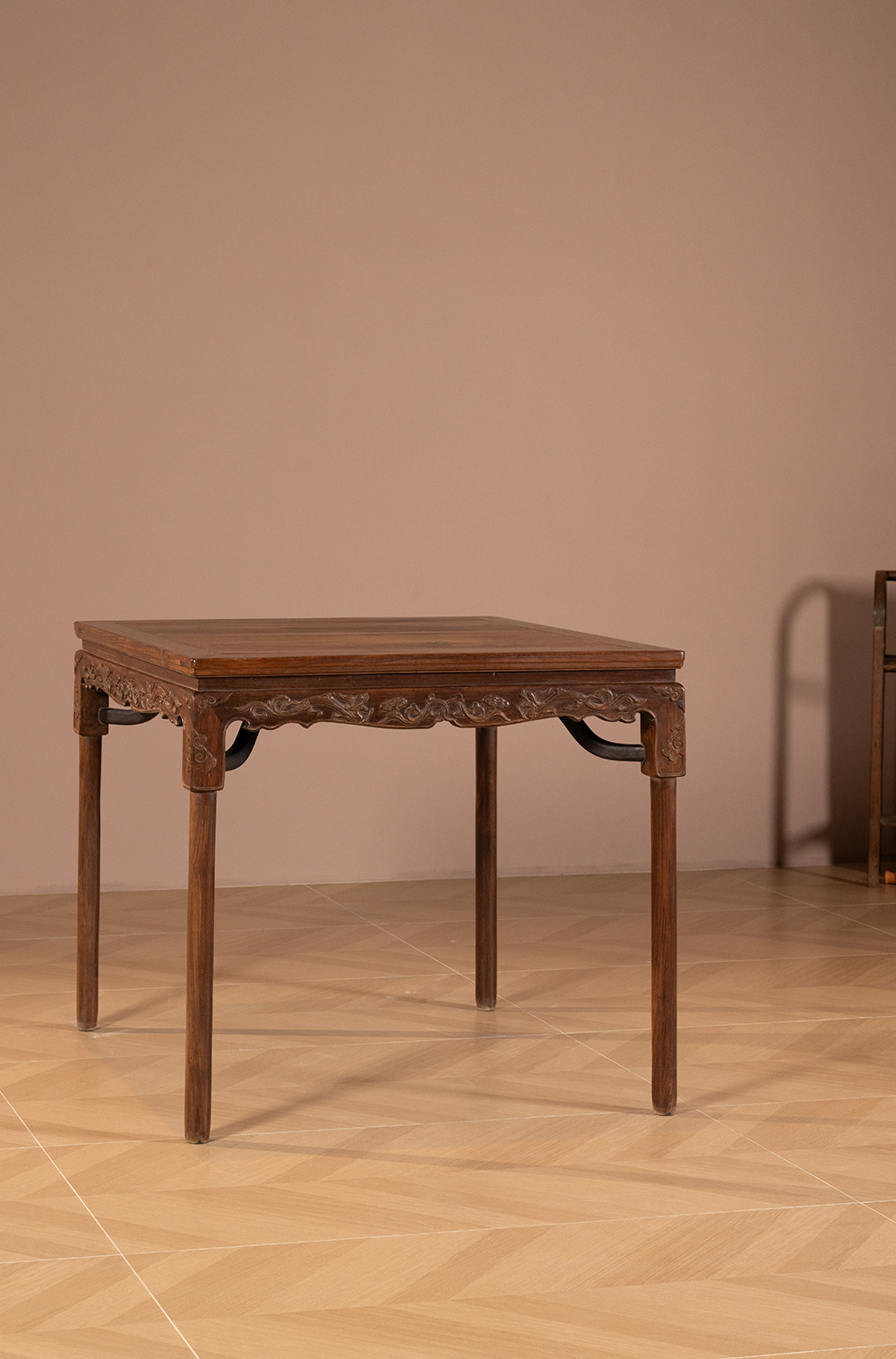 清 红木螭龙纹展腿方桌