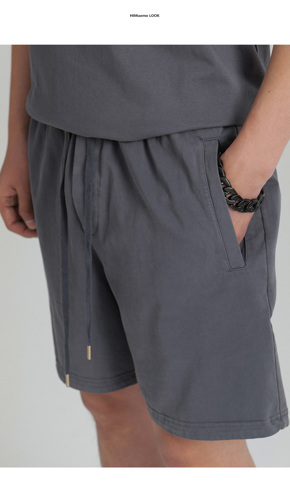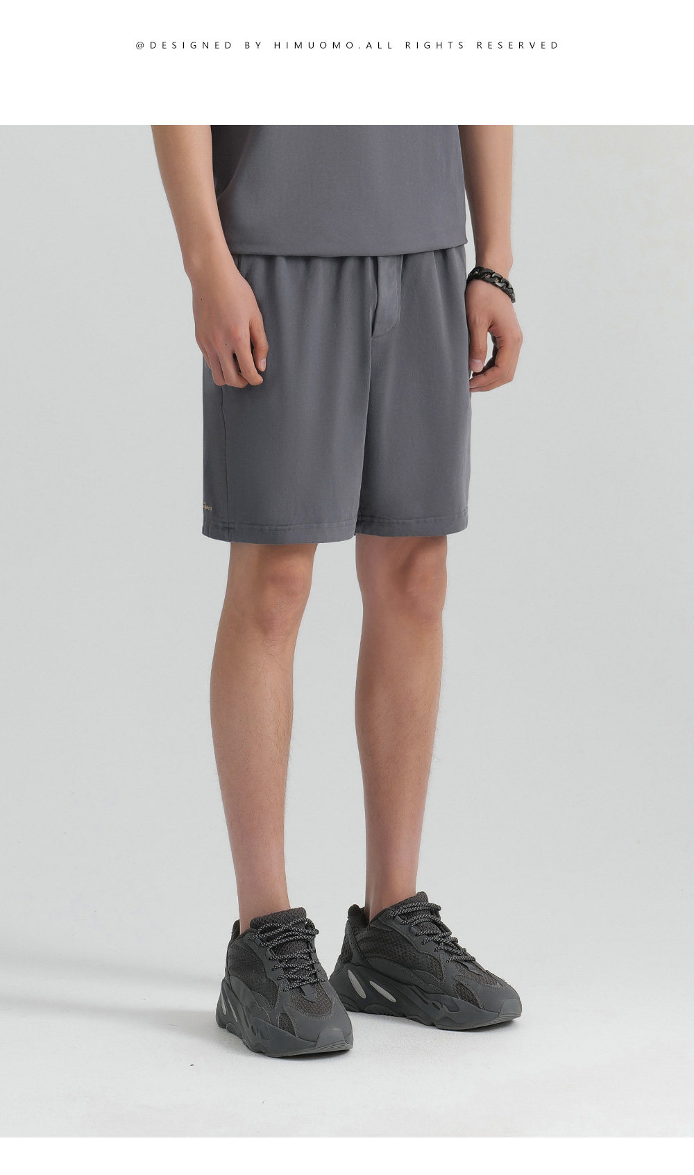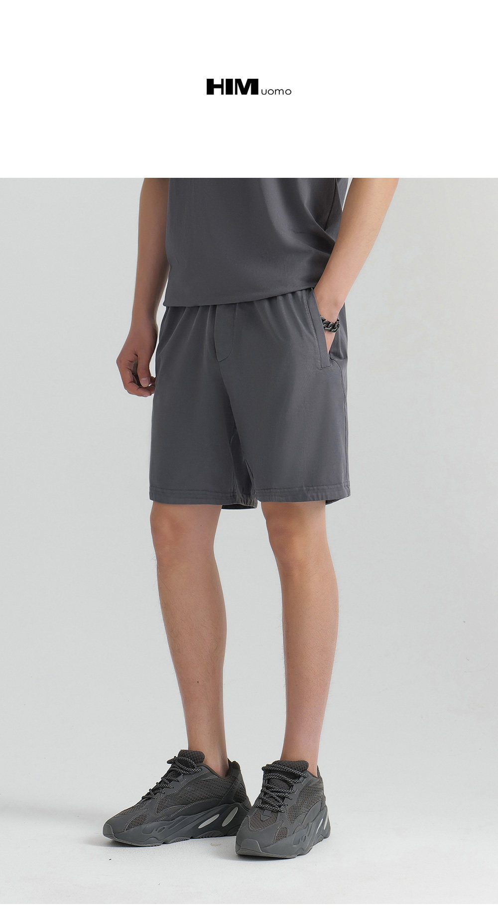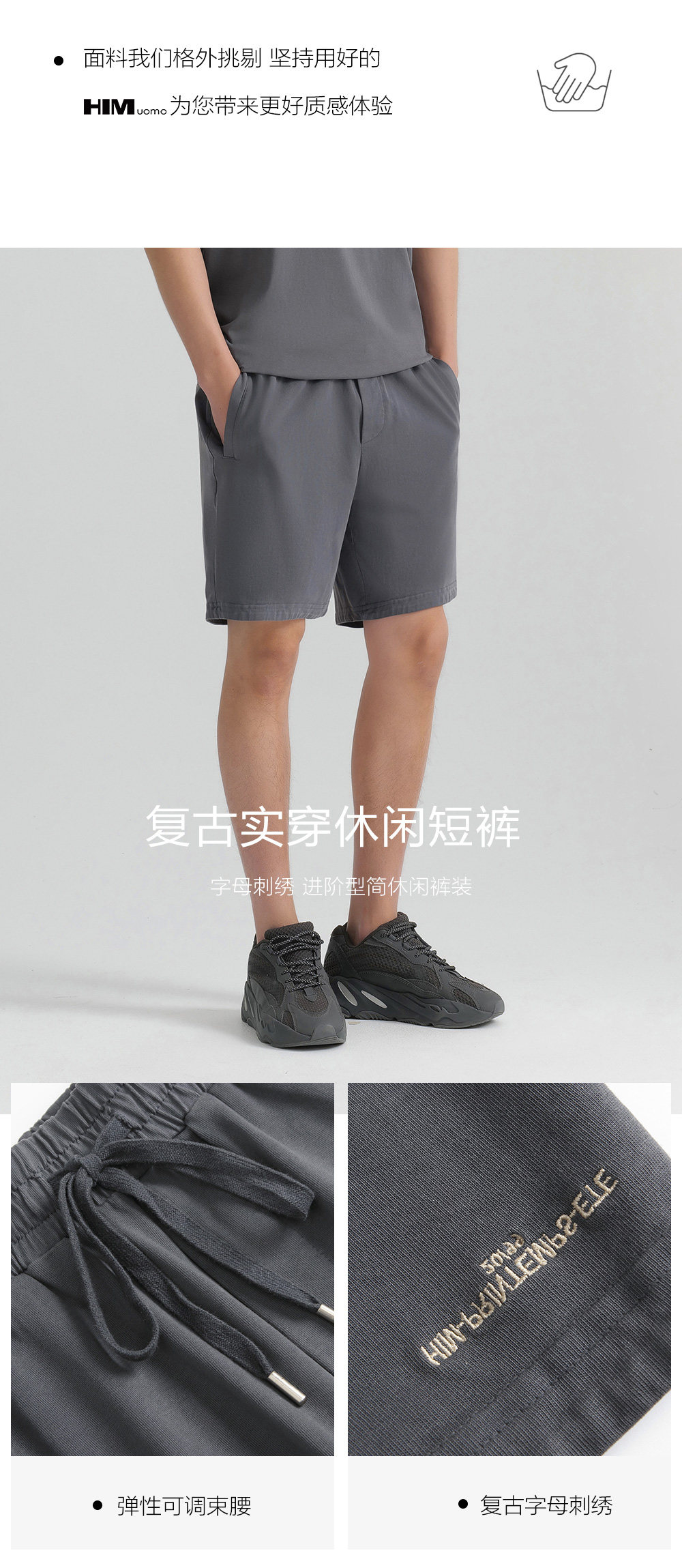 HIM漢崇 直筒运动短裤男潮流绣花休闲松紧腰微弹五分裤 2026夏季