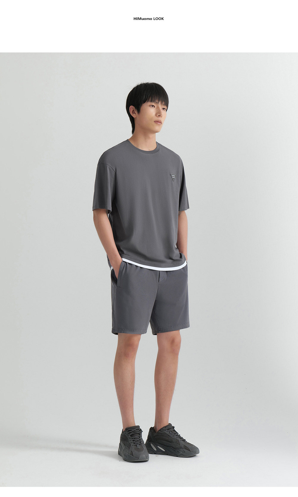 HIM漢崇 柔软休闲圆领T恤简约设计感压花舒适短袖上衣 2026夏季