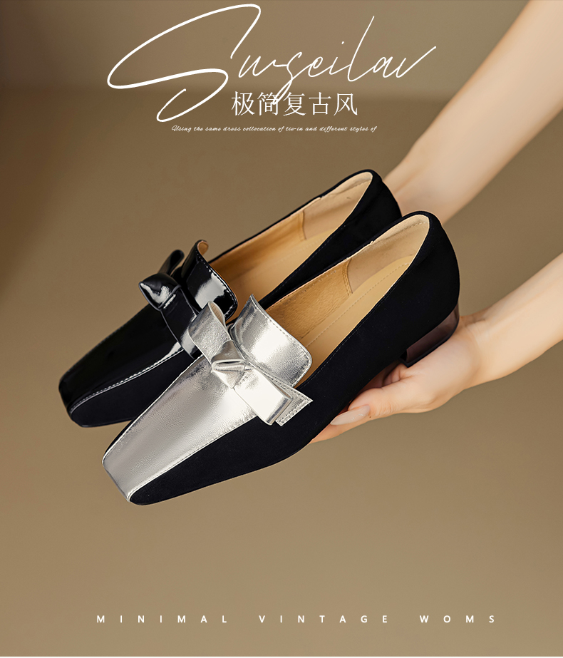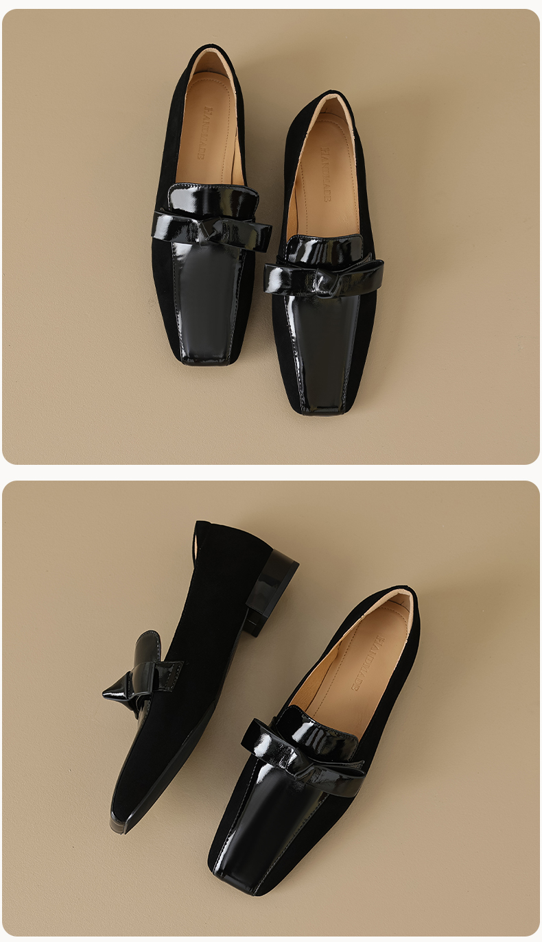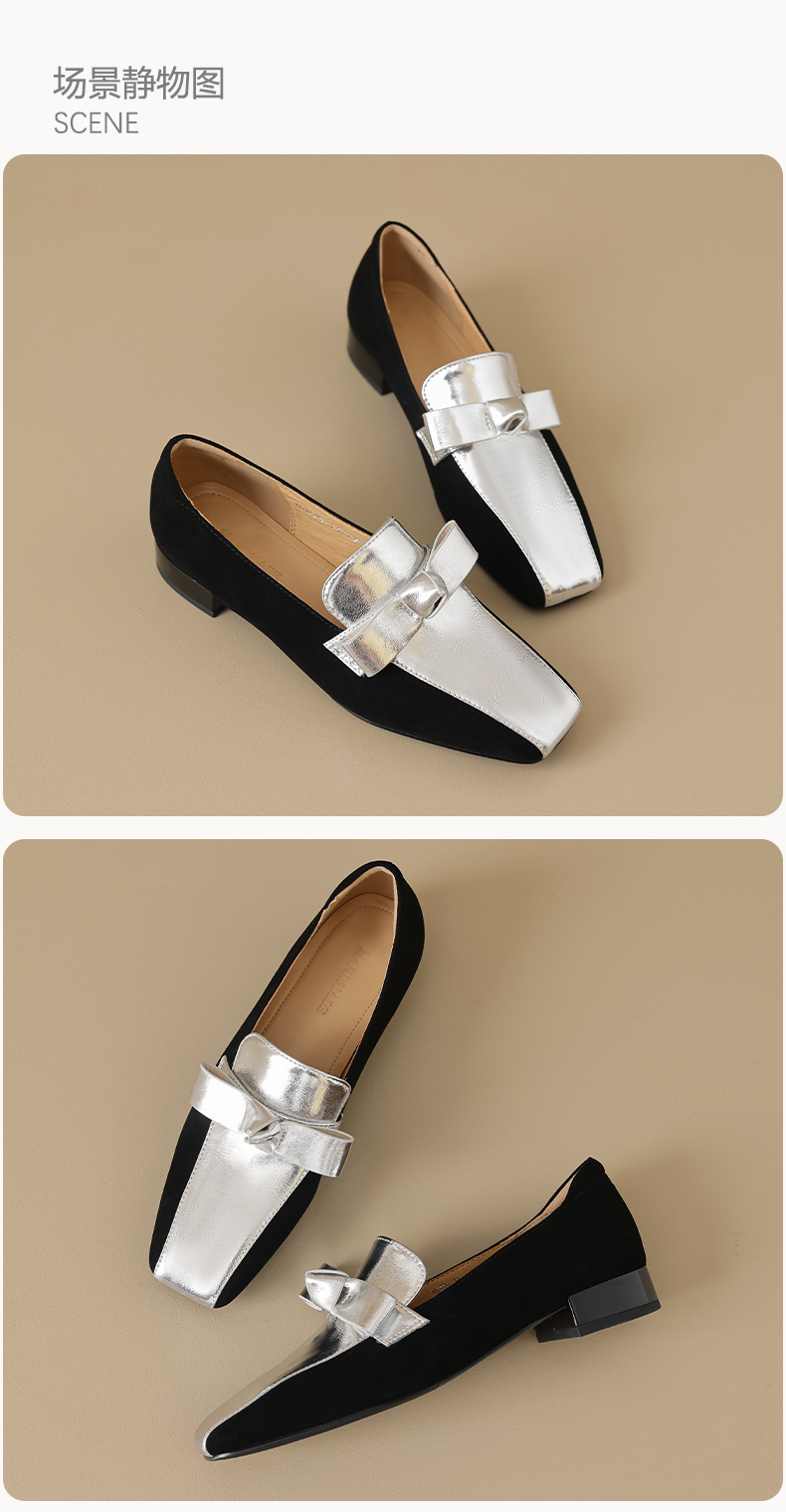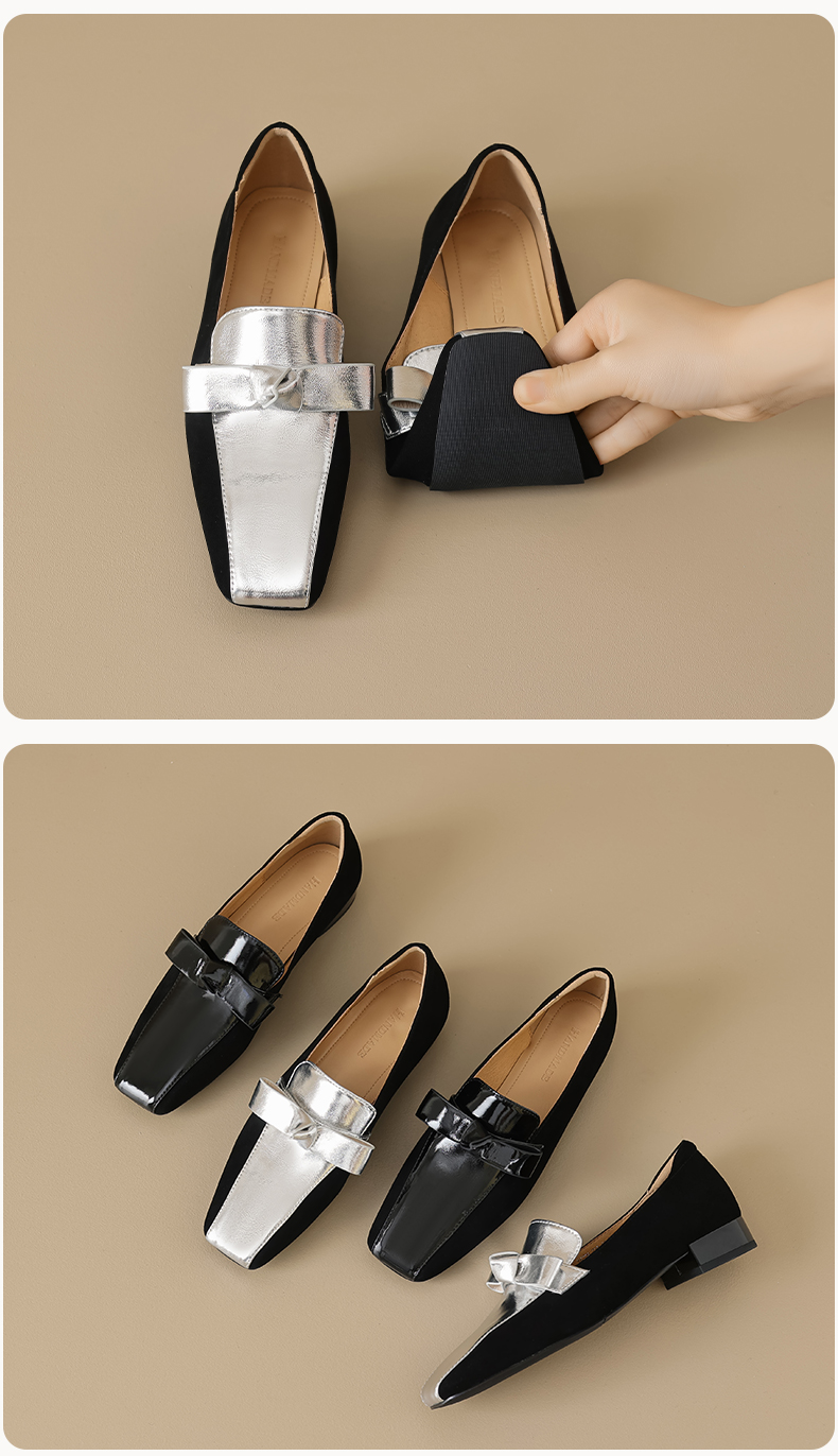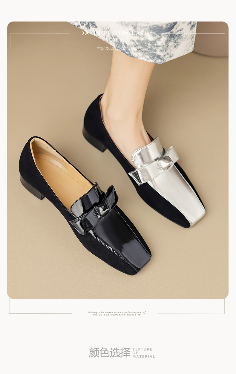 法式简约,平头拼色蝴蝶结低跟单鞋XY6778