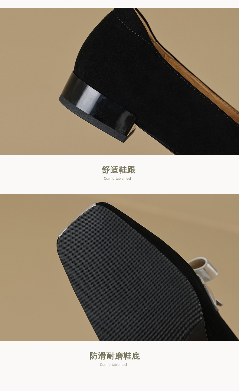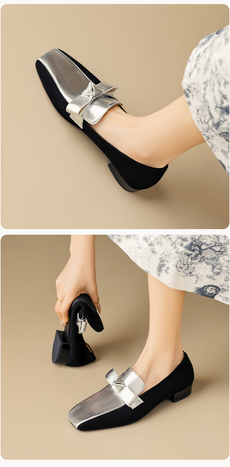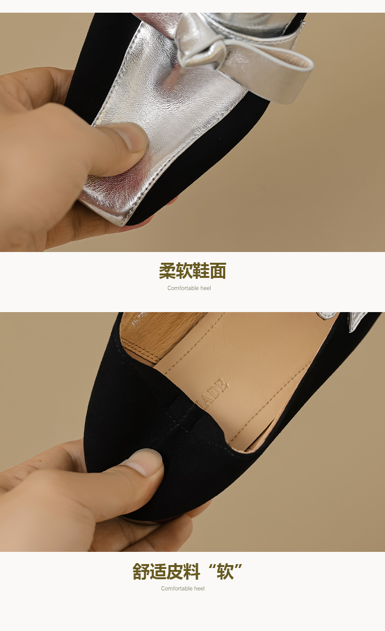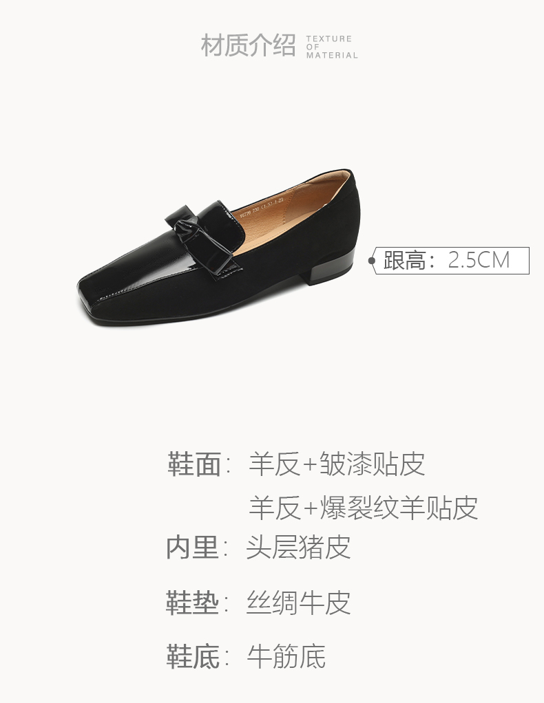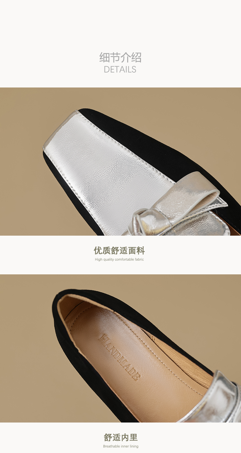 法式简约,平头拼色蝴蝶结低跟单鞋XY6778
