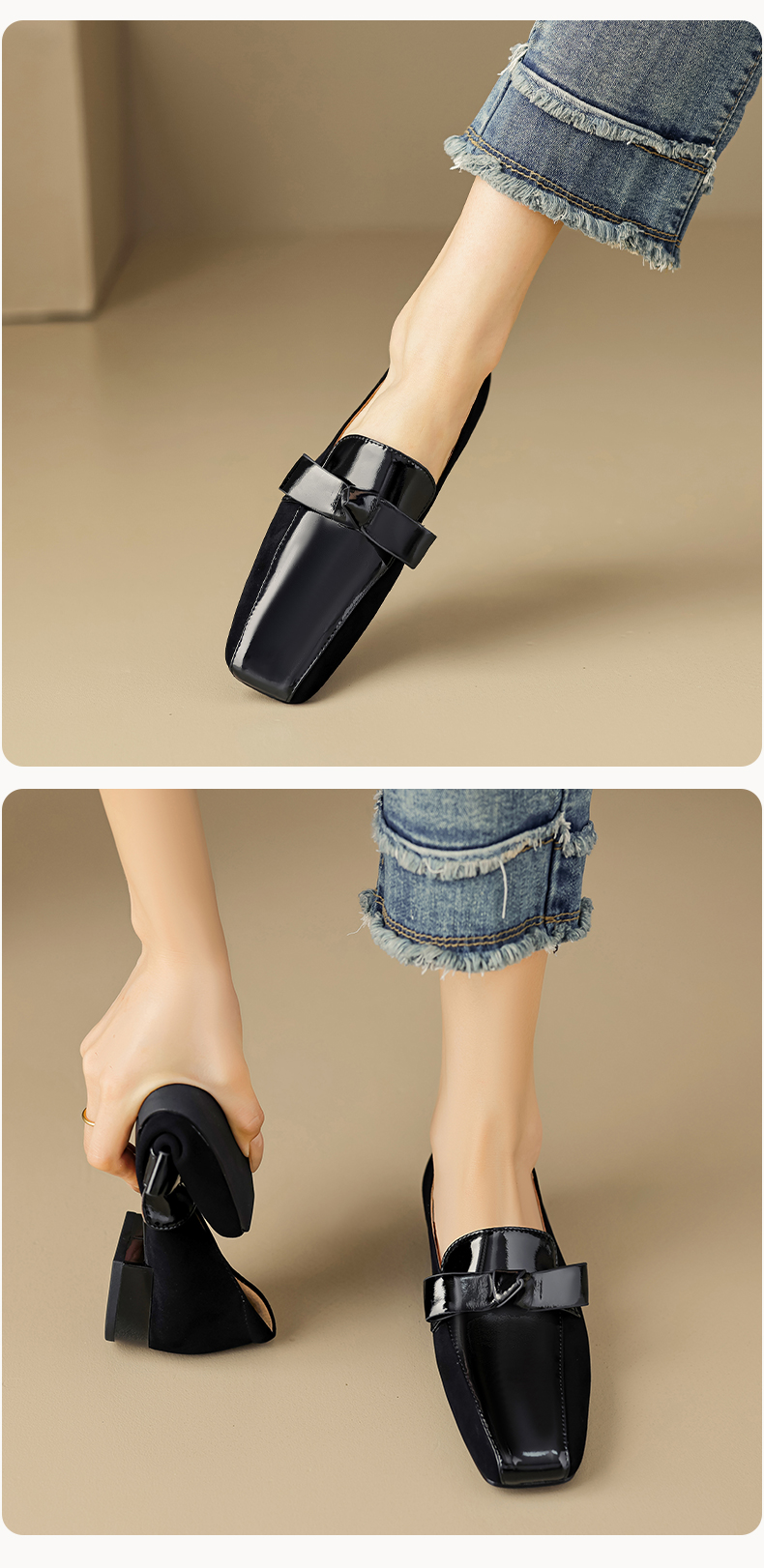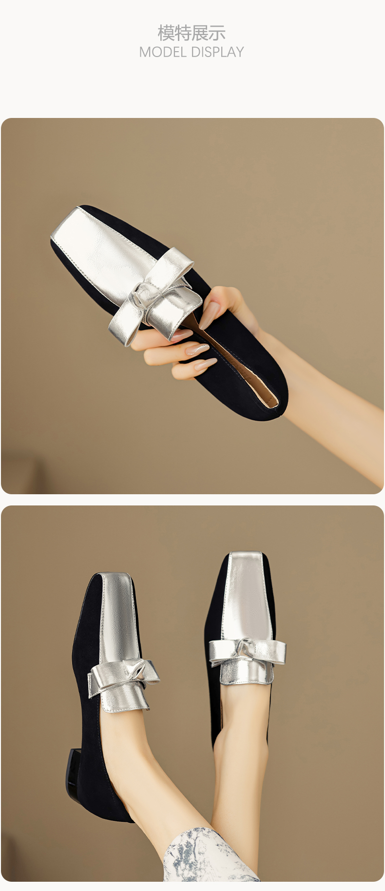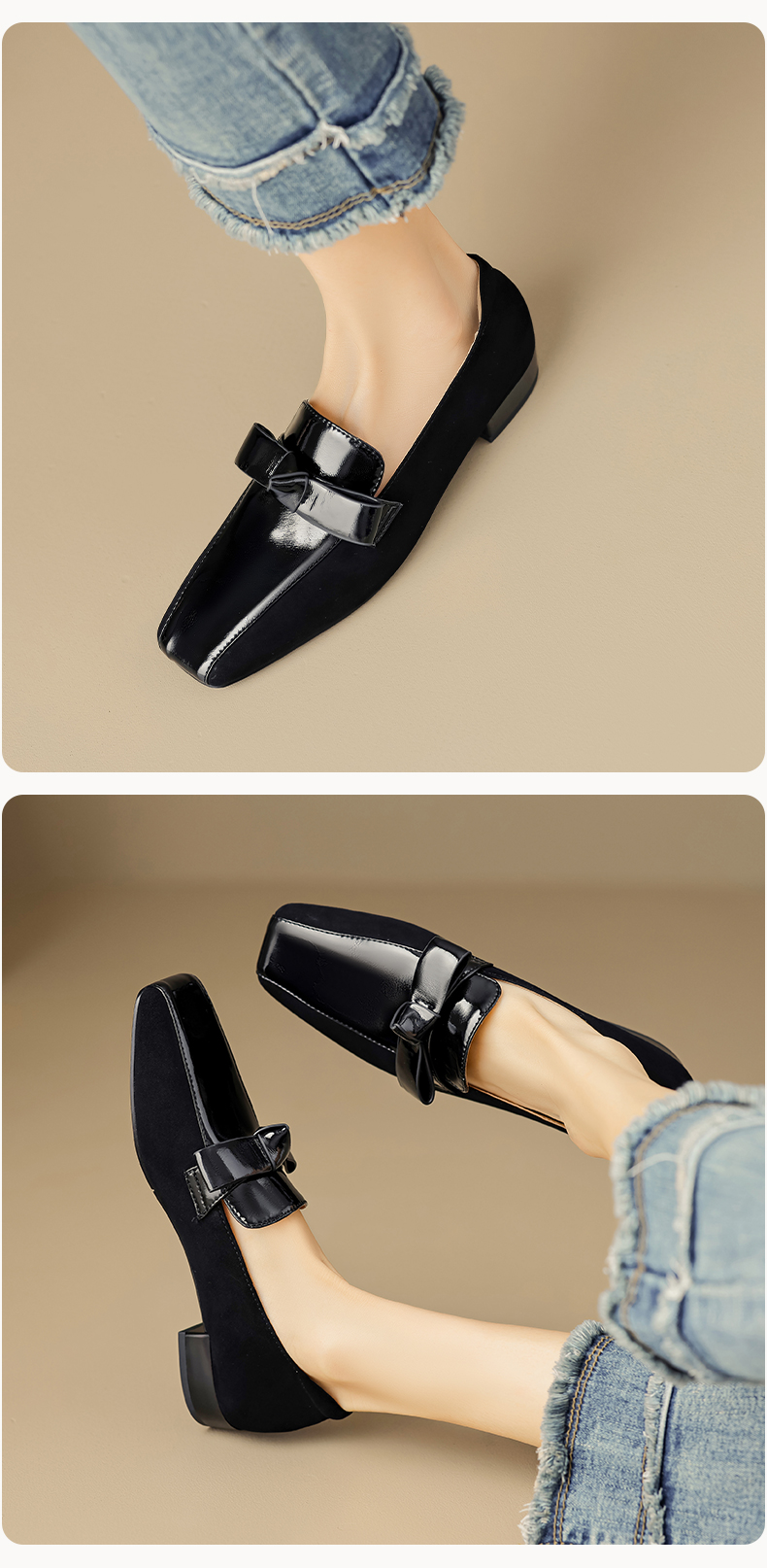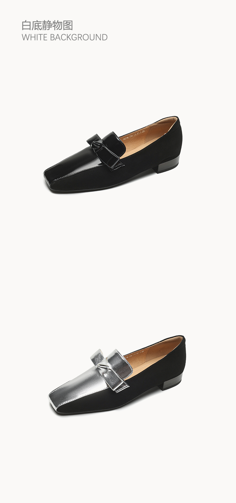 法式简约,平头拼色蝴蝶结低跟单鞋XY6778