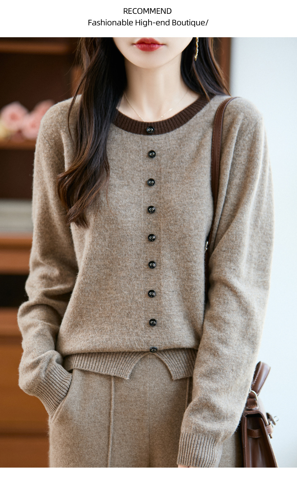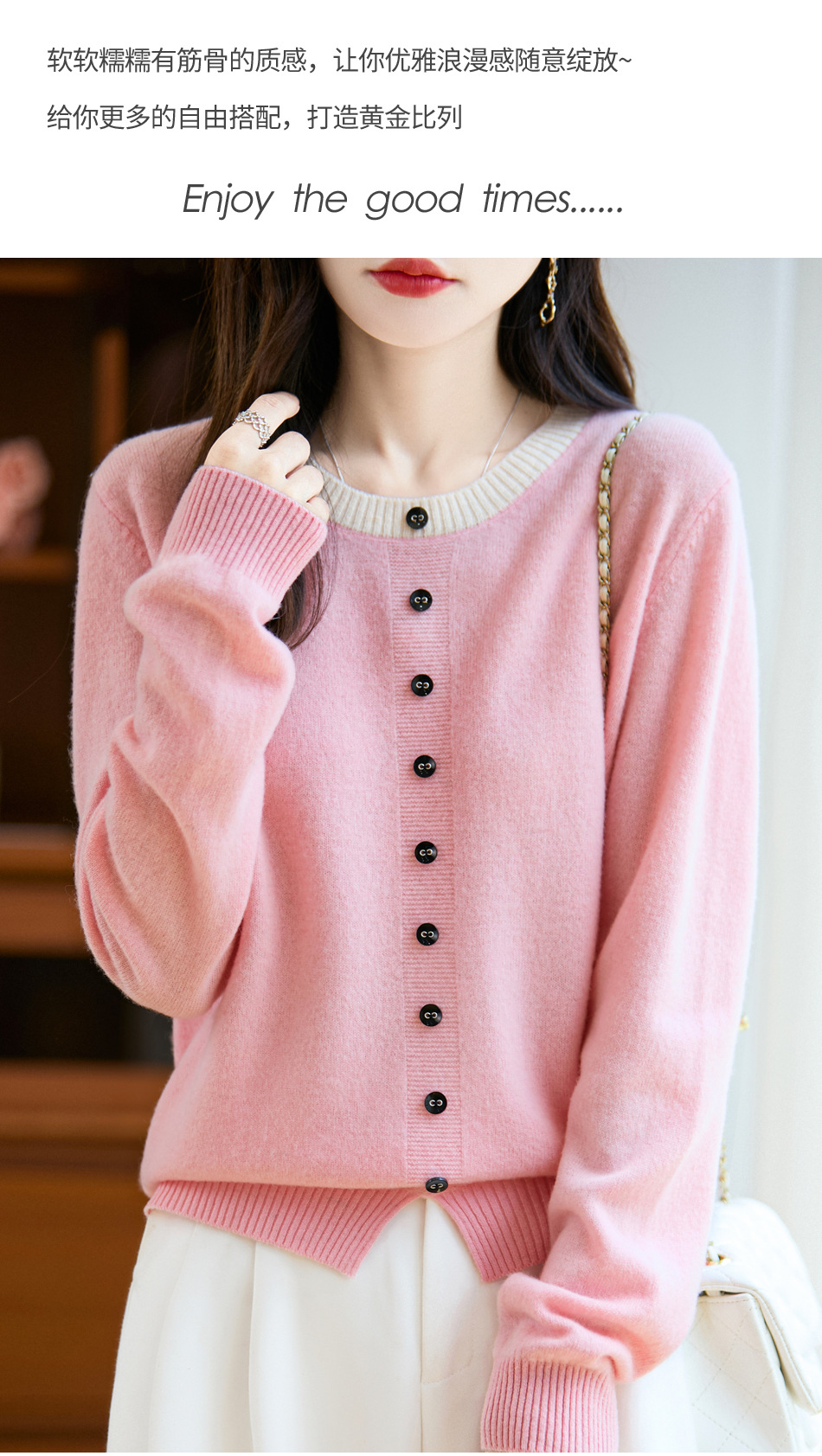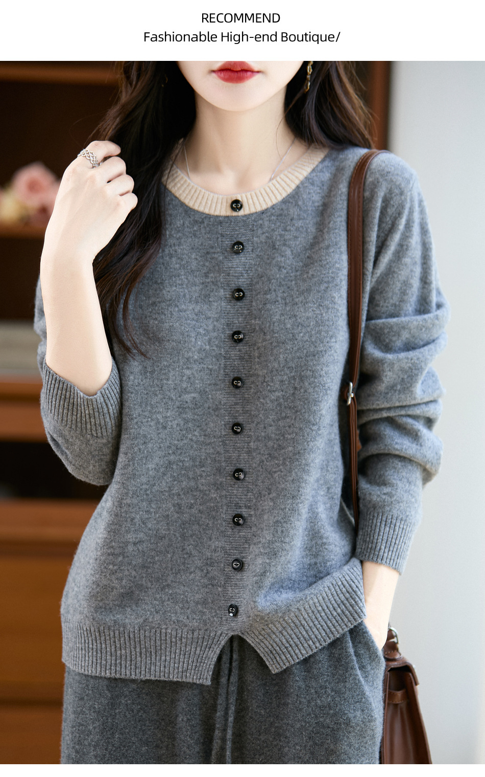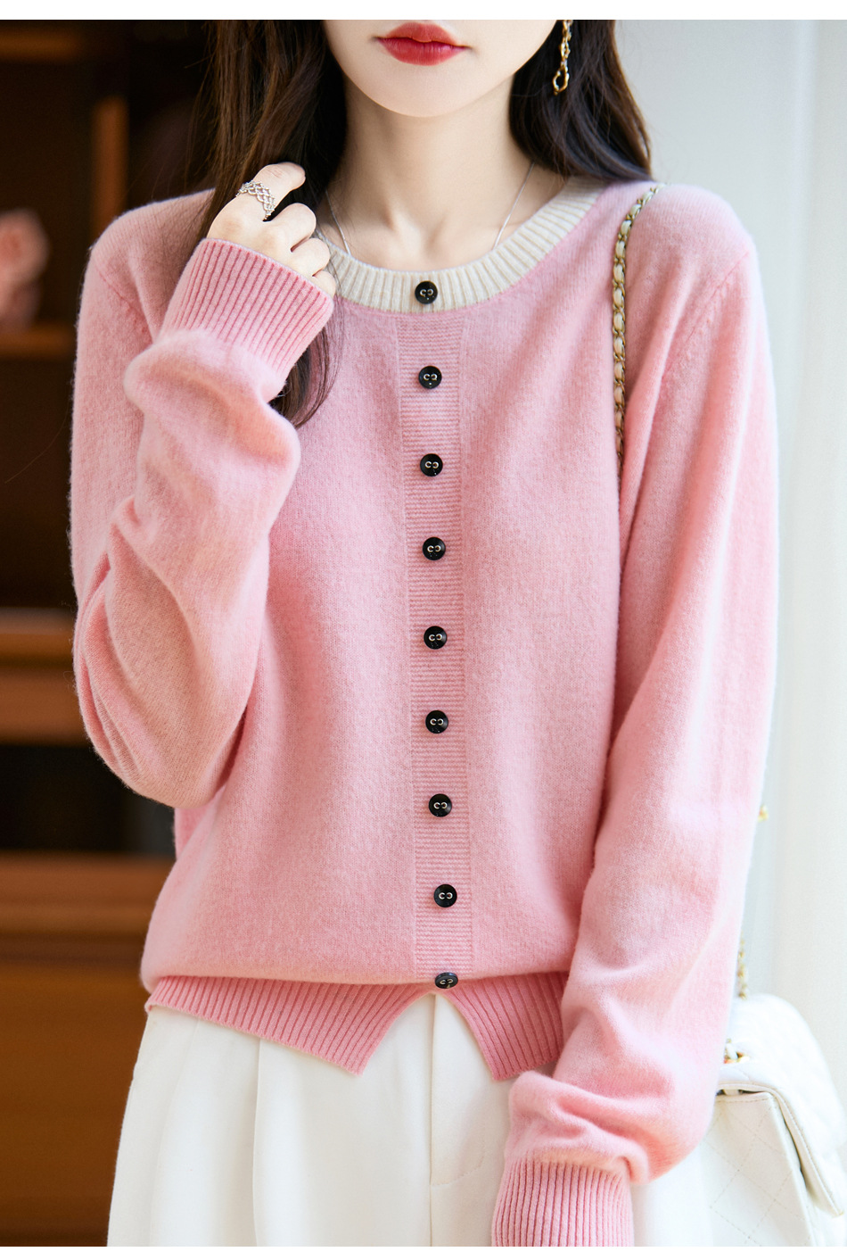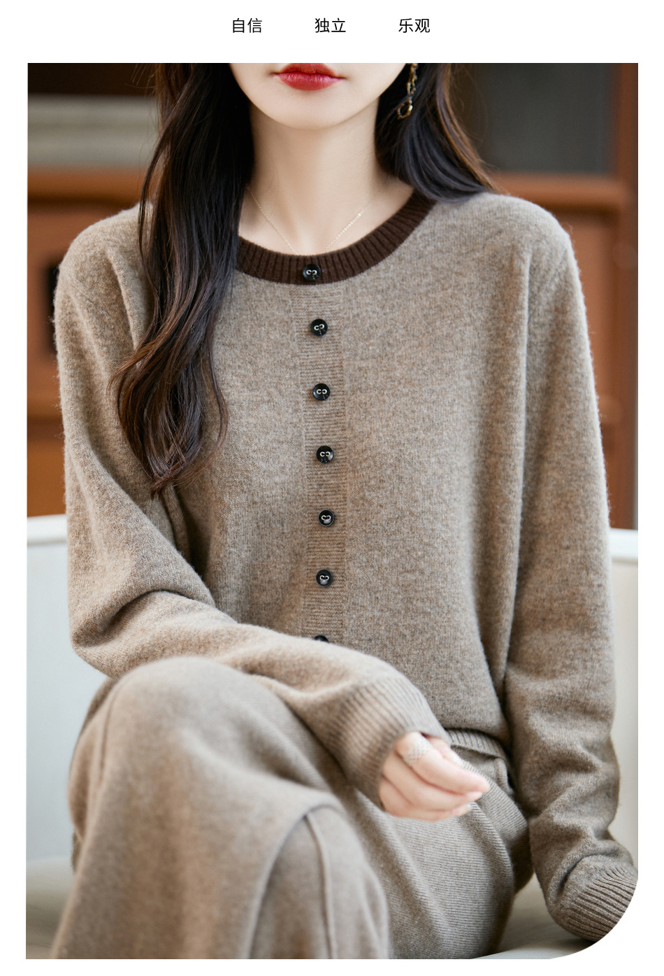百媚生 100%羊毛圆领假两件拼色套头打底针织衫毛衣M2-452