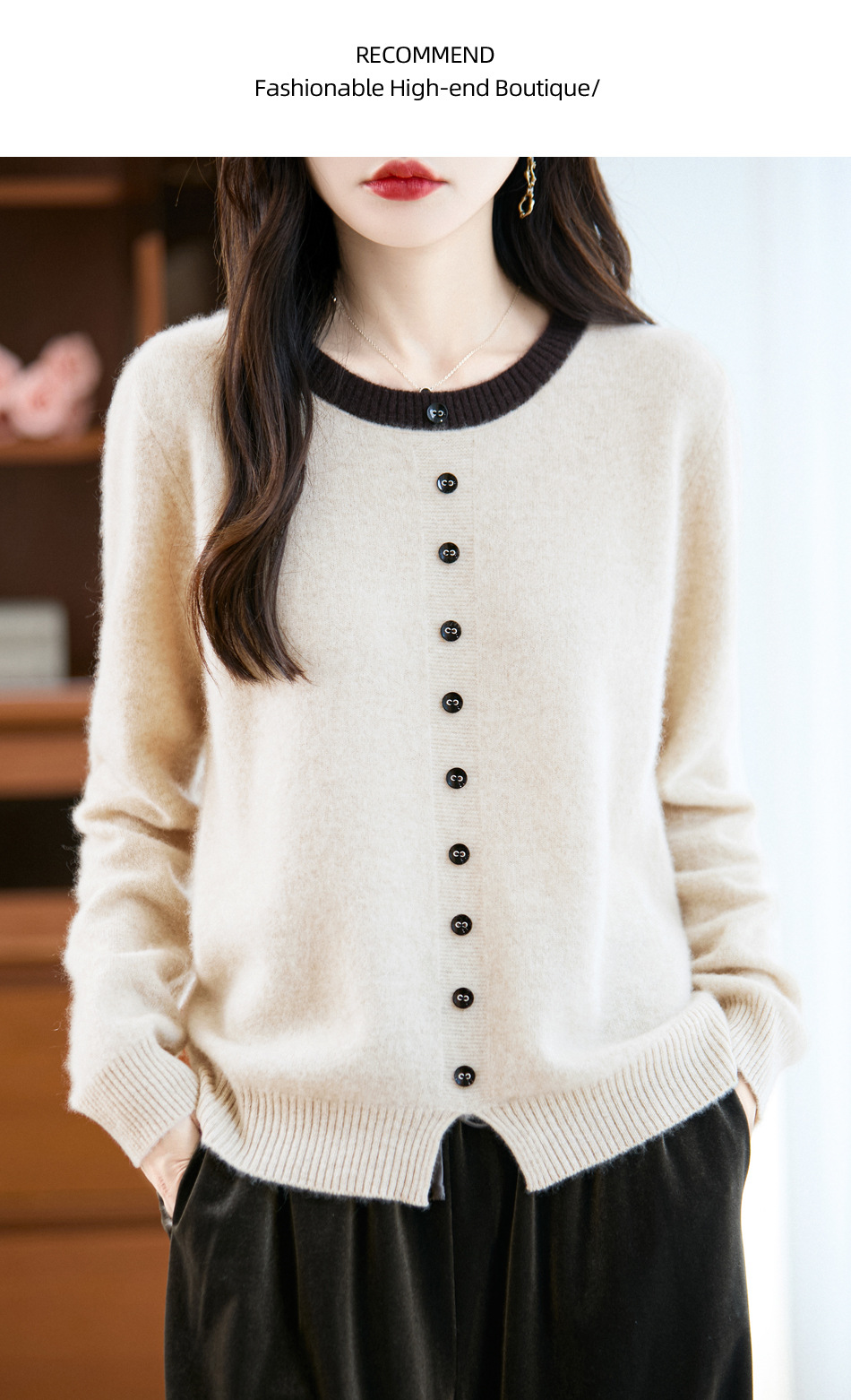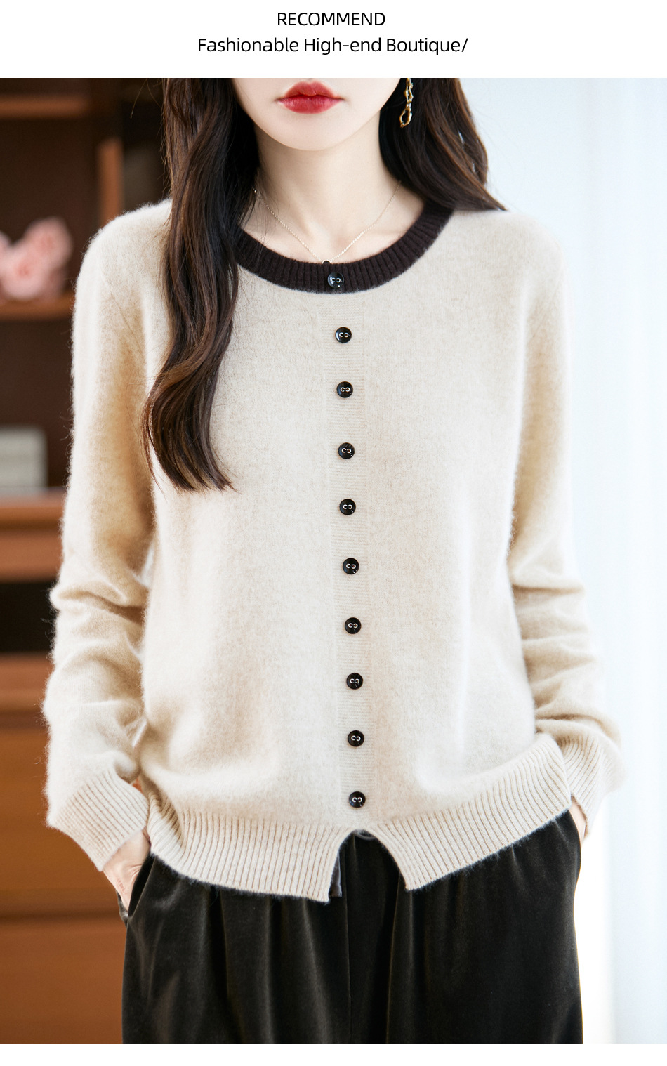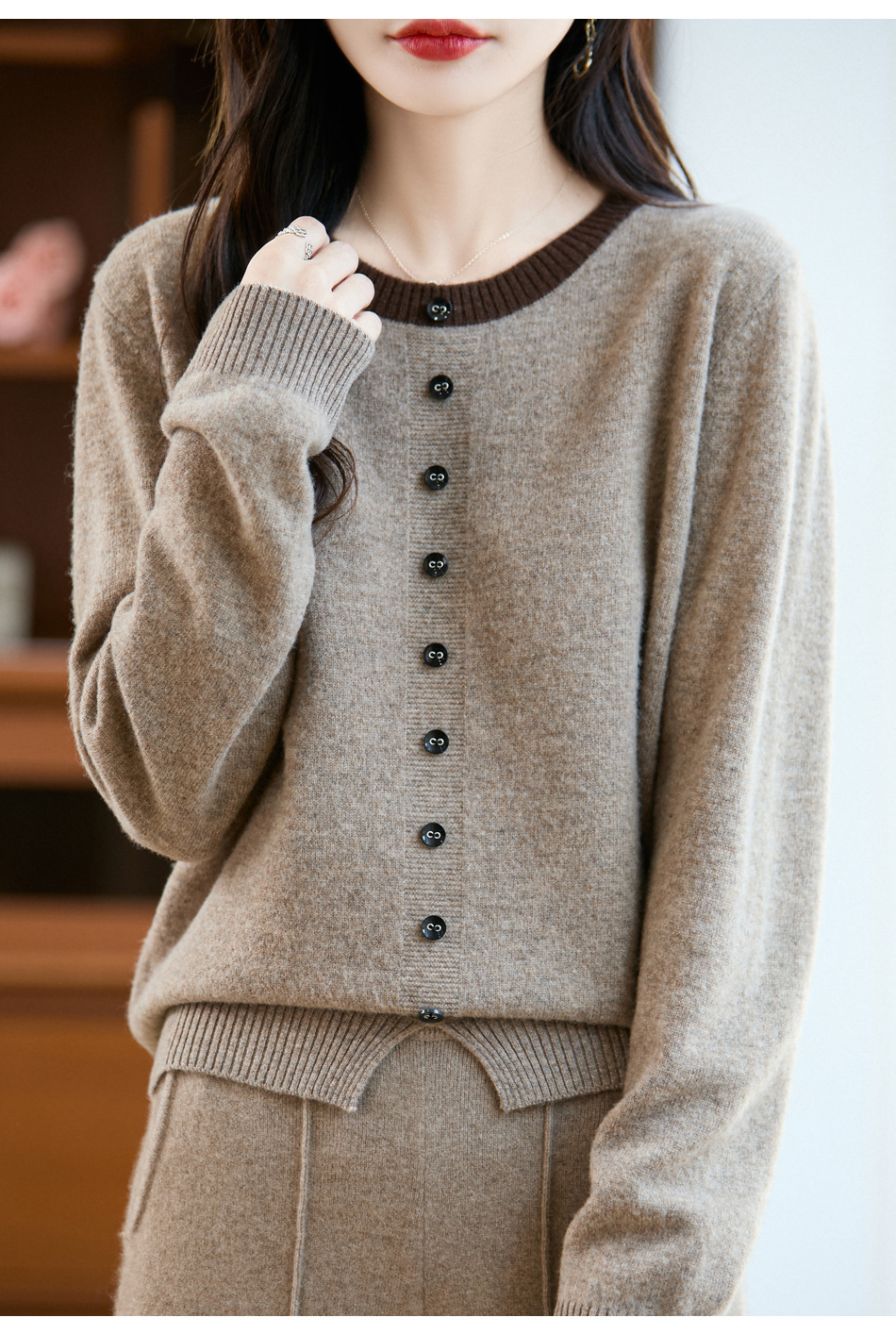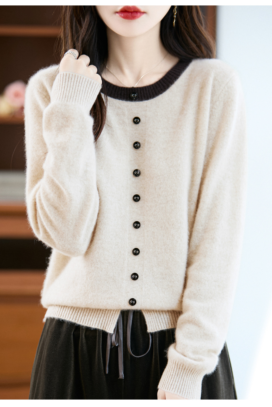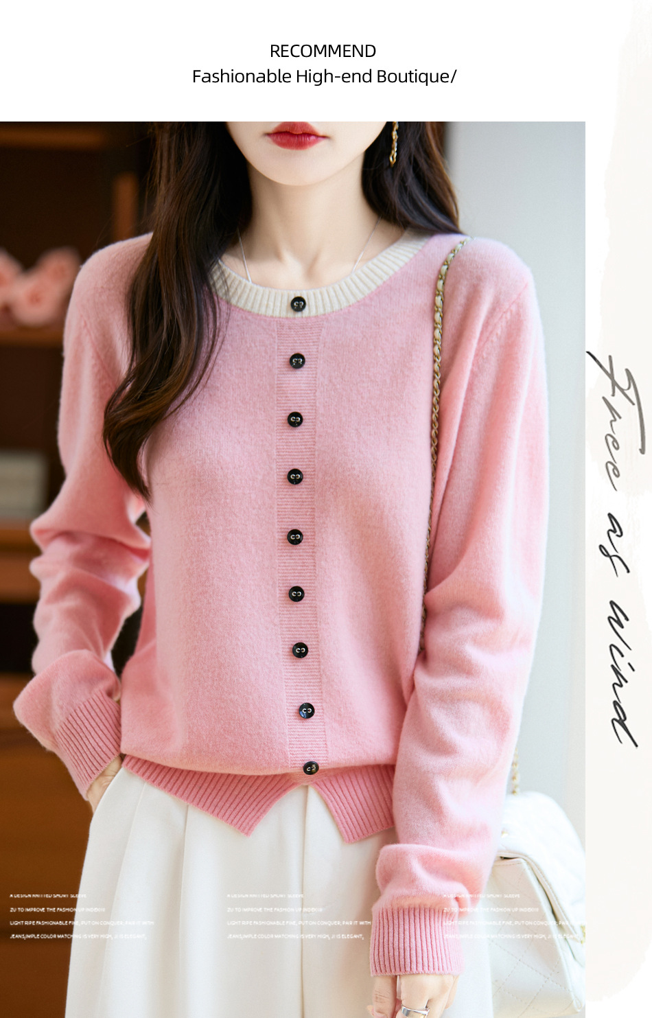 百媚生 100%羊毛圆领假两件拼色套头打底针织衫毛衣M2-452