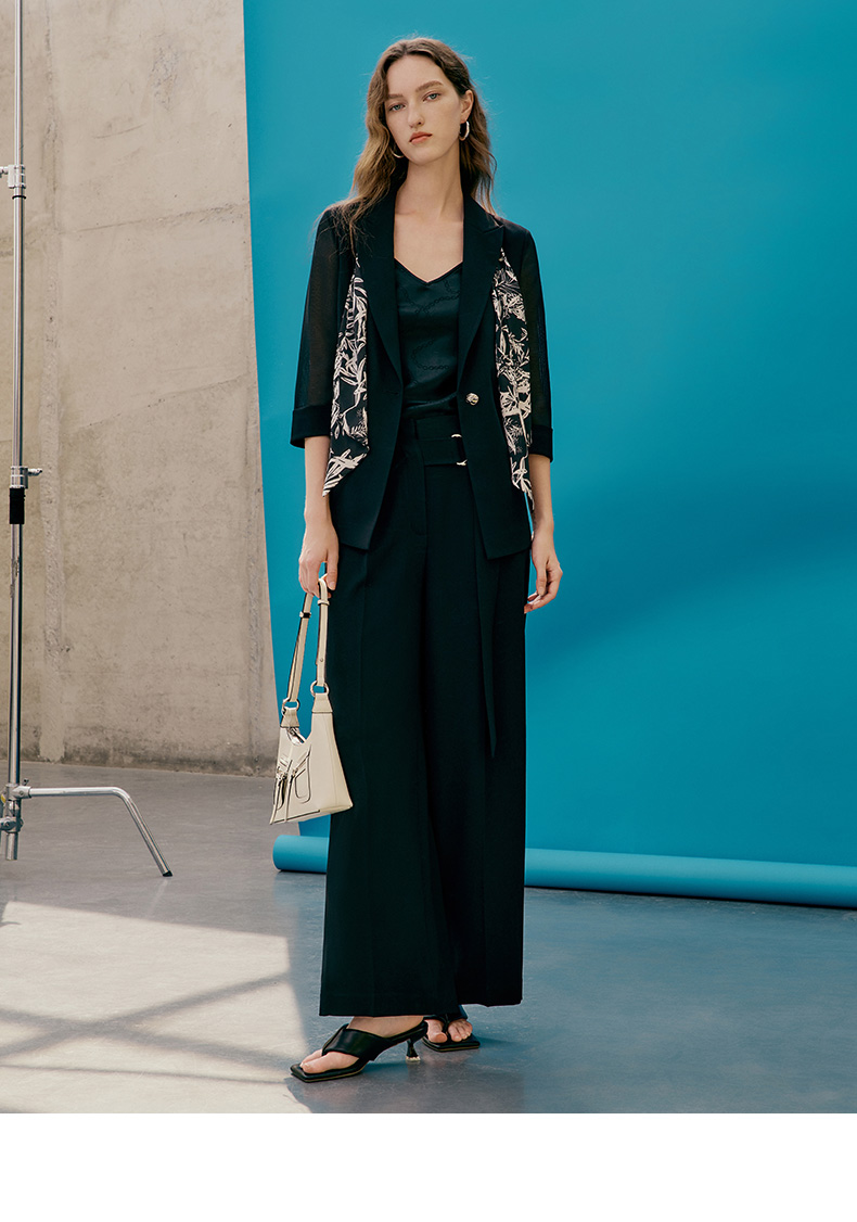 EITIE爱特爱女装夏季新品V领七分荷叶袖简约纯色衫上衣薄5713435