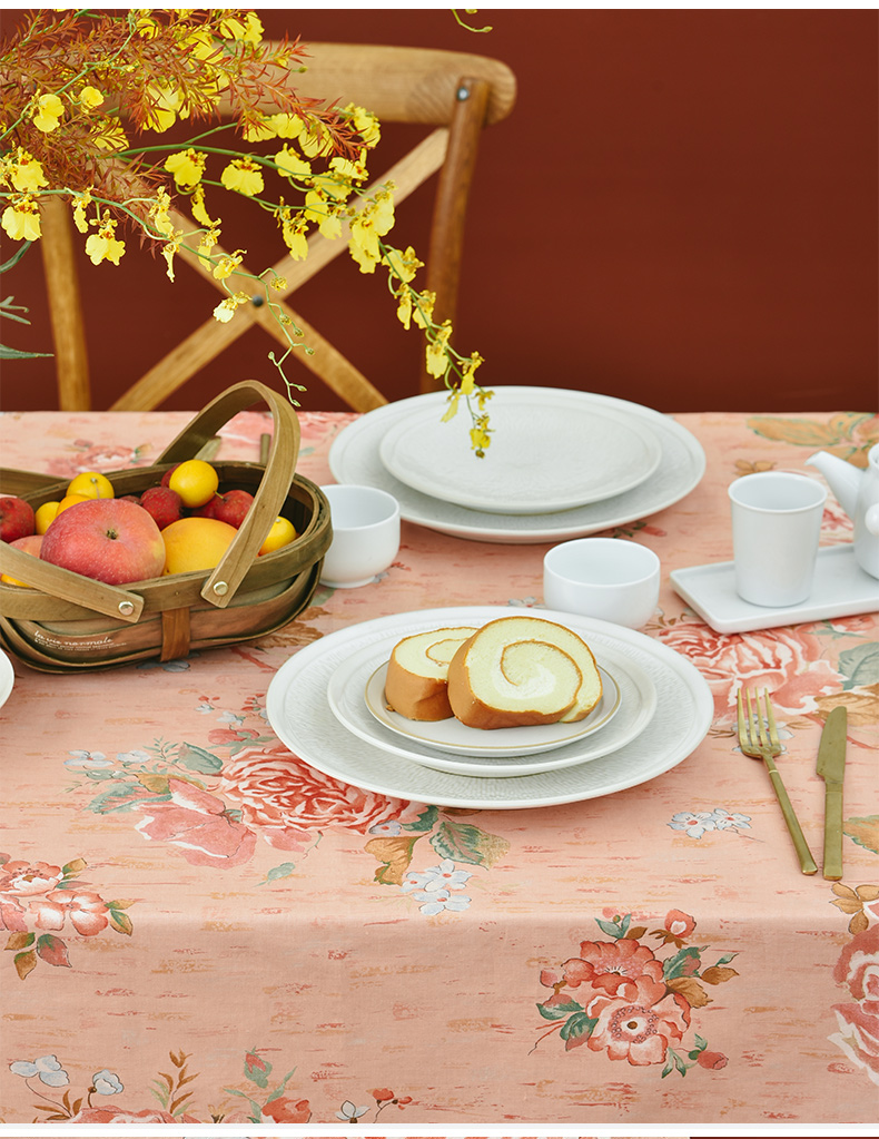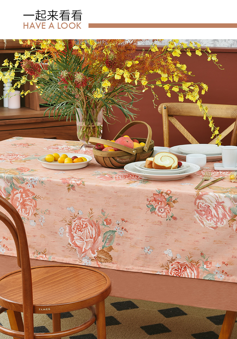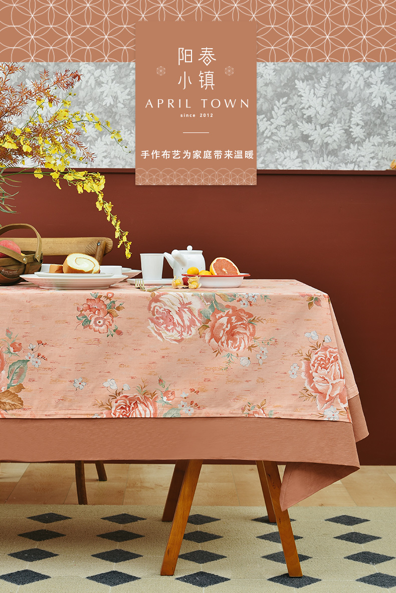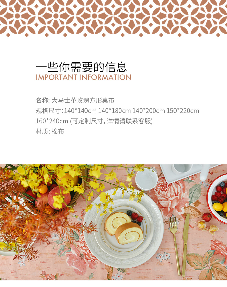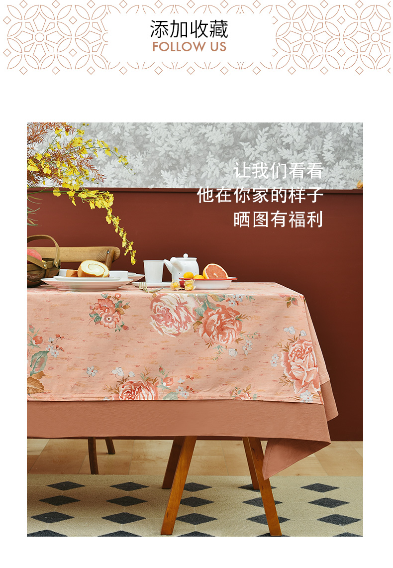 大马士革玫瑰方桌布红色喜庆新年桌布