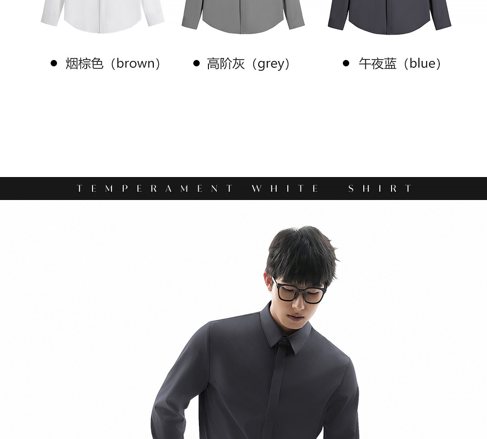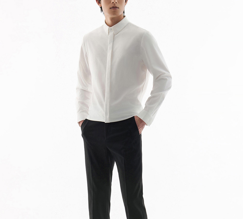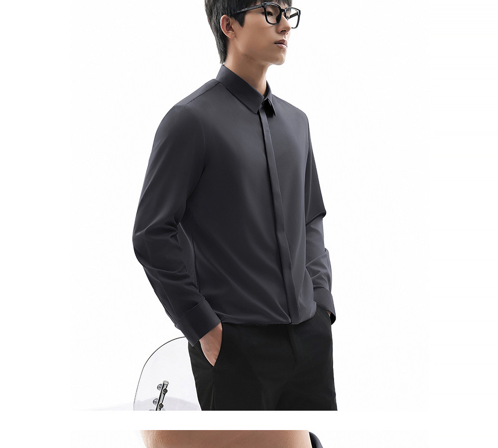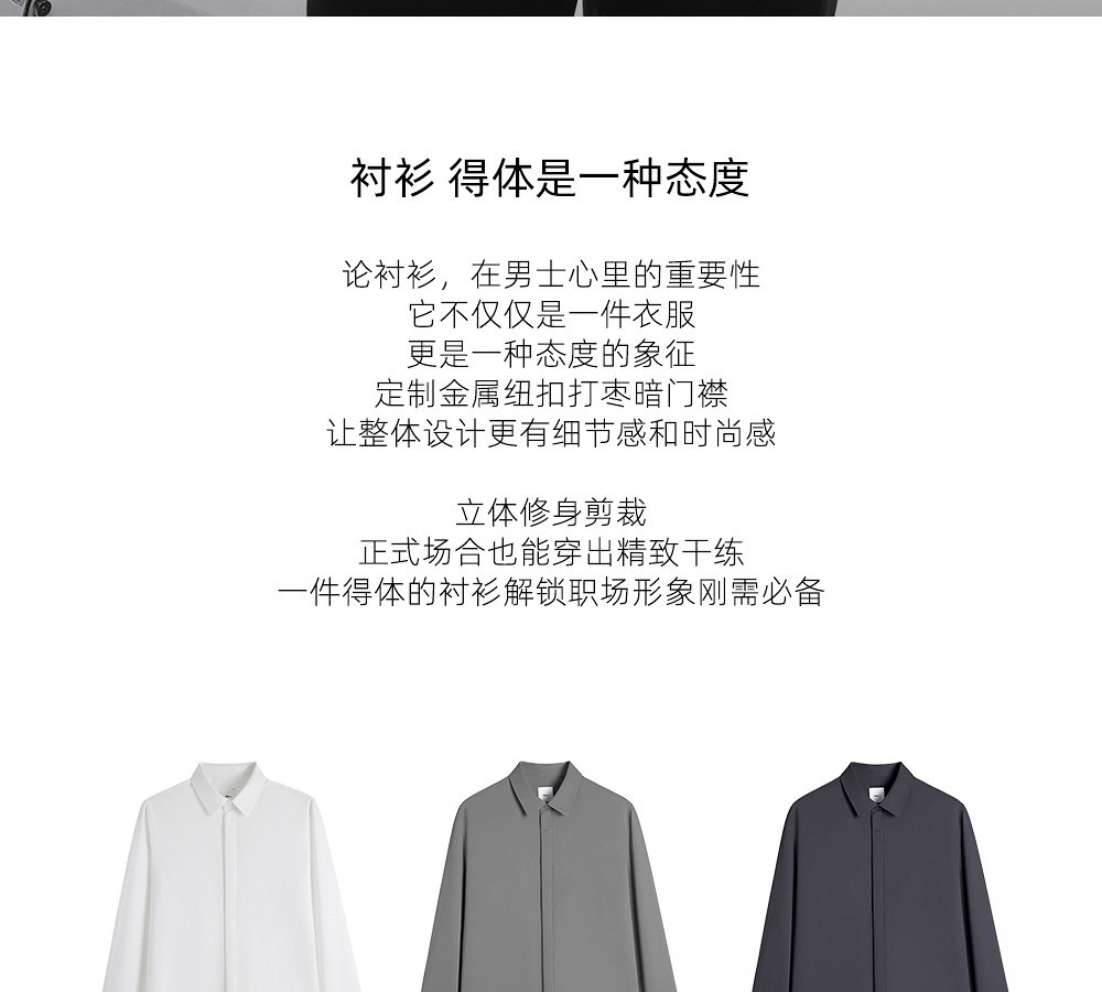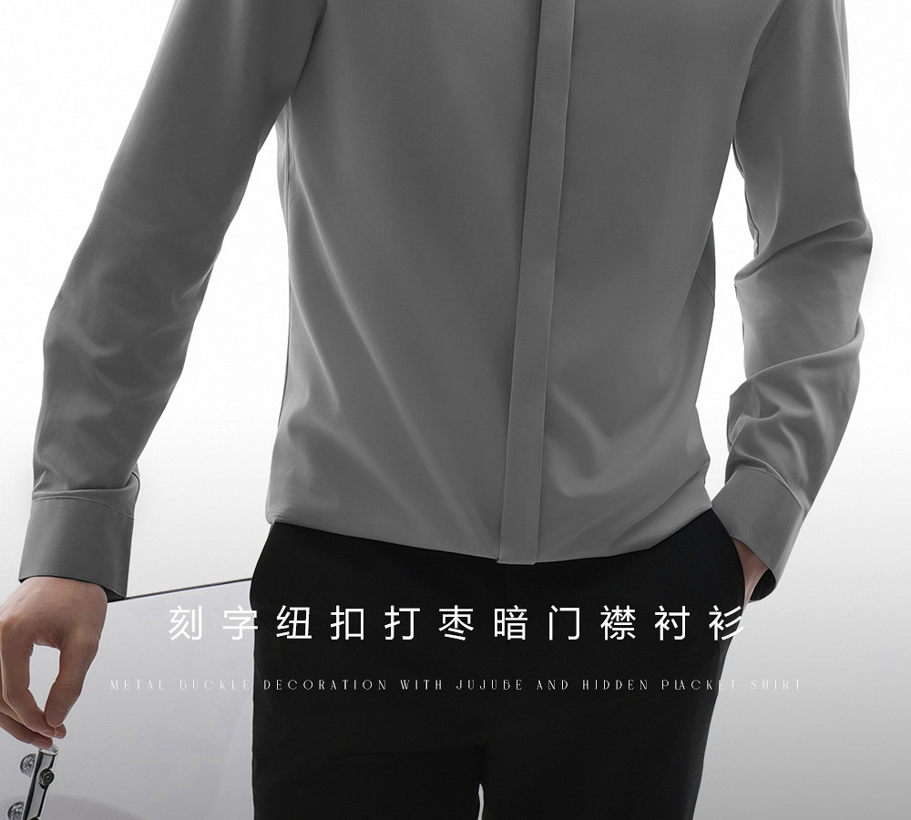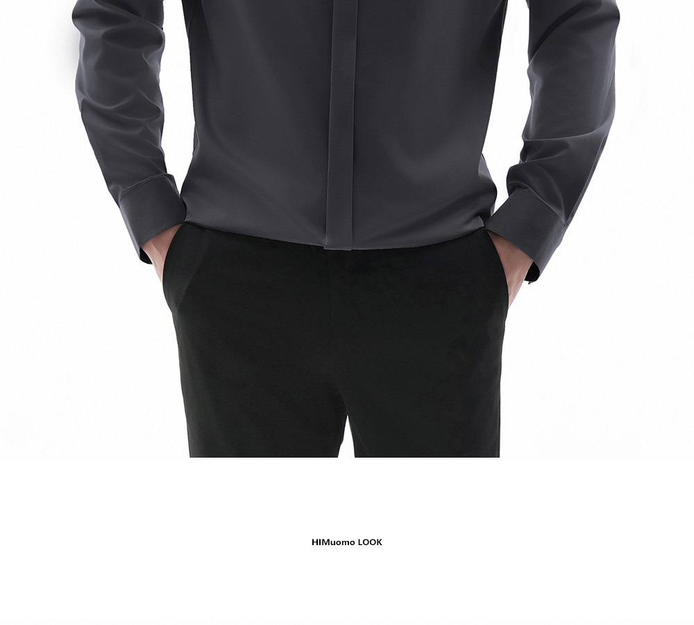 HIM漢崇 时尚经典暗钮门襟职场商务正装修身长袖衬衫男 2025秋季