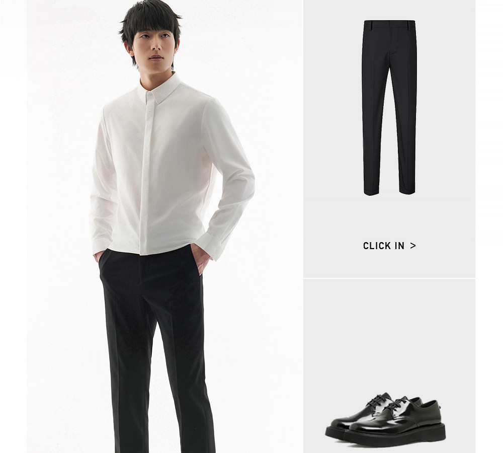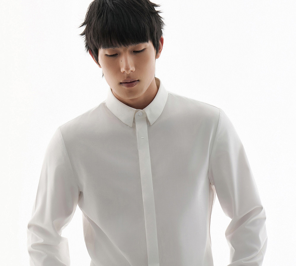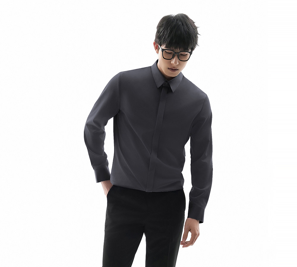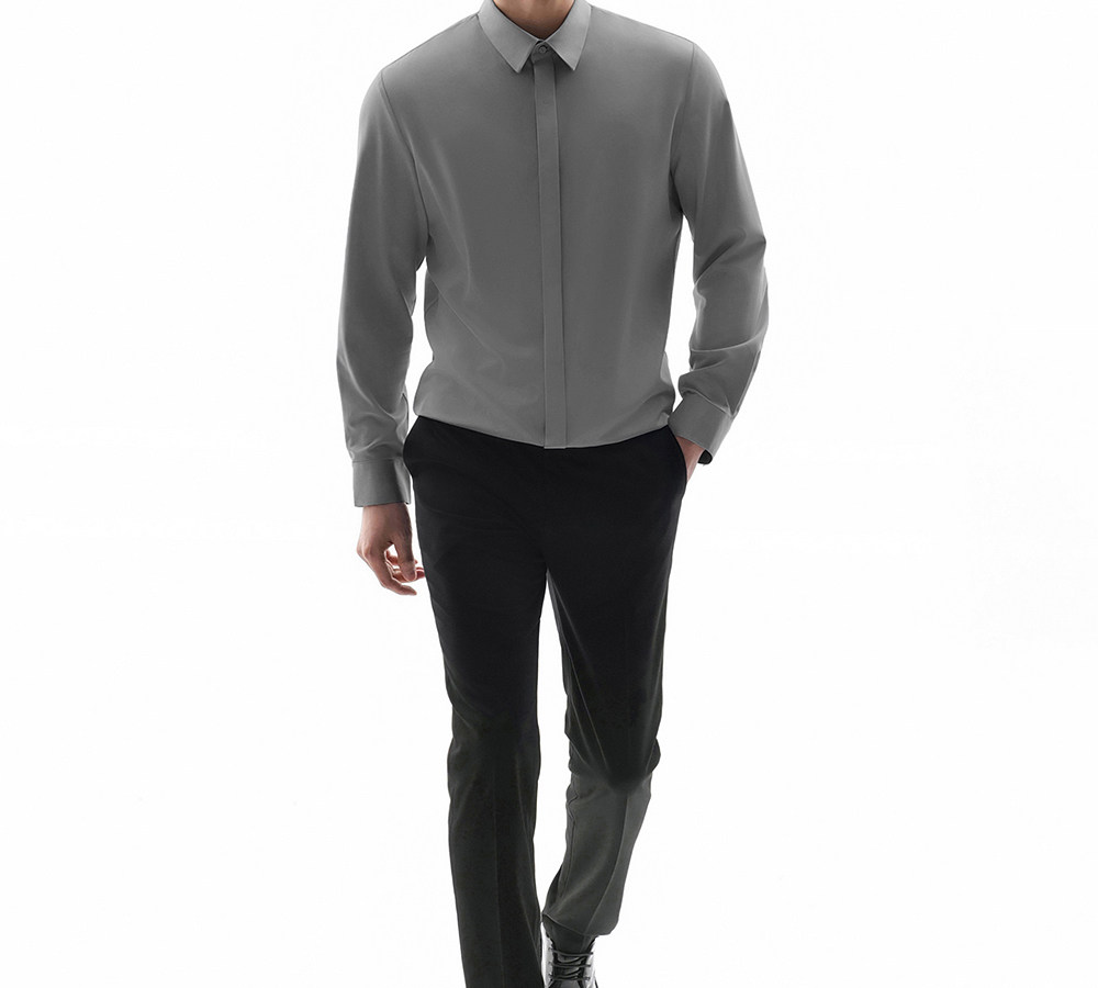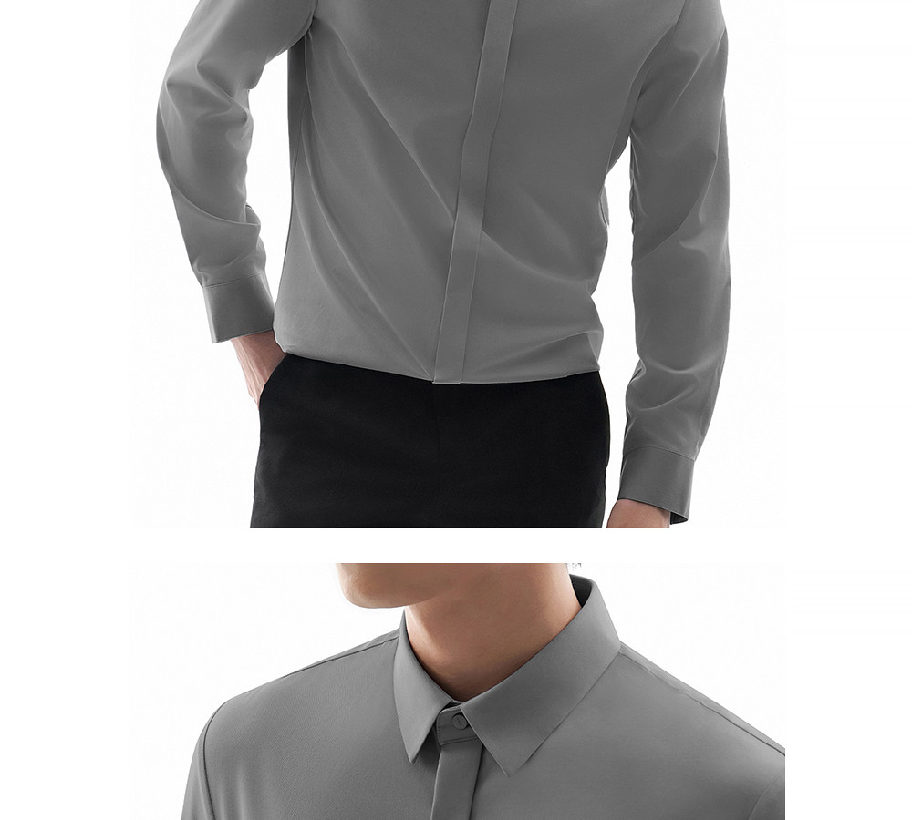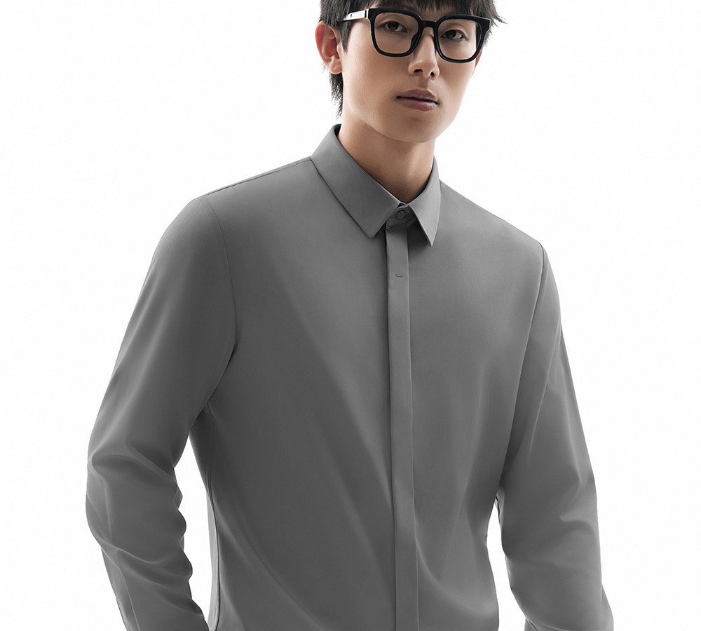HIM漢崇 时尚经典暗钮门襟职场商务正装修身长袖衬衫男 2025秋季