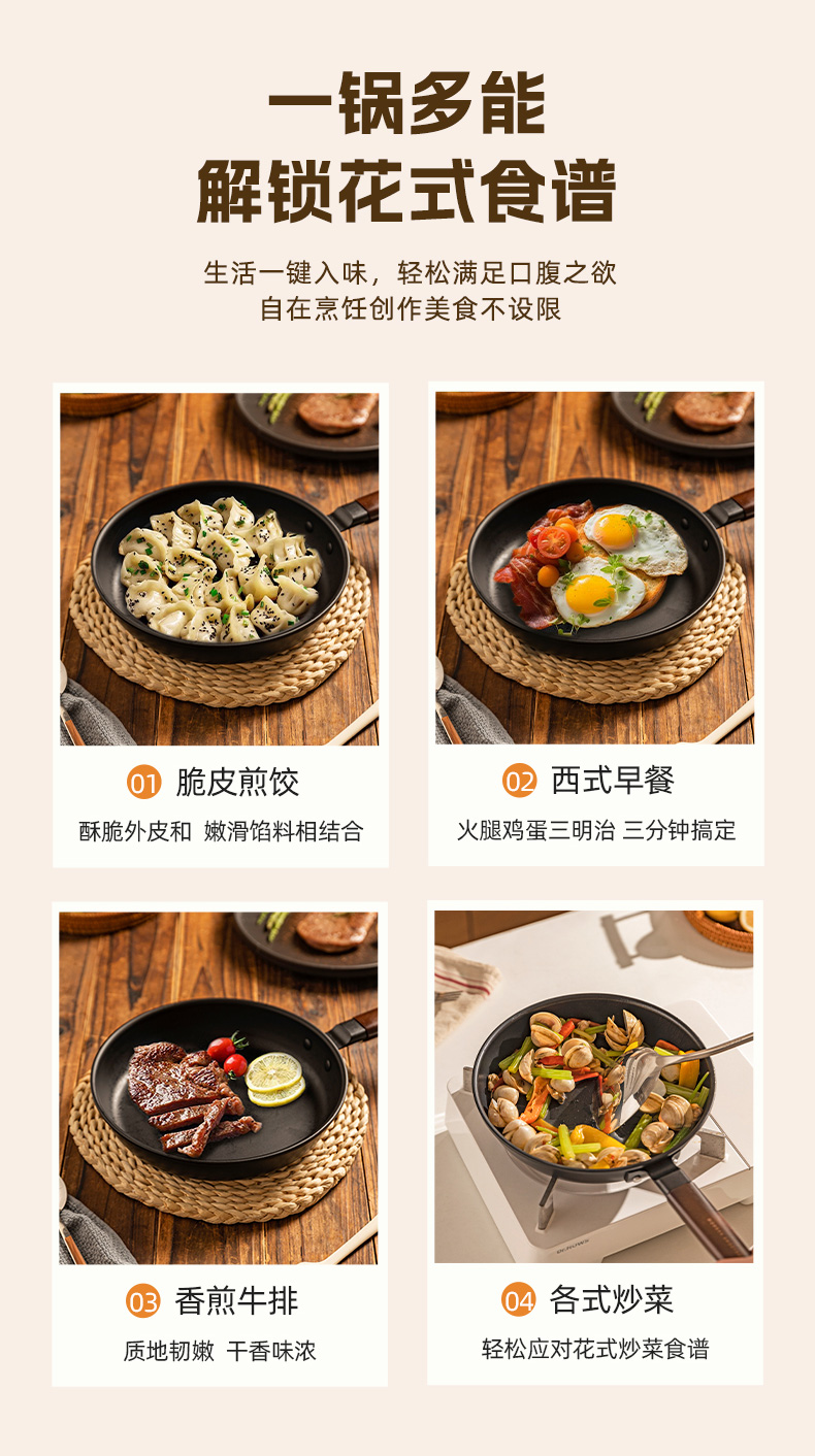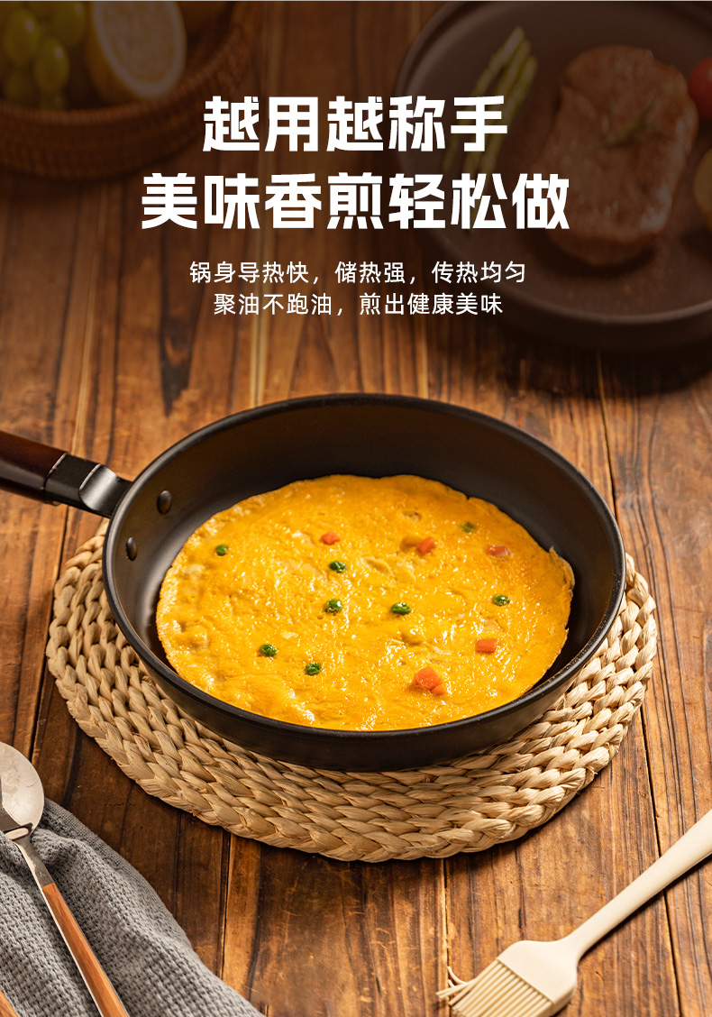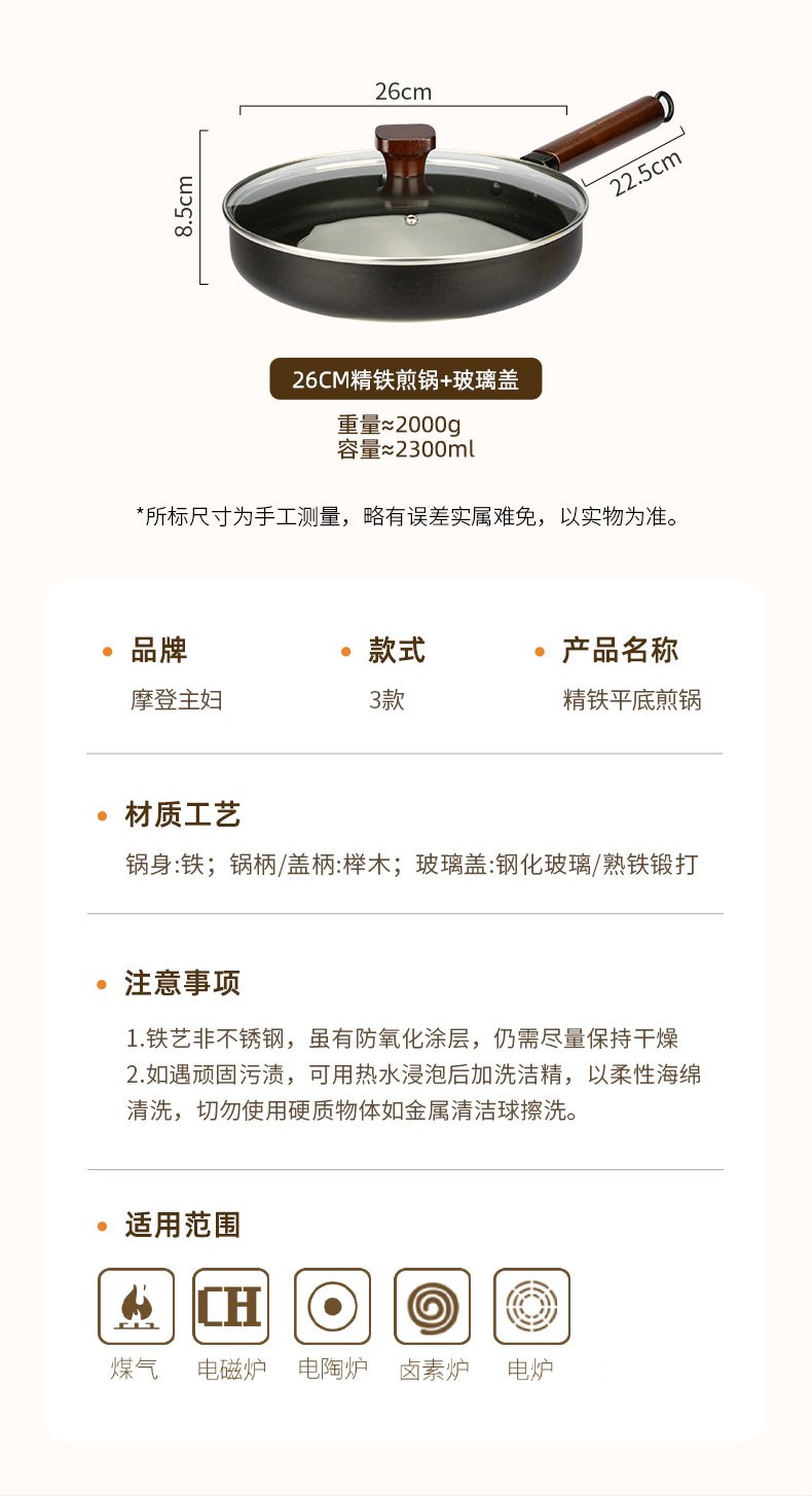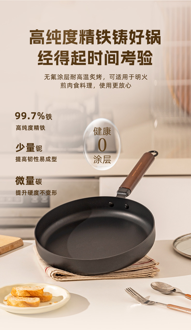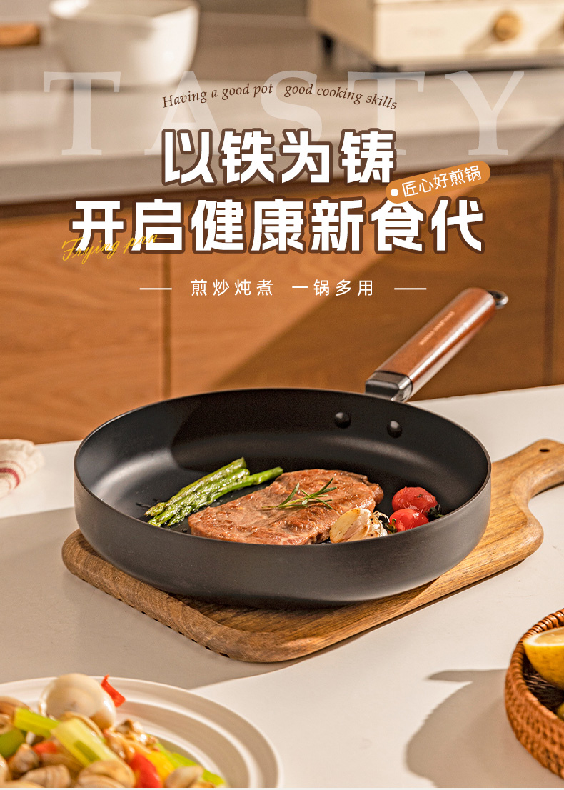 摩登主妇平底锅家用无涂层铁煎锅铁锅炒菜锅煎饼煎蛋神器牛排煎锅