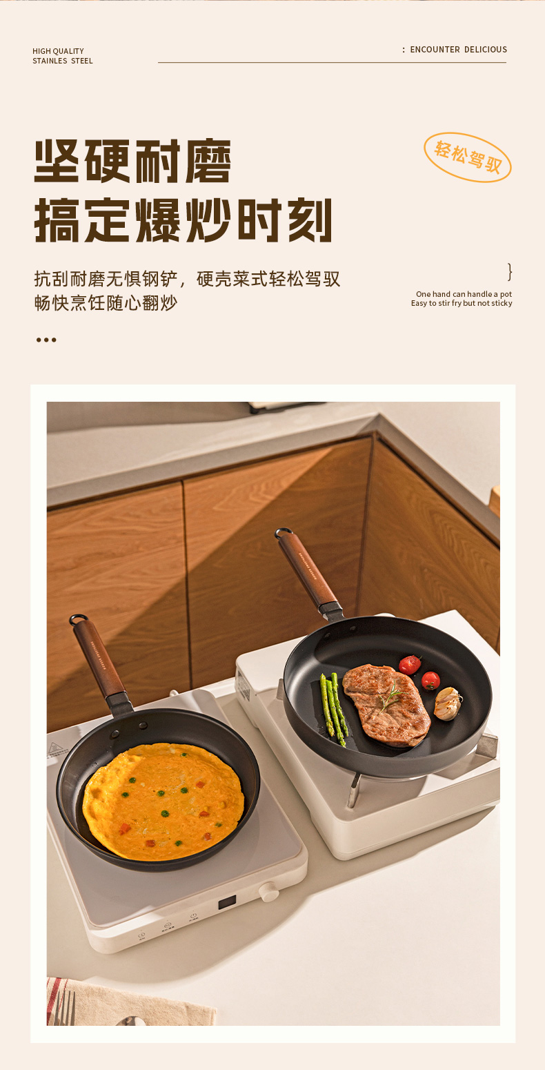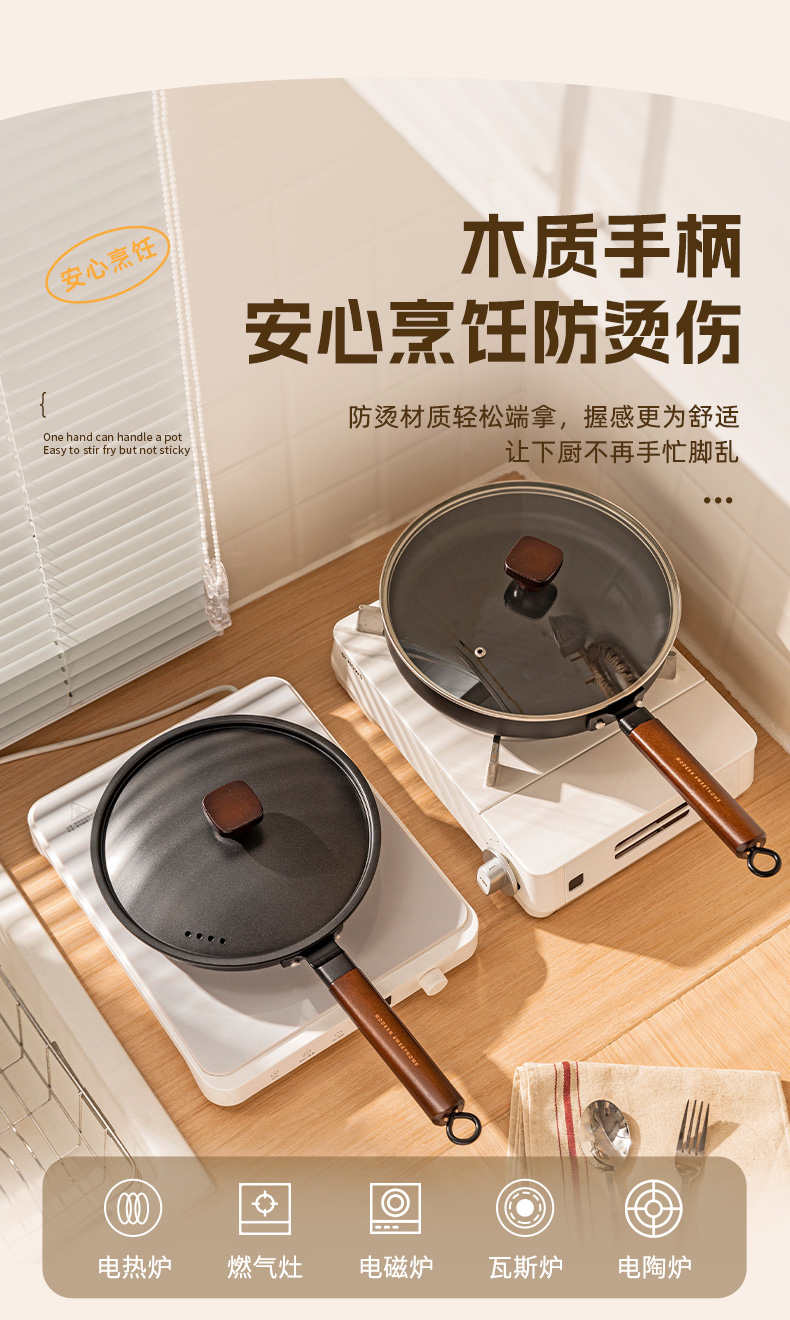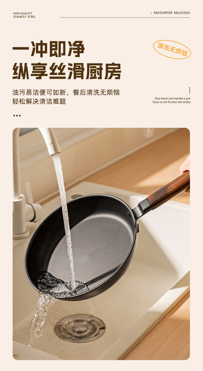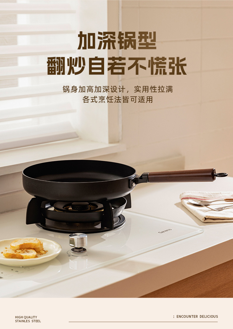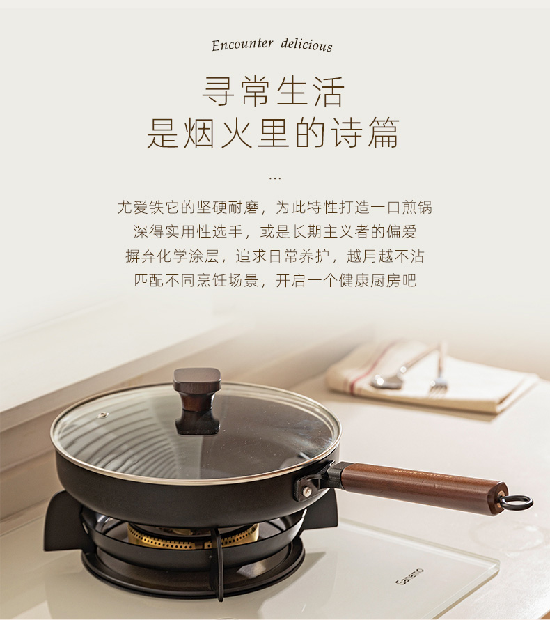 摩登主妇平底锅家用无涂层铁煎锅铁锅炒菜锅煎饼煎蛋神器牛排煎锅