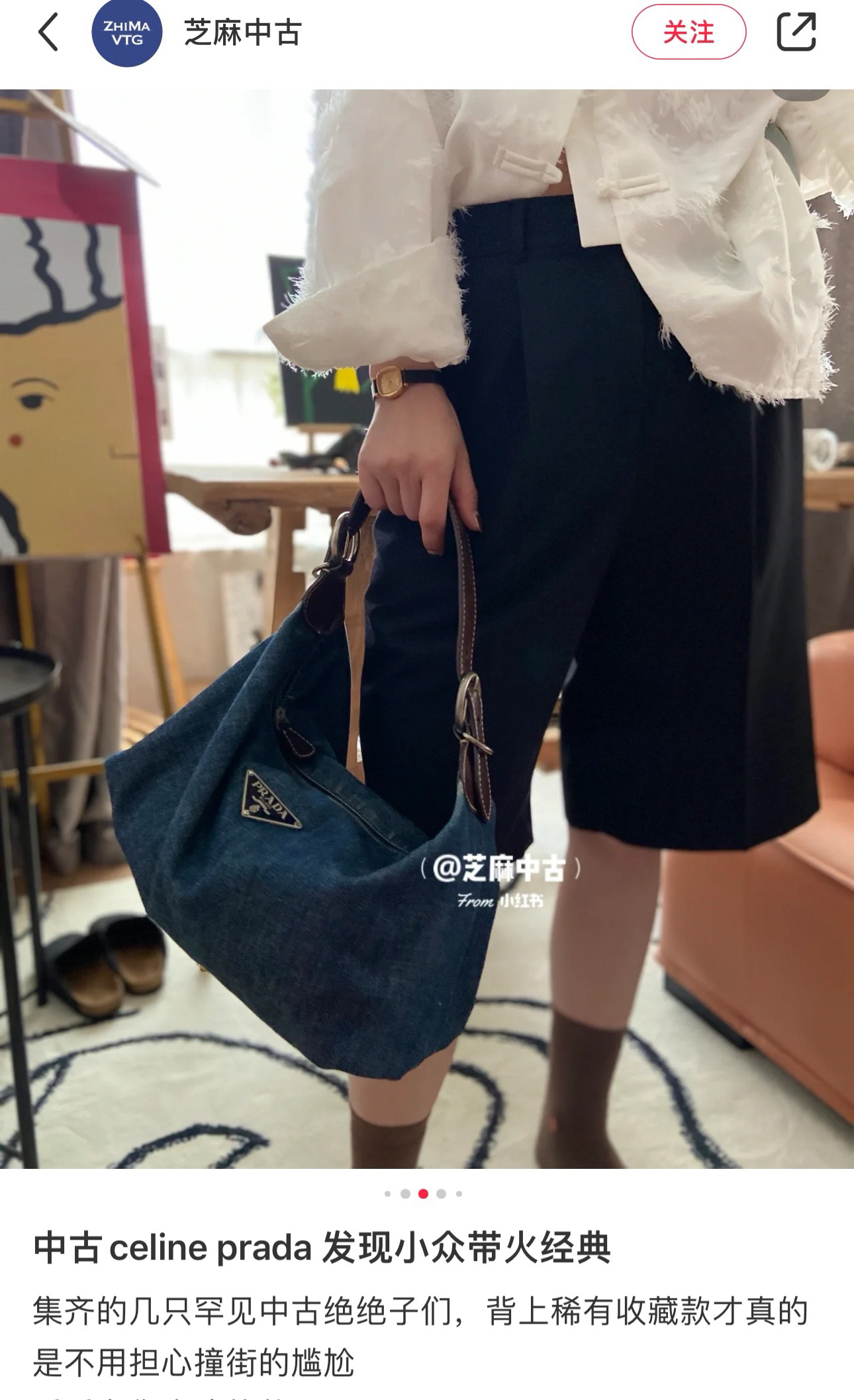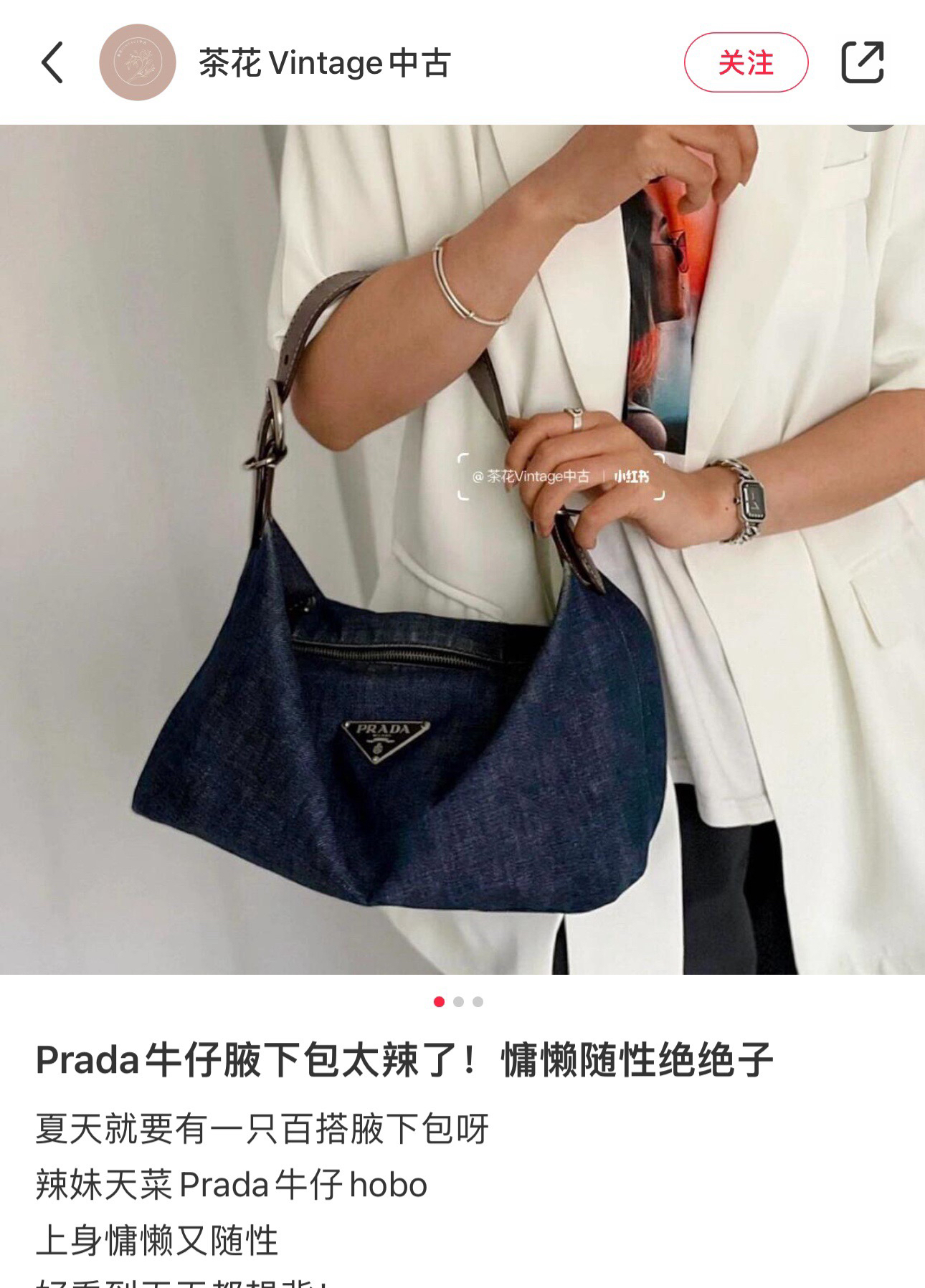 内里不塞东西自带挺括感,包底硬挺还不易变形,质感非常好,牛仔材质非常耐磨,并且整个材质很轻便。背在身上毫无压力!prad*牛仔中古Hobo bag!