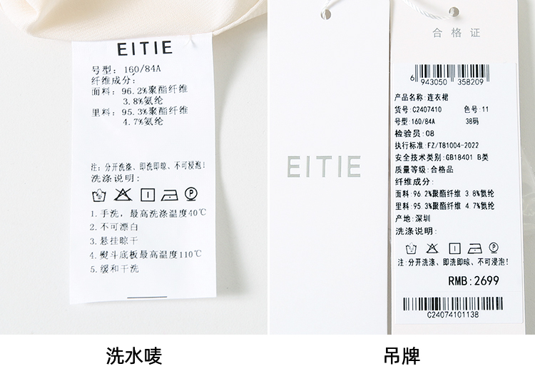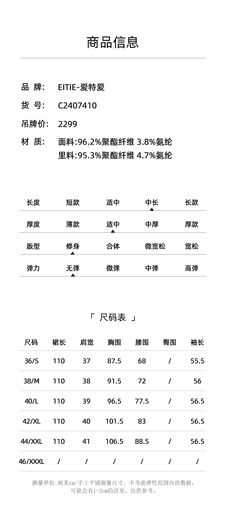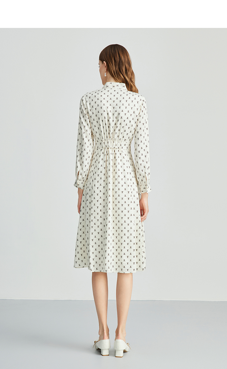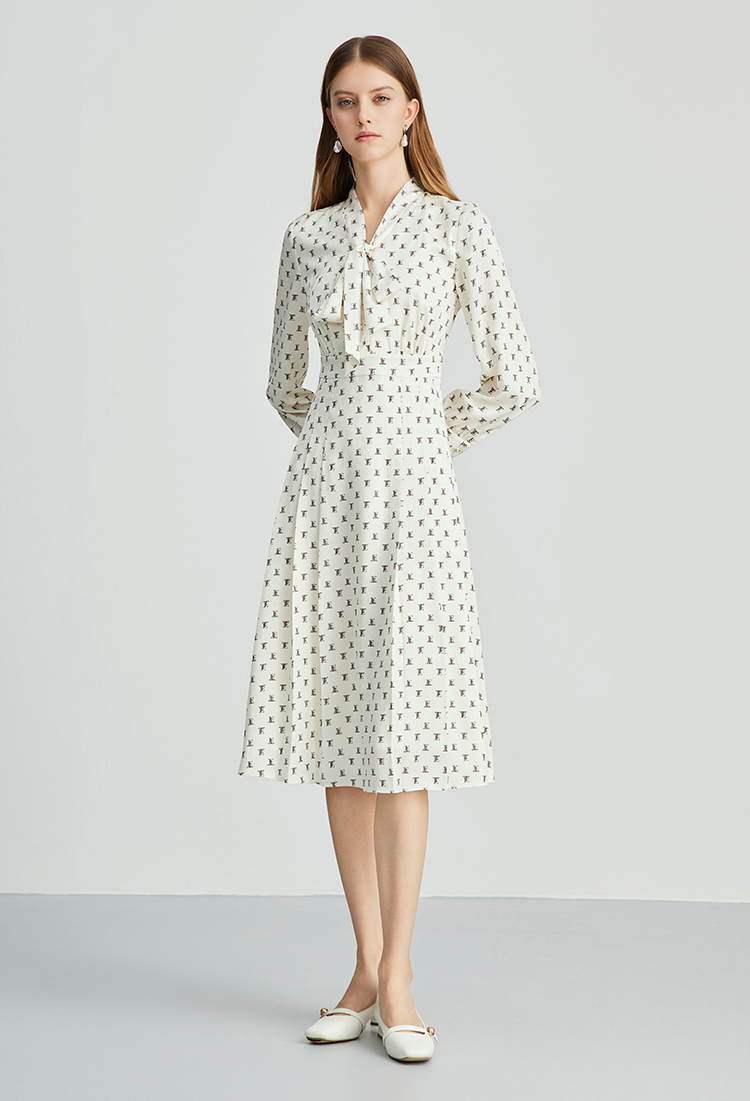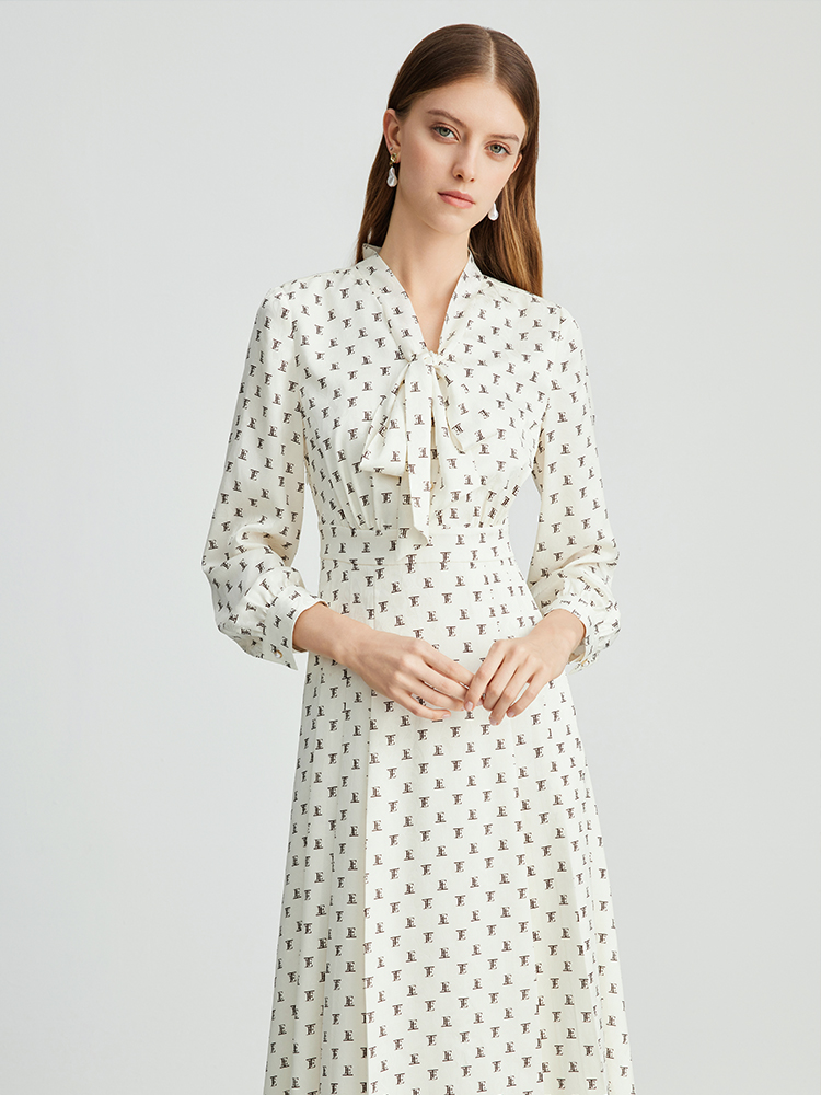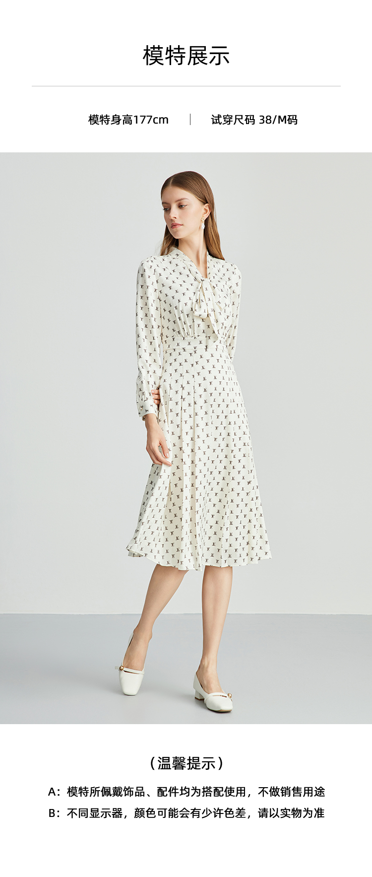 EITIE爱特爱气质复古通勤飘带V领字母印花显瘦连衣裙秋新款C2407410