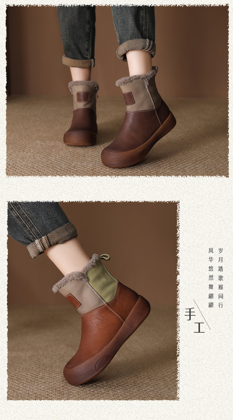 FR 85802头层牛皮雪地靴保暖防滑不累脚复古短靴 商品图2