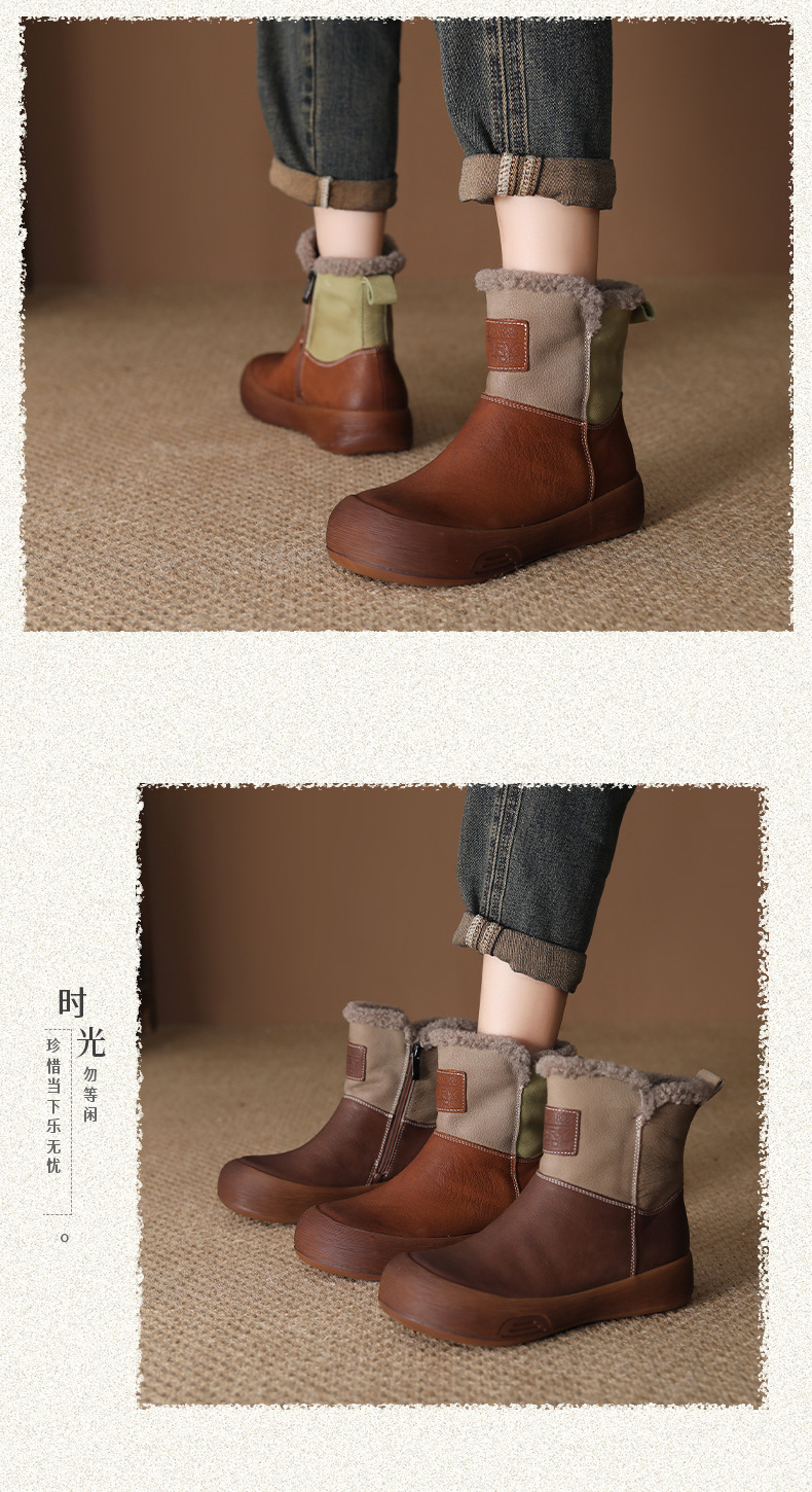 FR 85802头层牛皮雪地靴保暖防滑不累脚复古短靴 商品图3