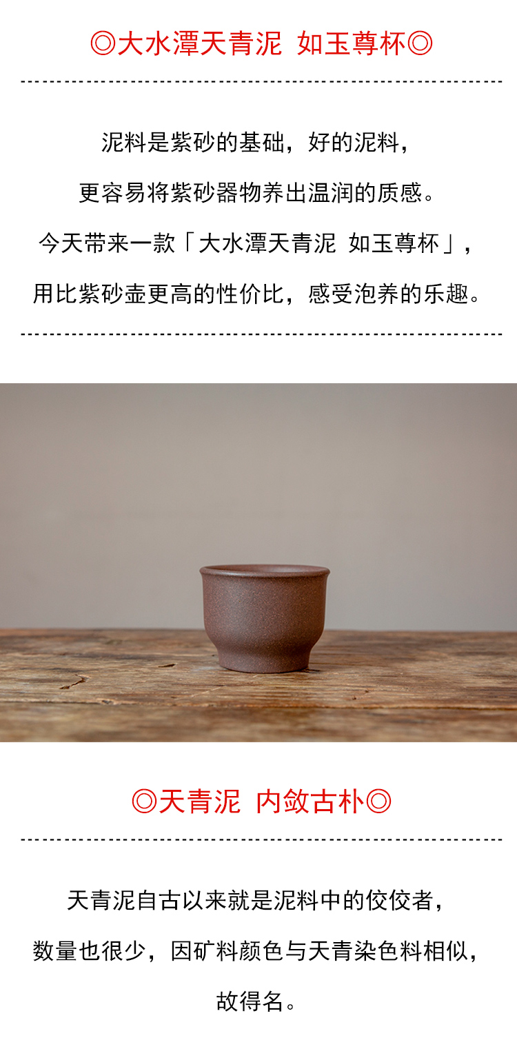 茶香记 润砂堂大水潭天青泥如玉尊杯120ml紫砂杯茶杯古朴内敛古朴