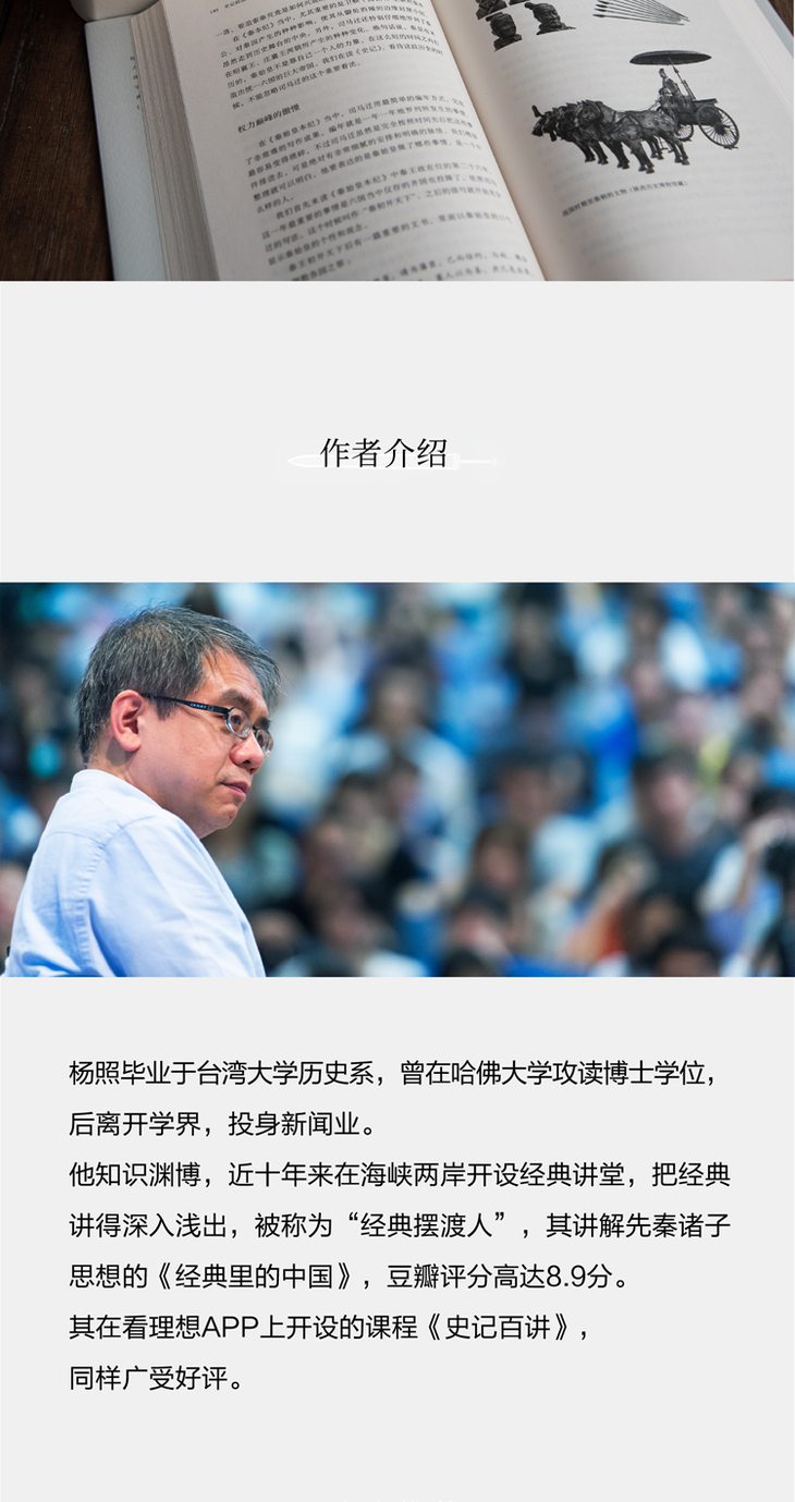 杨照,作家、文学评论家。台湾大学历史系毕业,曾为哈佛大学史学博士候选人,师从杜维明教授,研究专长为中国古代思想史、社会人类学。最近十几年来,一直致力于各种东西方经典著作的解读,并担任“诚品讲堂”、“敏隆讲堂”长期经典课程讲师,“看理想”古代中国经典节目主讲人。