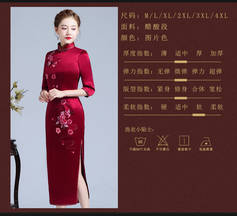 LHS-2050年轻喜婆婆婚宴装新款连衣裙秋刺绣醋酸旗袍婚礼服
